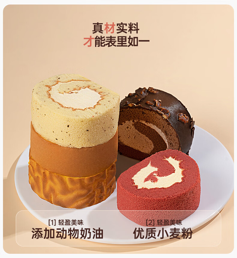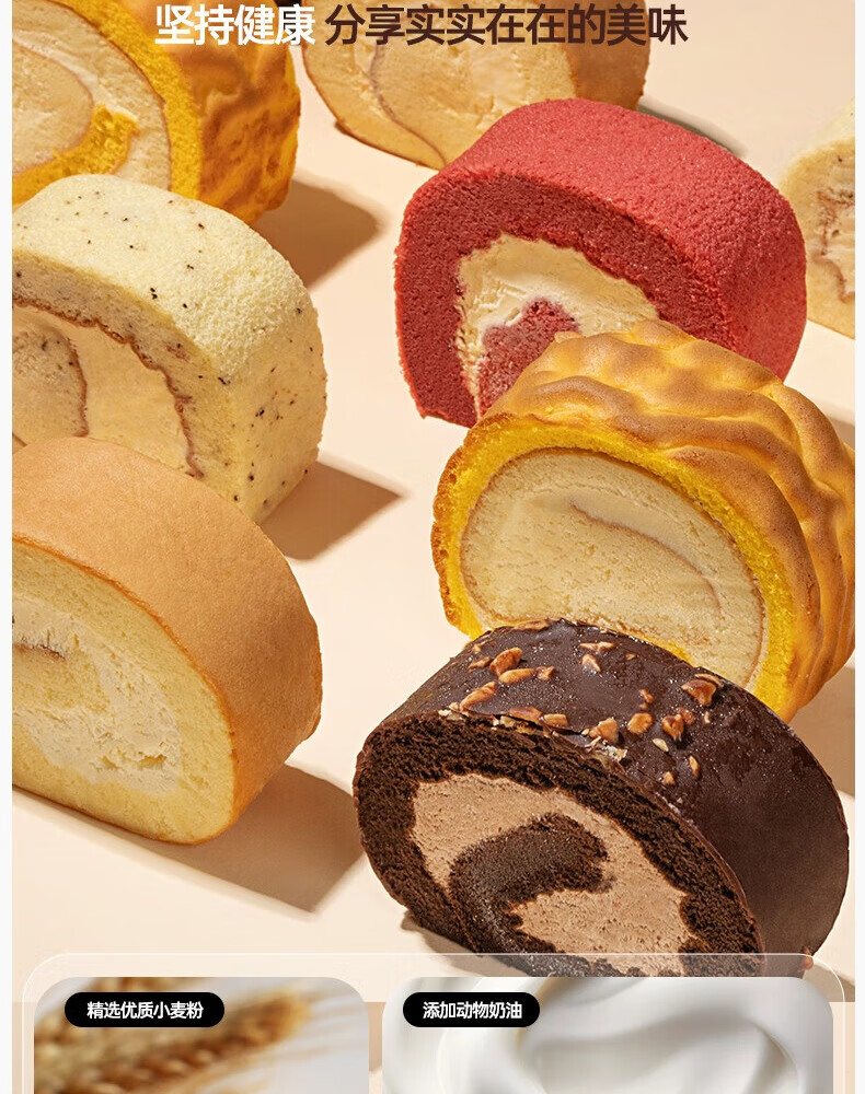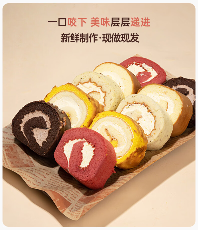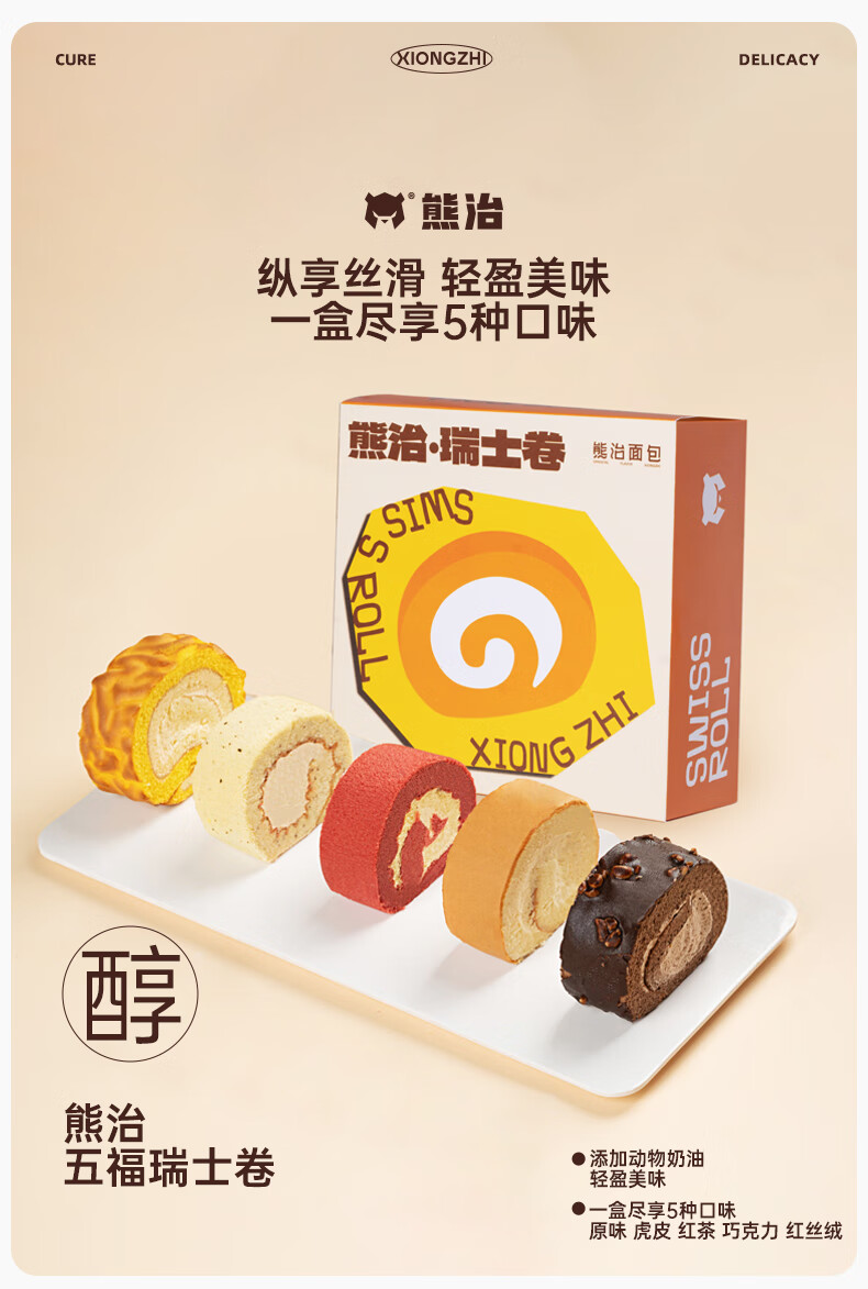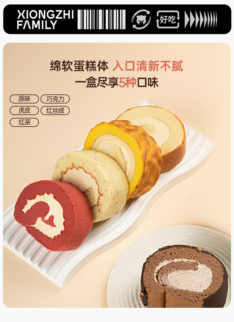 熊治巧克力脆皮梦龙卷五福瑞士卷红丝绒芝士甜品蛋糕 五福瑞士卷(口味五拼)