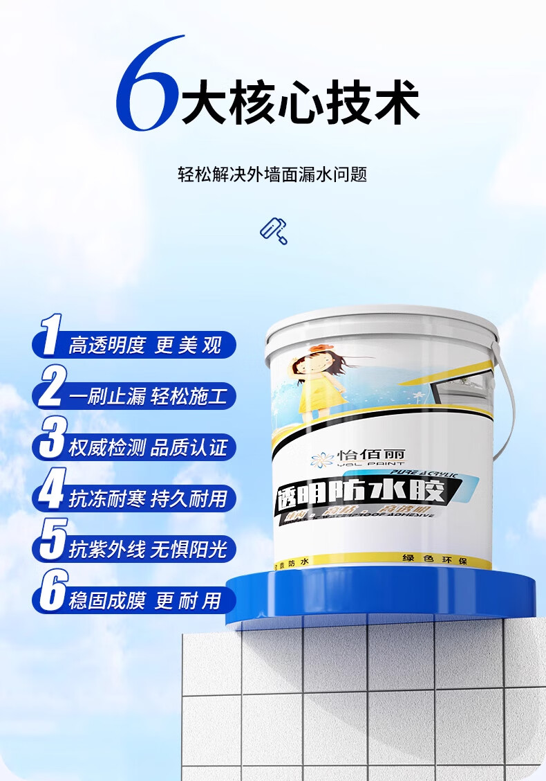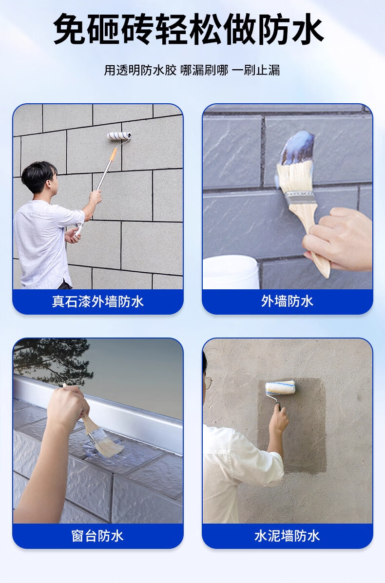 飒望德国透明防水胶屋顶外墙窗台渗水补漏胶耐晒抗冻卫生间免砸砖裂缝 【一刷止漏】1kg透明涂料 【屋顶/外墙裂缝/窗台/通用型】