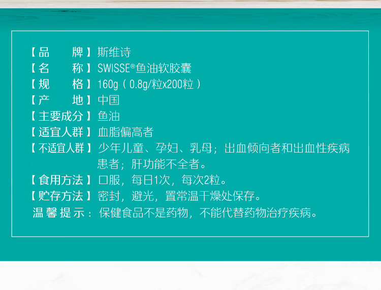 Swisse斯维诗 鱼油软胶囊 深海高浓度小粒鱼油 辅助降血脂 蓝帽认证 「联盟专享」0.8g/粒* 200粒*1瓶