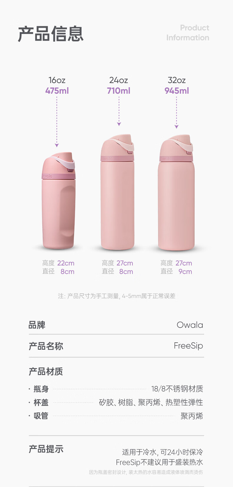 Owala随行杯FreeSip系列大容量保温杯水杯男女款高颜值不锈钢吸管杯 710ML | 暖阳黄(Sunny Daze)