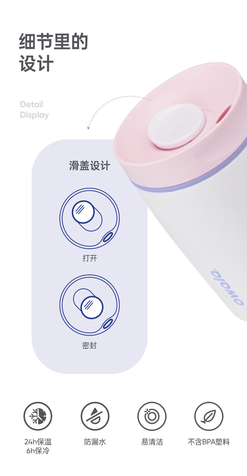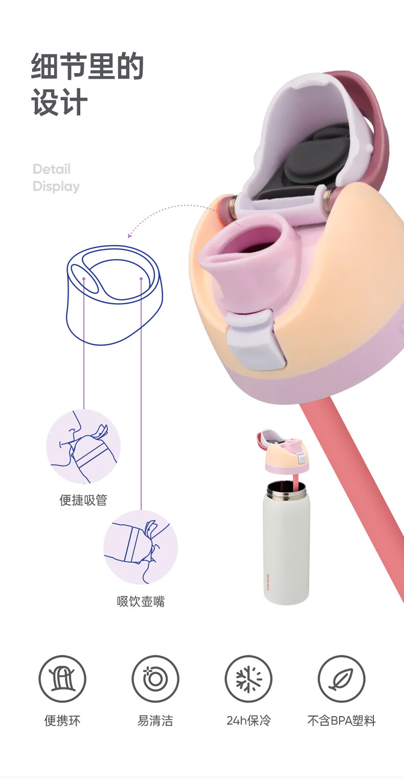 物生物儿童保温杯女士高颜值吸管水杯316L不锈钢大容量学生上学圣诞礼物 甜巧麻薯【一盖双饮】380ml
