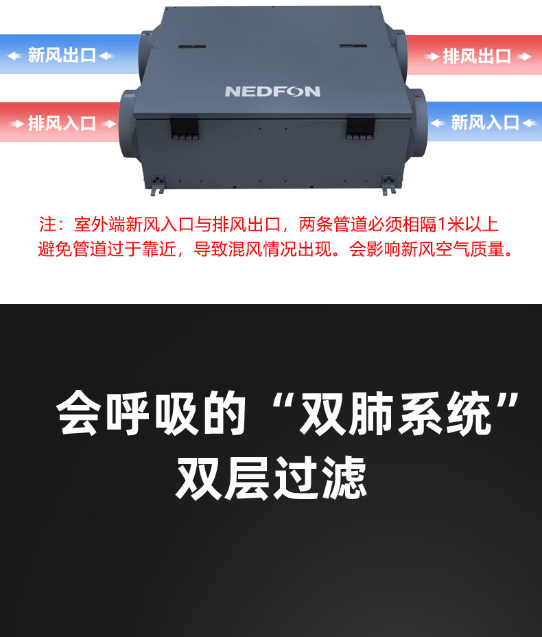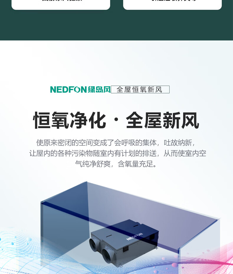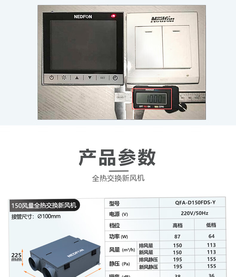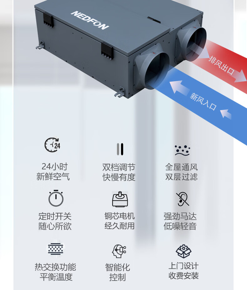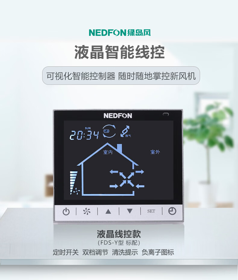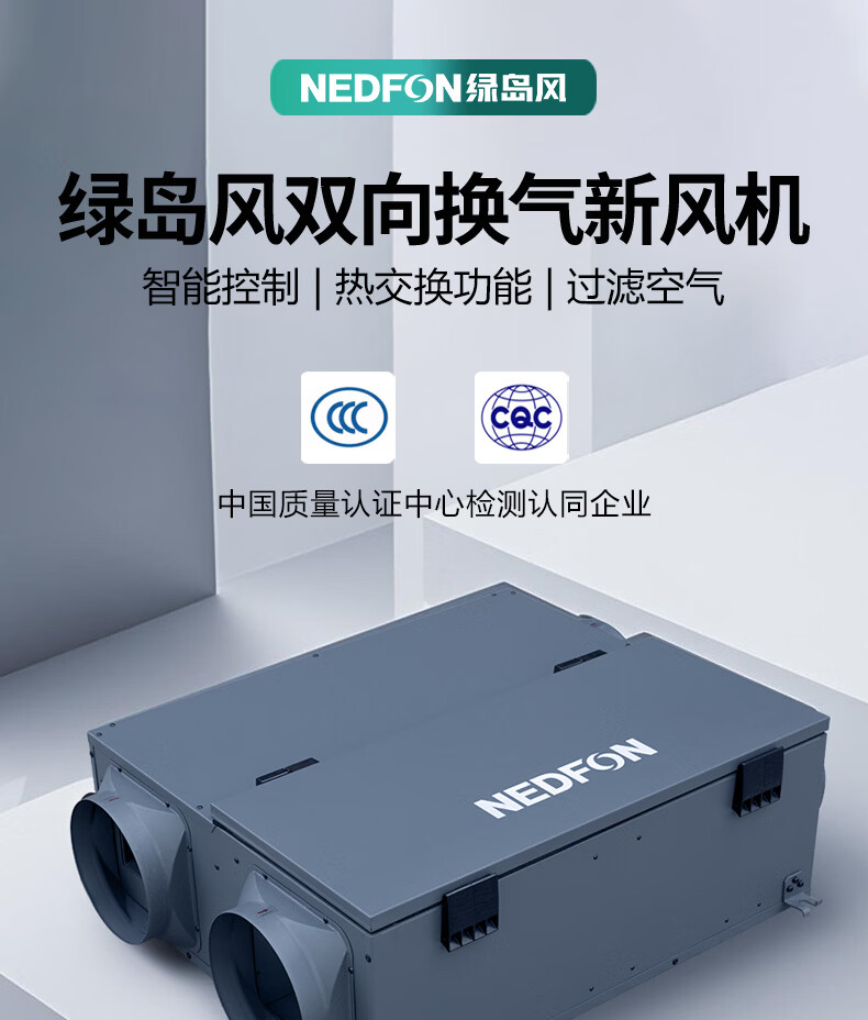 绿岛风(Nedfon)吊顶新风家用系统过滤双向通风换气新风机地下室商用带热交换新风机【液晶线控款】 吊顶式 150m³/h 40-59㎡