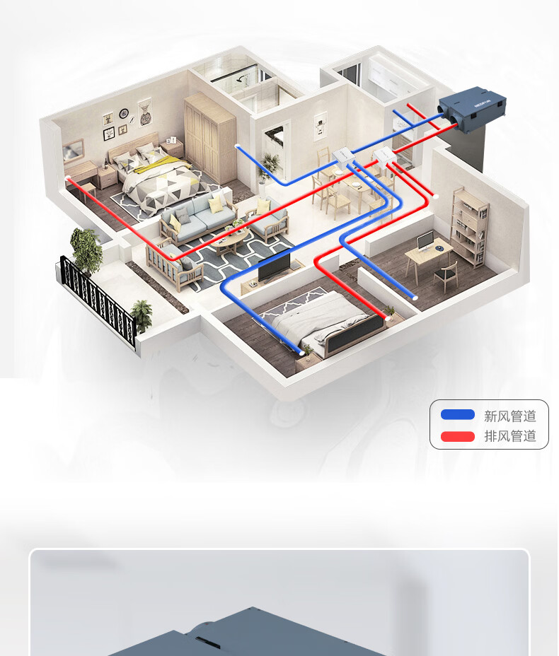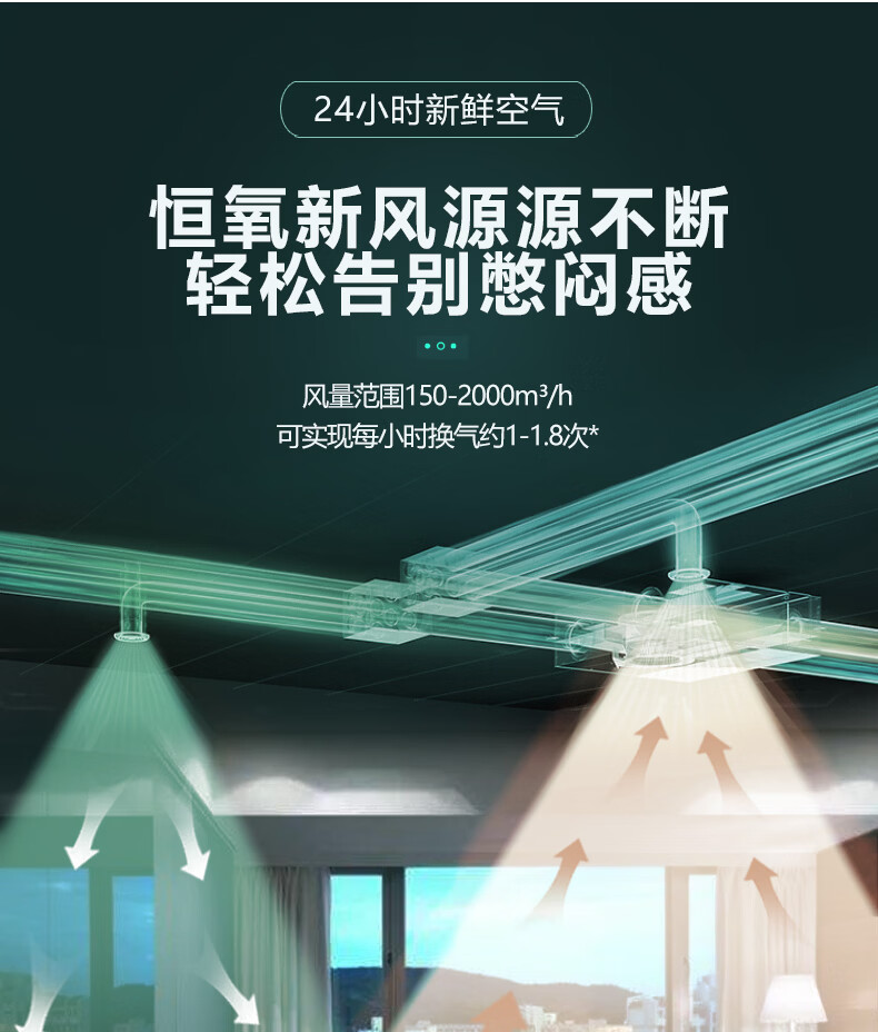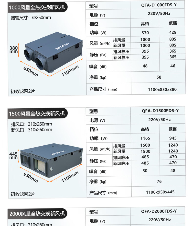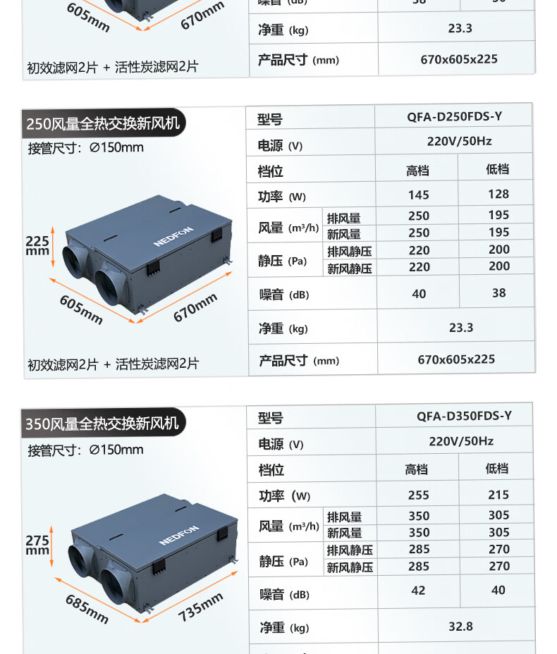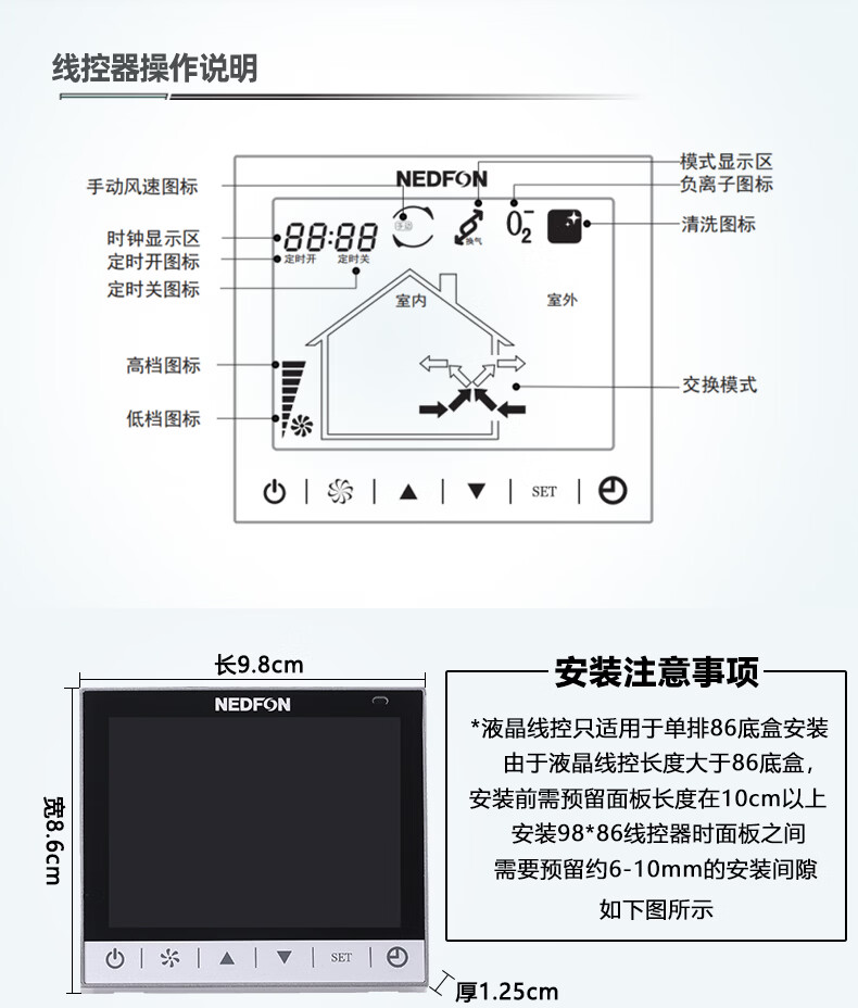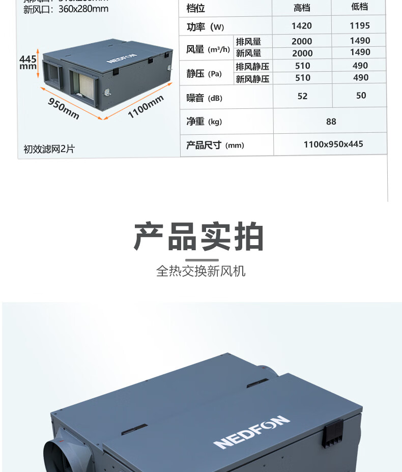 绿岛风(Nedfon)吊顶新风家用系统过滤双向通风换气新风机地下室商用带热交换新风机【液晶线控款】 吊顶式 150m³/h 40-59㎡