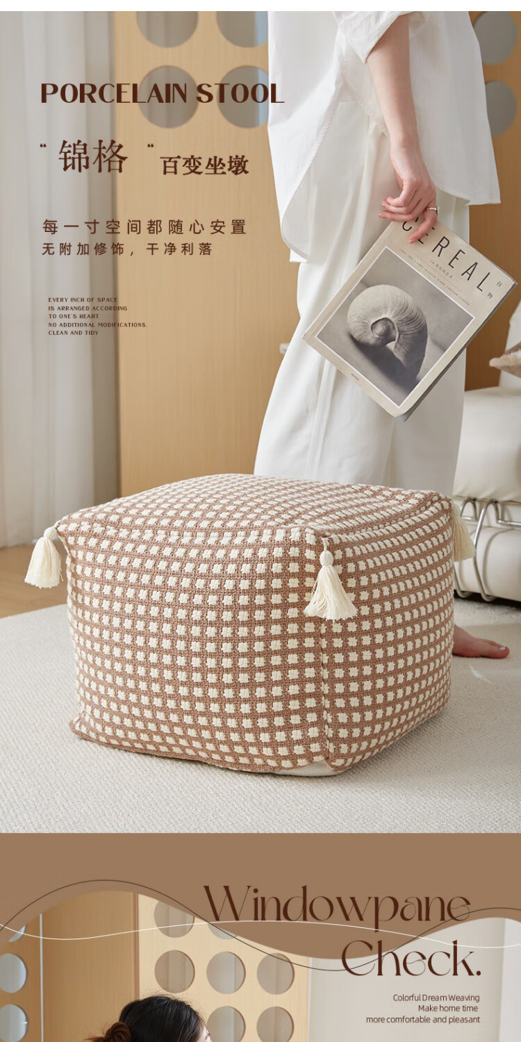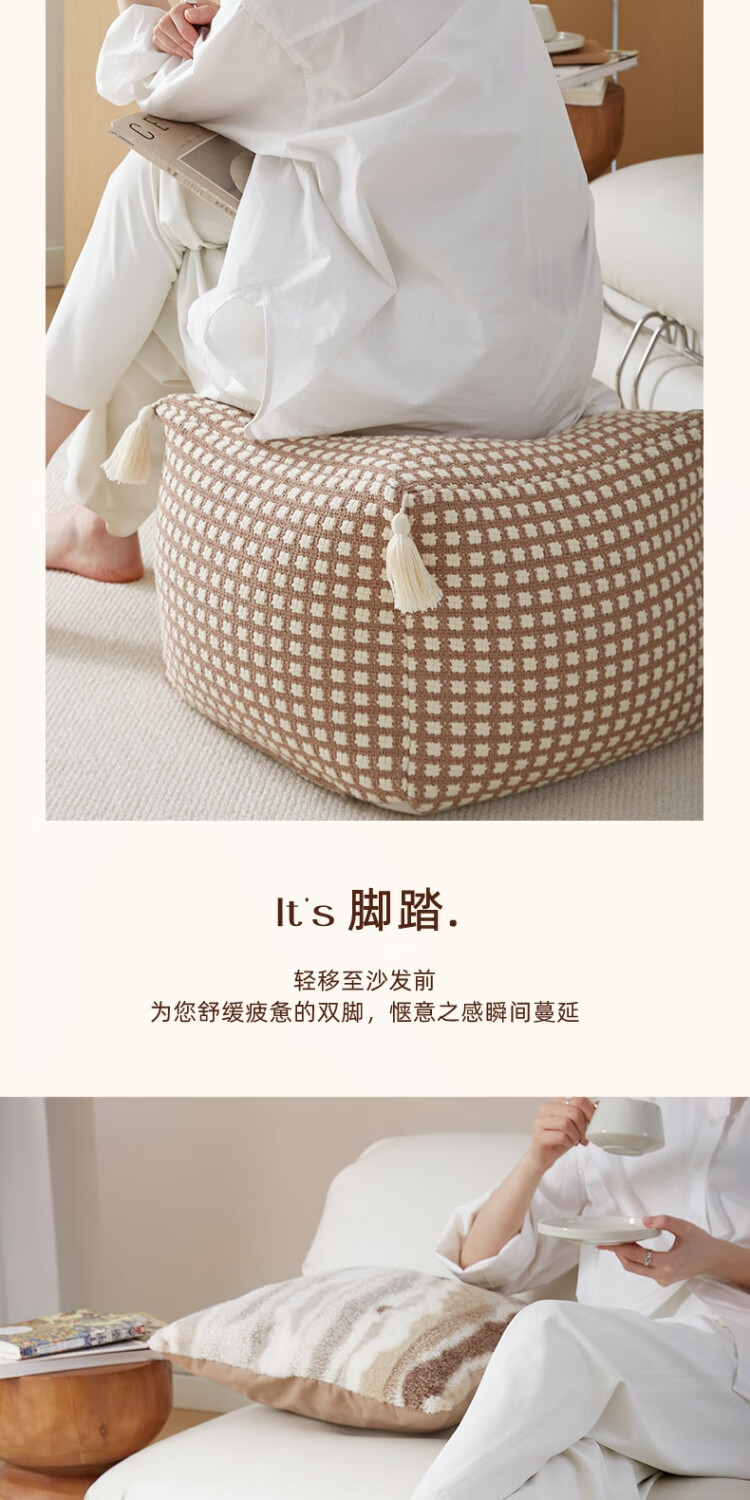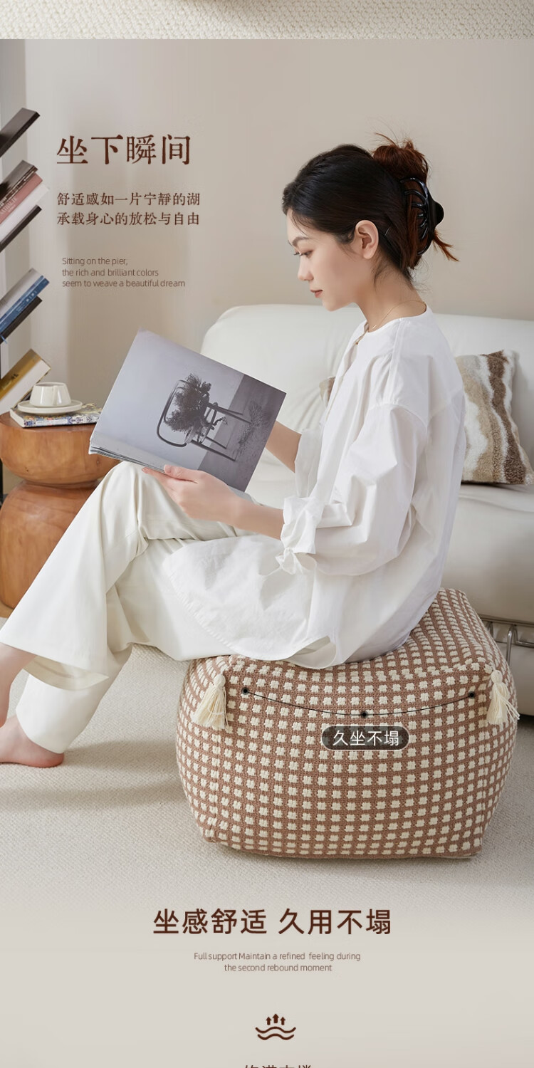 京华中古波西米亚坐墩多用轻奢榻榻米客厅地上坐垫可拆洗懒人沙发蒲团 布拉诺 40*40*30