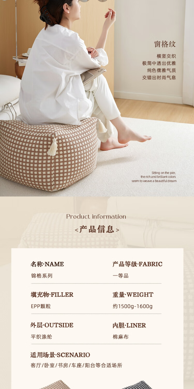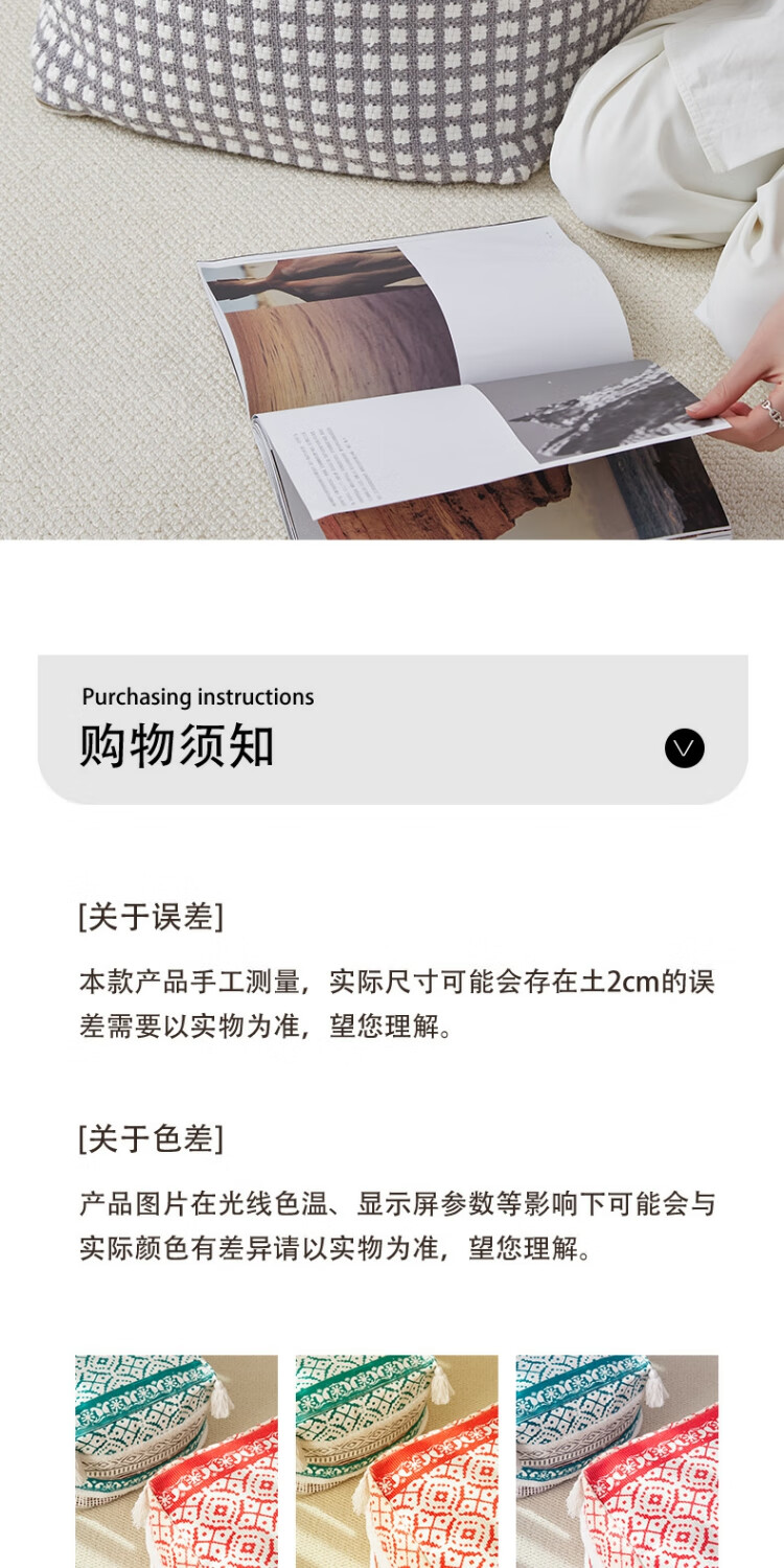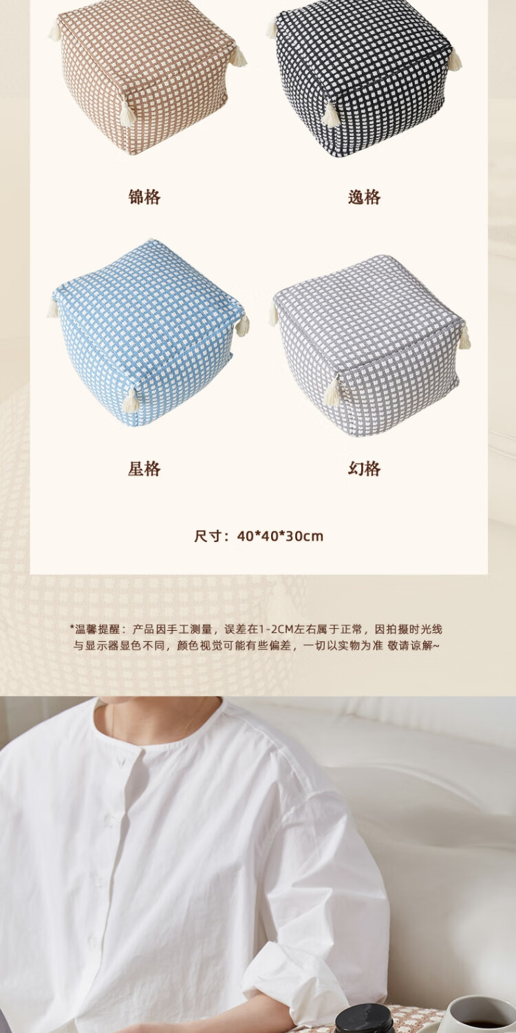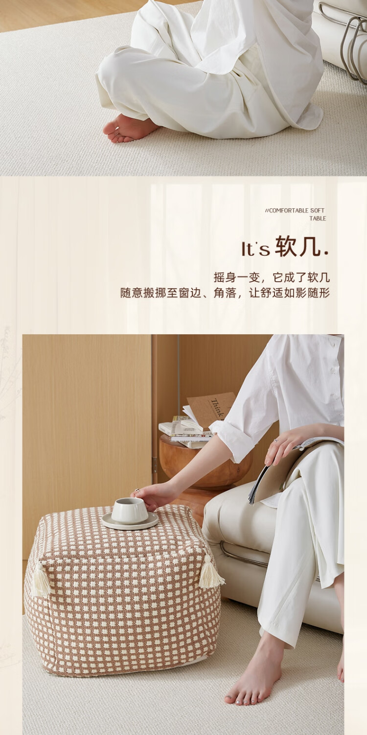 京华中古波西米亚坐墩多用轻奢榻榻米客厅地上坐垫可拆洗懒人沙发蒲团 布拉诺 40*40*30
