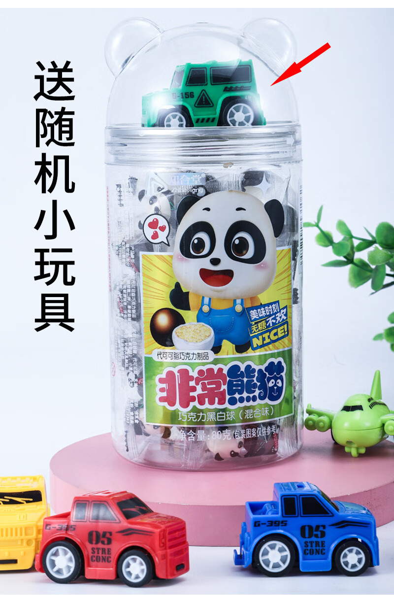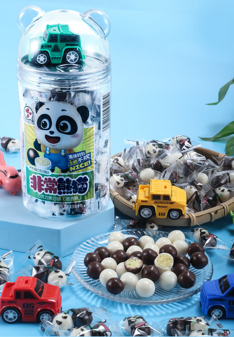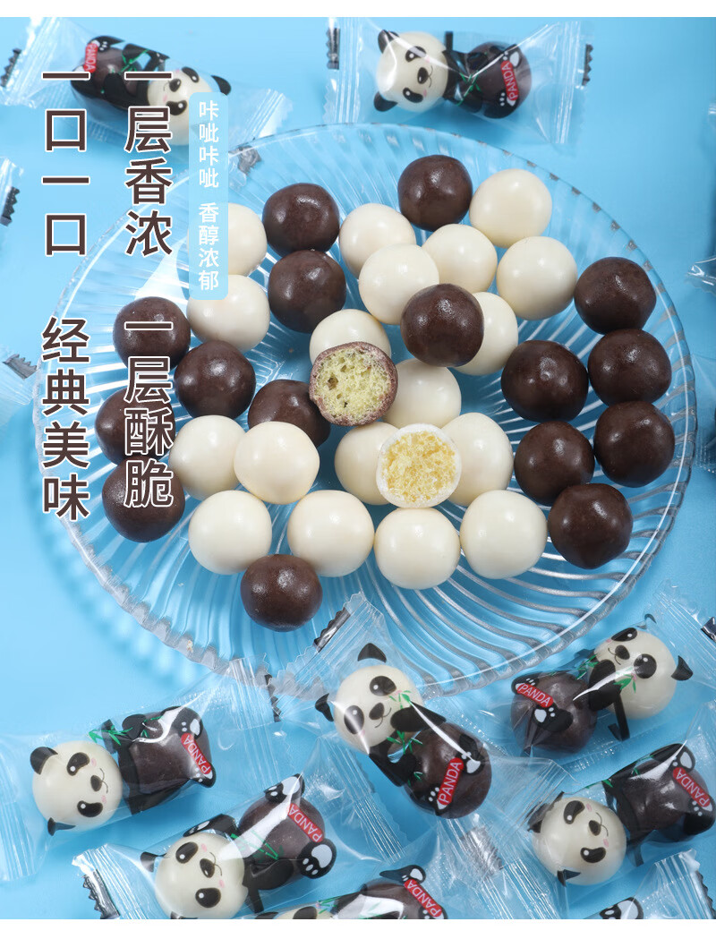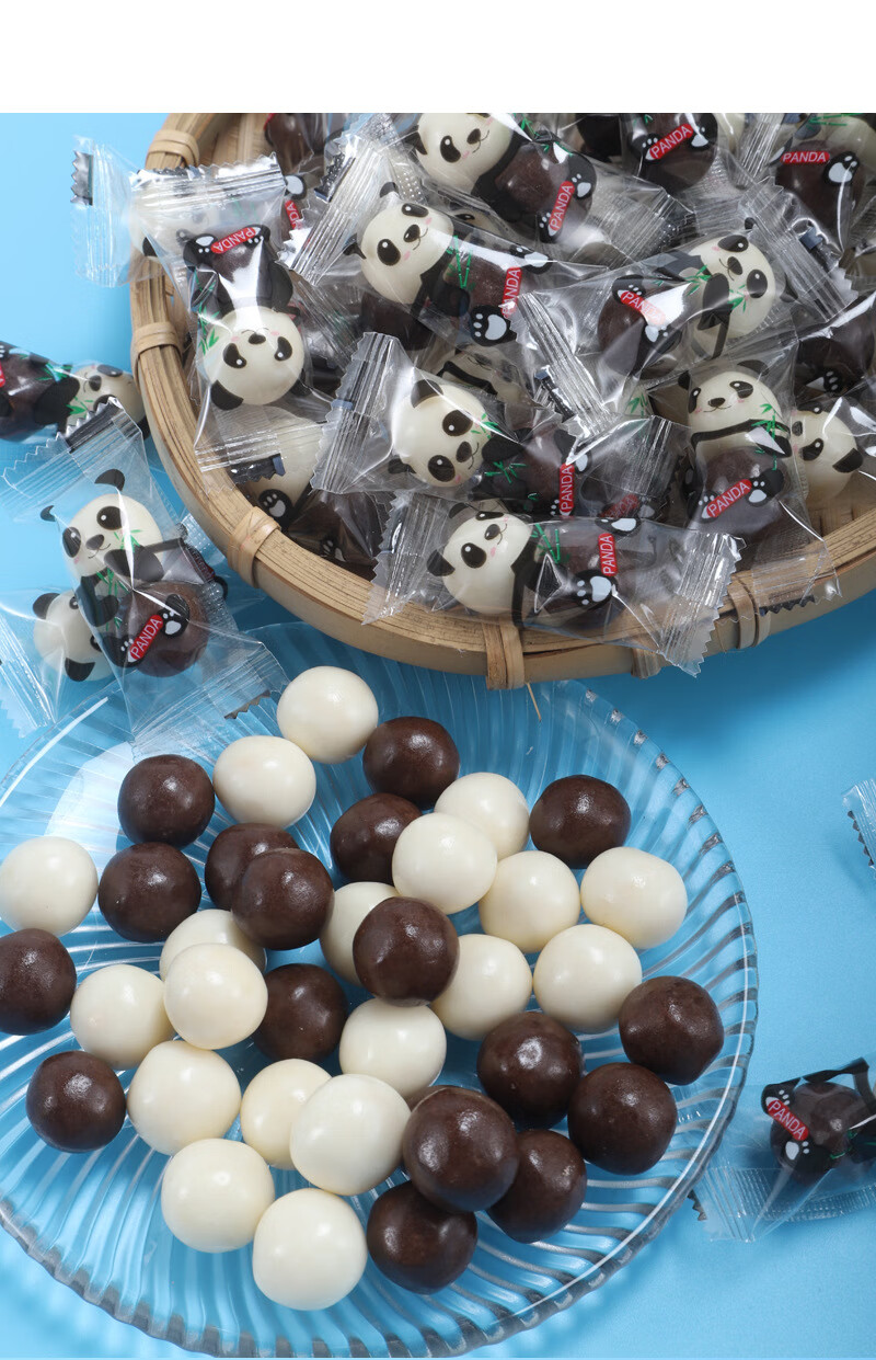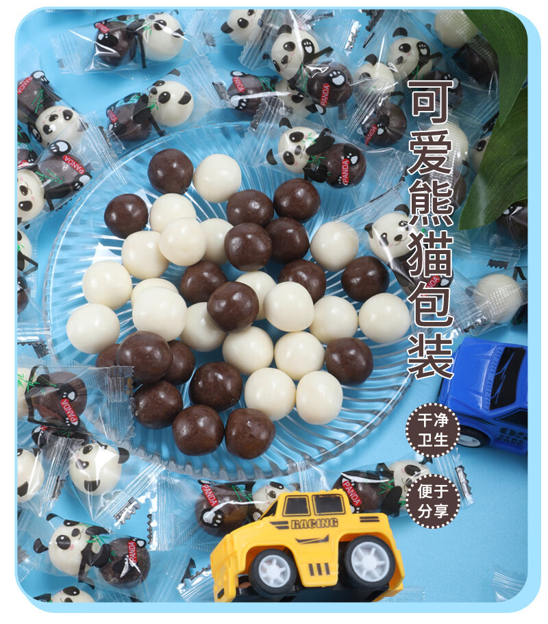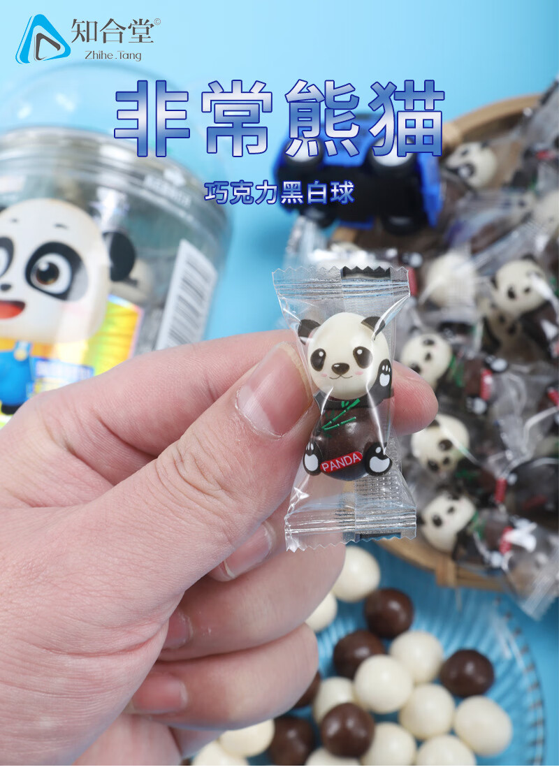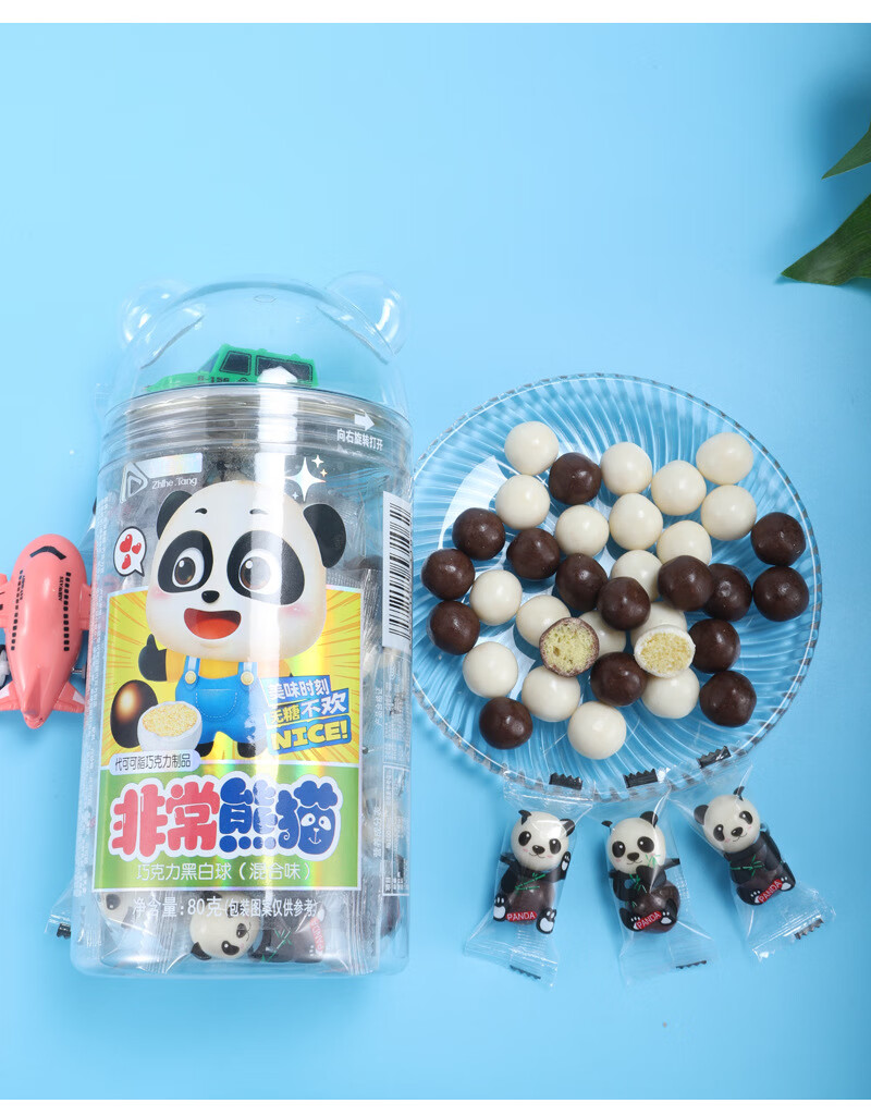 知合堂新款糖玩儿童零食玩具糖果麦丽素夹心巧克力网红小食品 熊猫巧克力球80g 巧克力味
