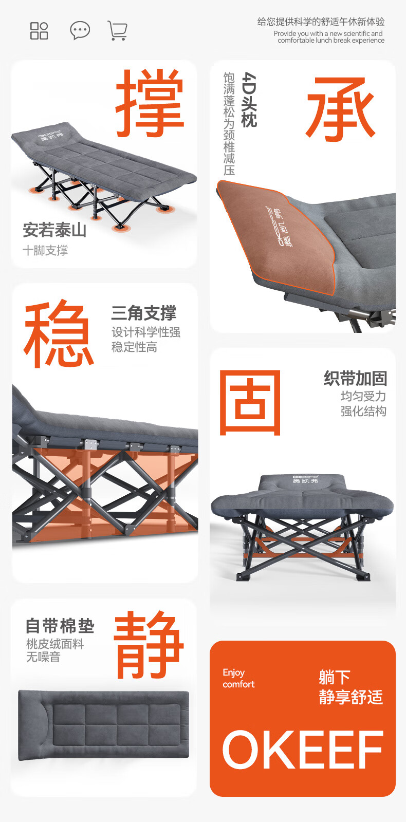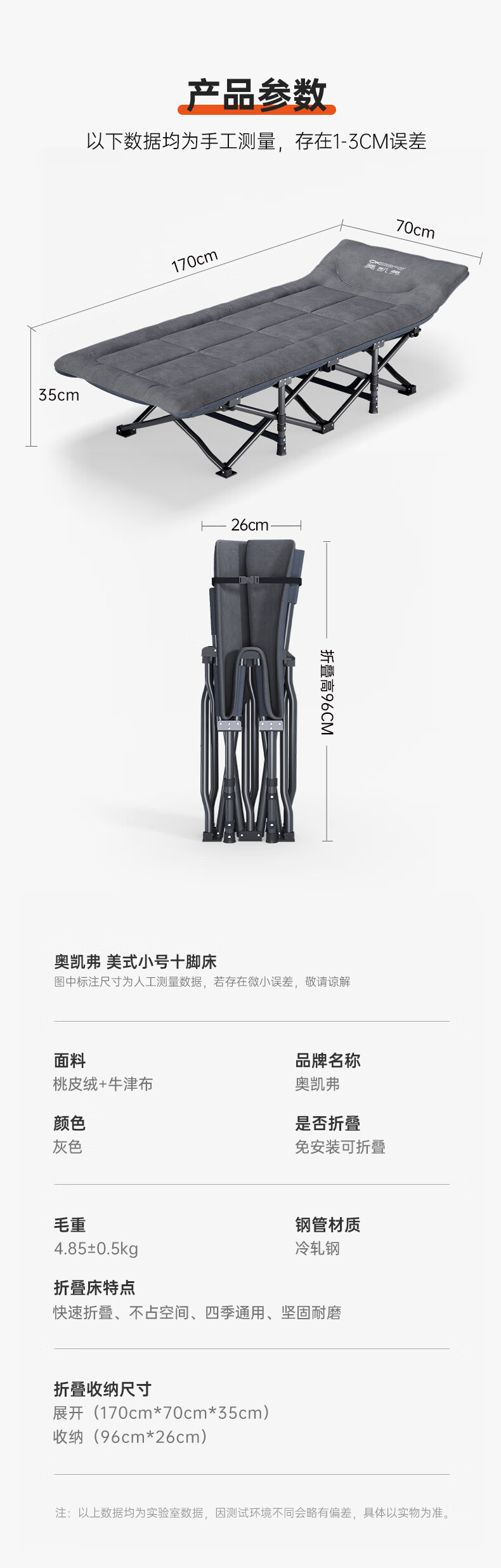 奥凯弗(OKeefe)折叠床午休单人床多功能行军床躺椅医院陪护床办公室午睡床十脚床