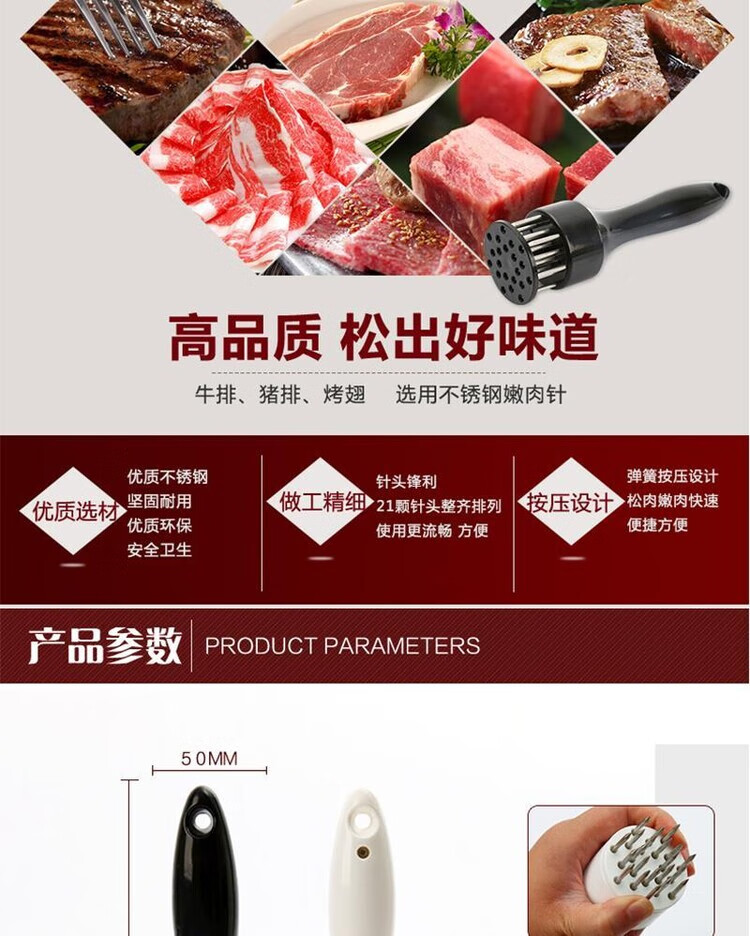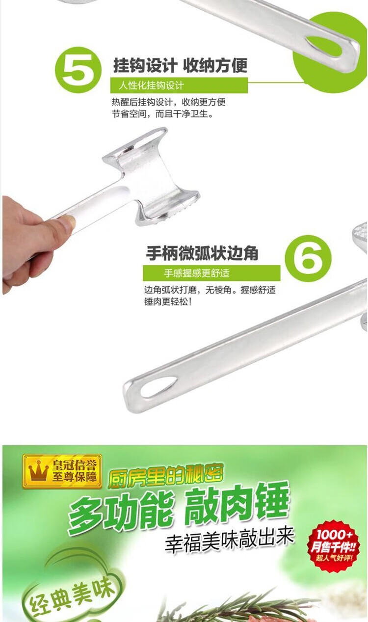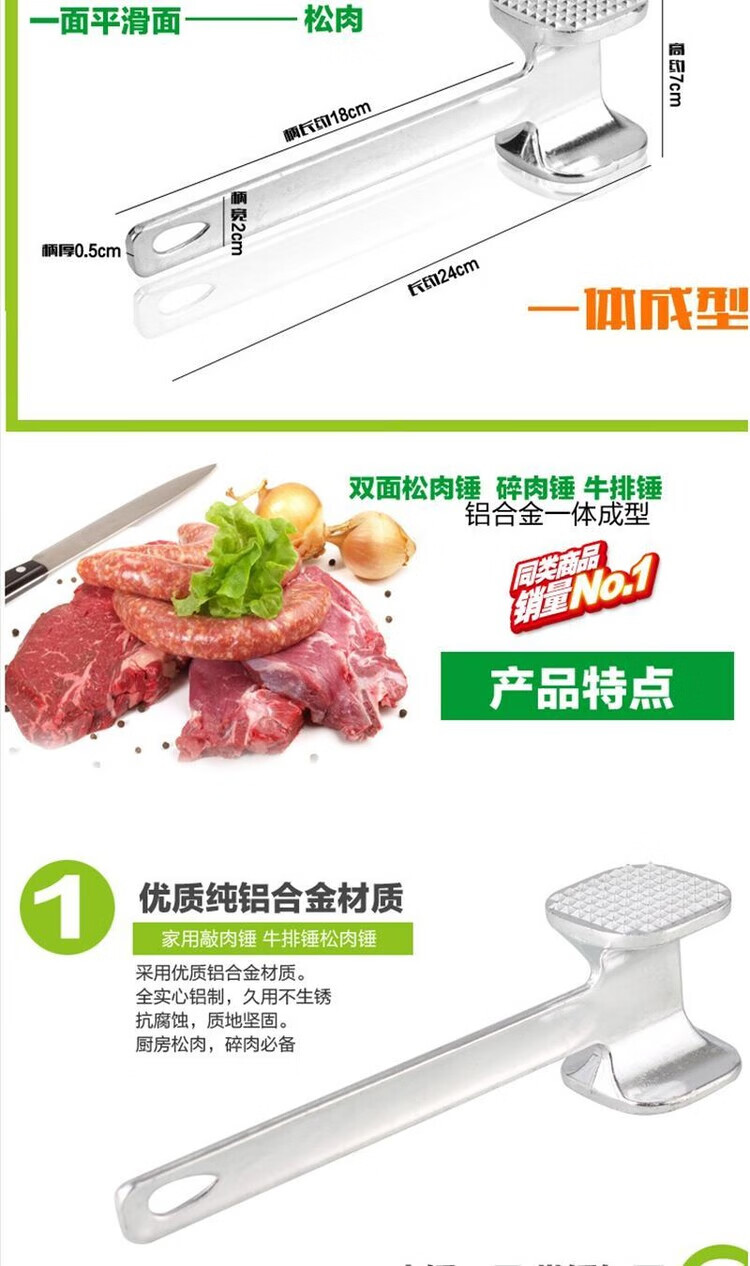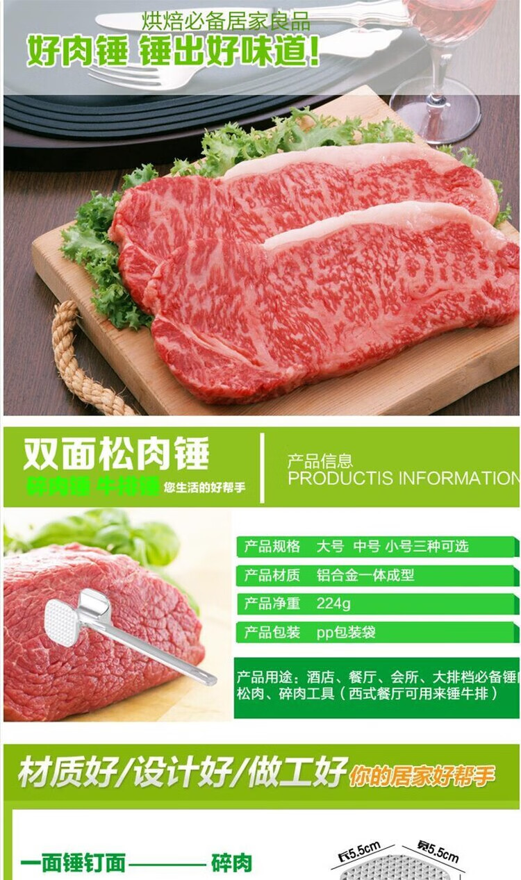 LZJV锤肉器敲肉锤牛排锤肉锤松肉锤断筋器家用松肉针嫩肉双面砸肉锤子 小号敲肉锤