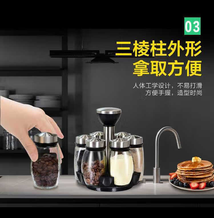 LZJV调料盒套装调味罐厨房家用创意旋转调味瓶佐料盒玻璃调料瓶罐 7套6瓶+1底座送标贴