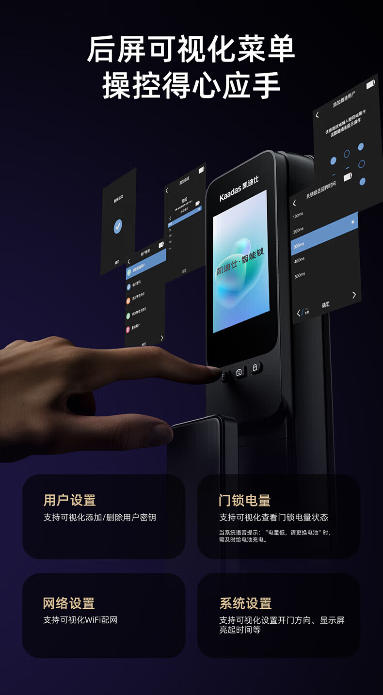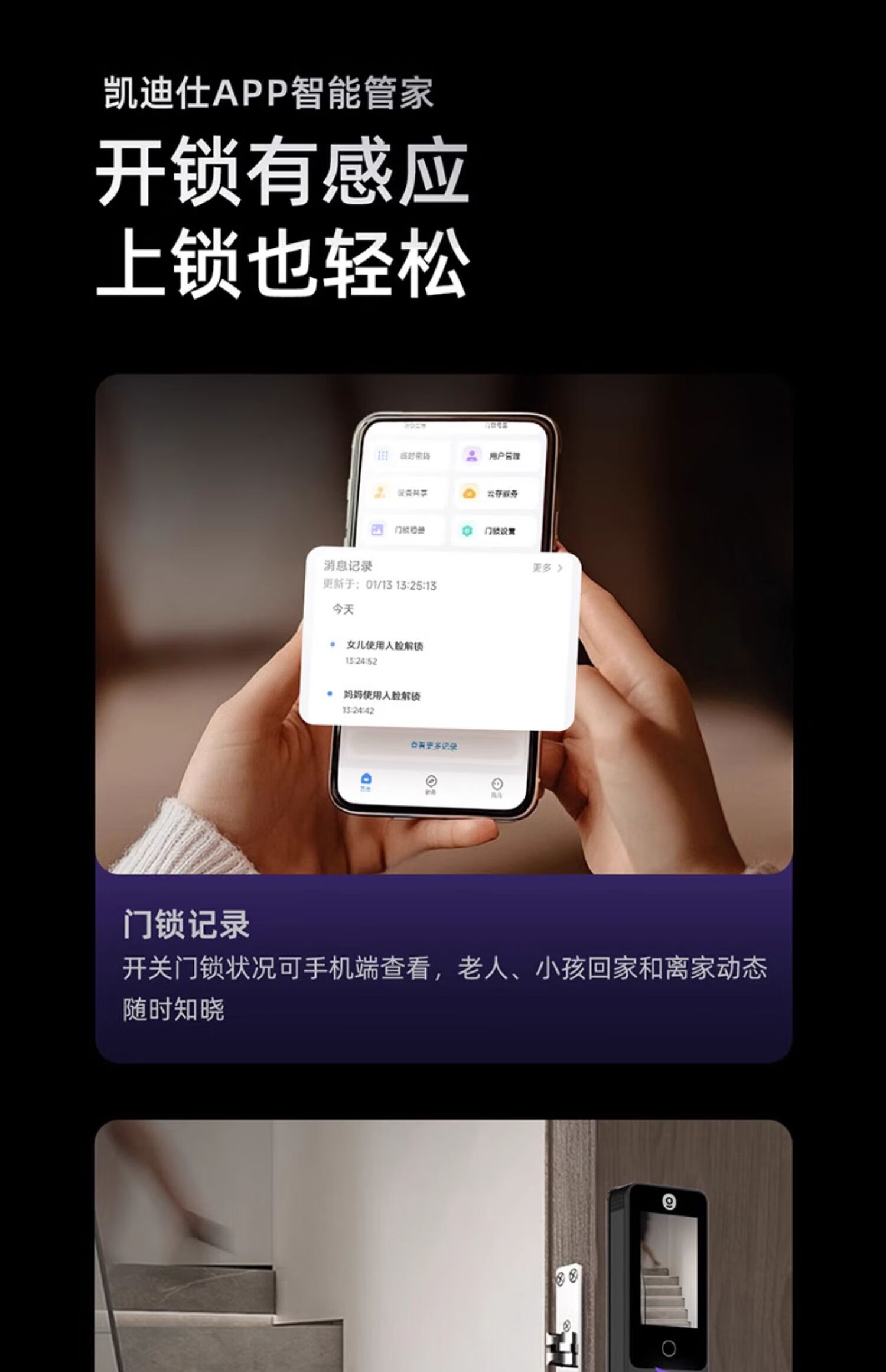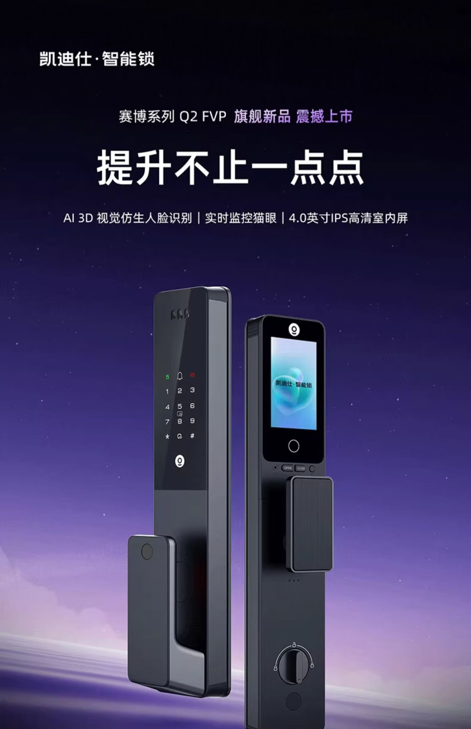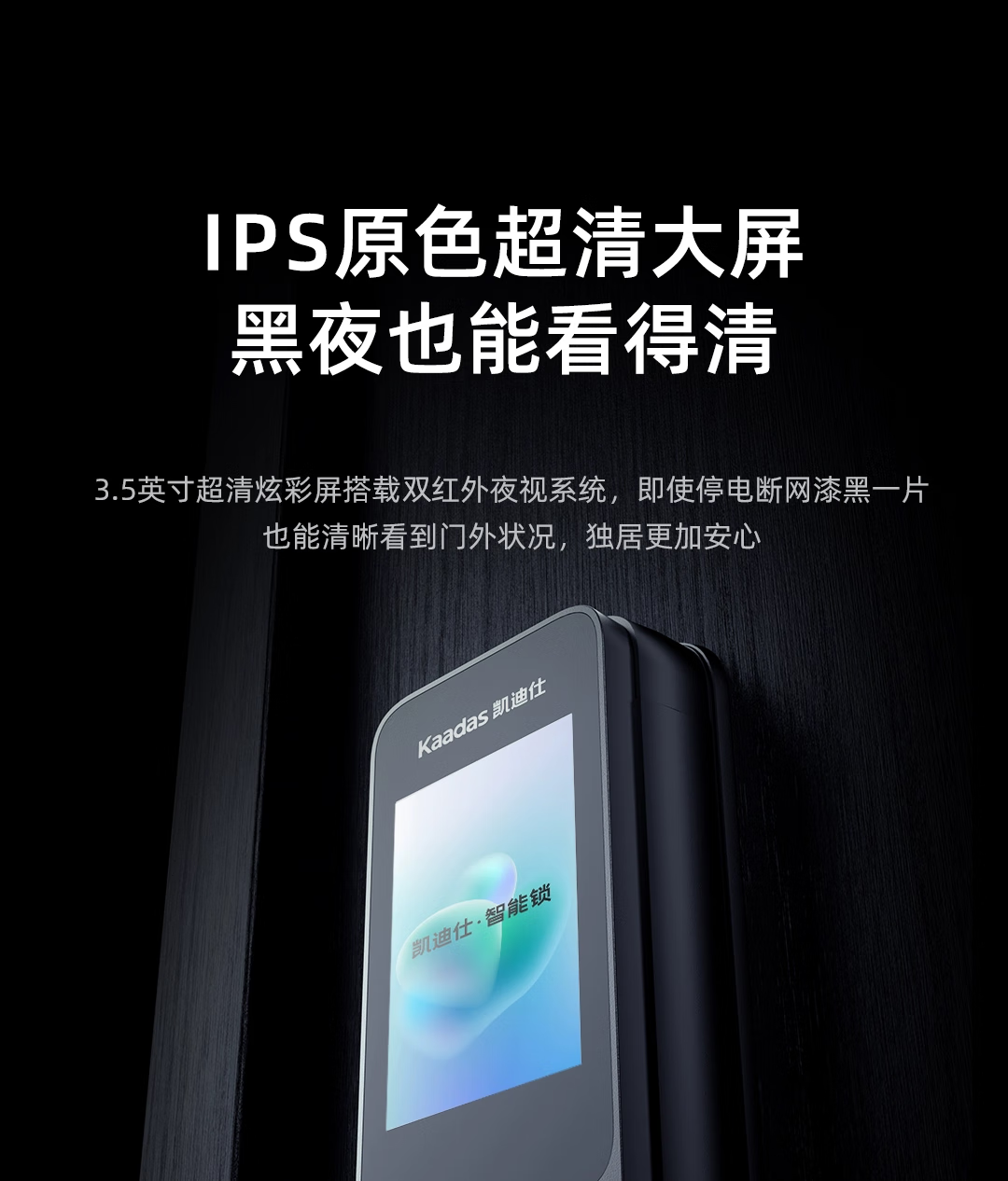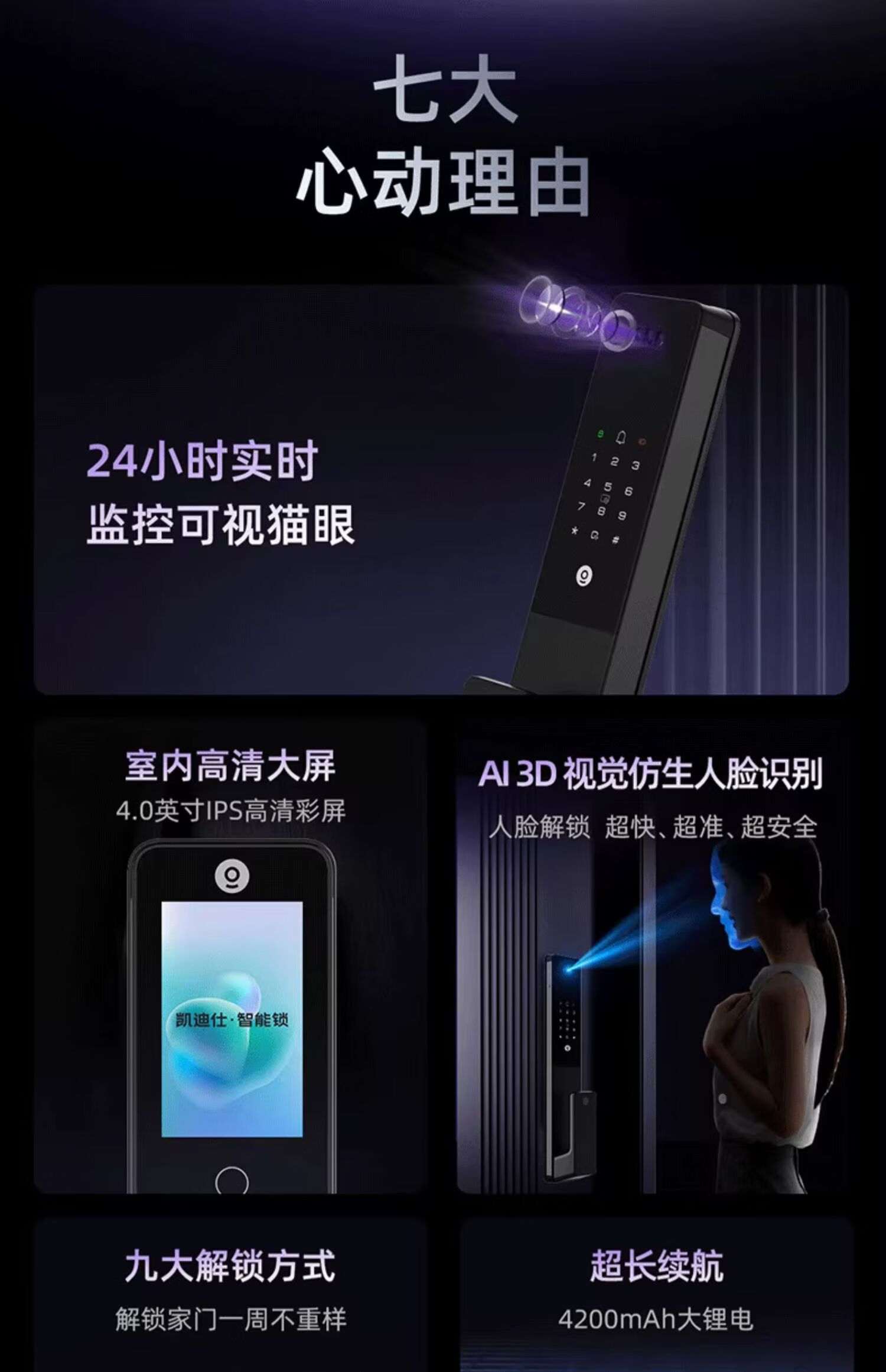 凯迪仕(KAADAS)Q3FVP人脸识别智能锁指纹锁全自动防盗门电子猫眼远程解锁密码锁 Q3FVP旗舰款【人脸+哨兵猫眼+大屏】