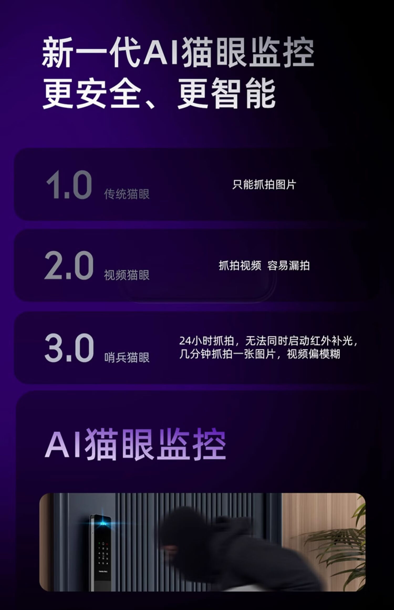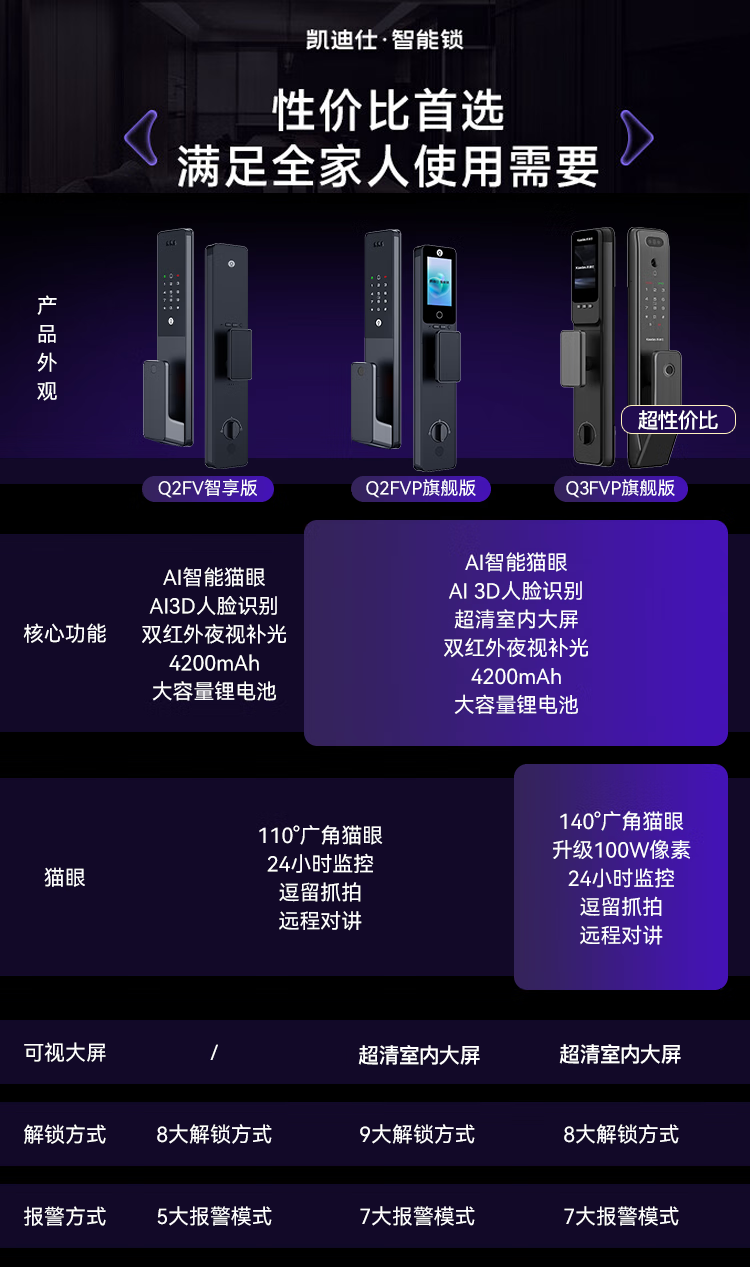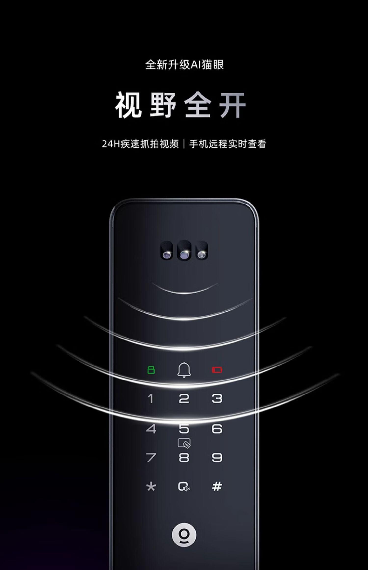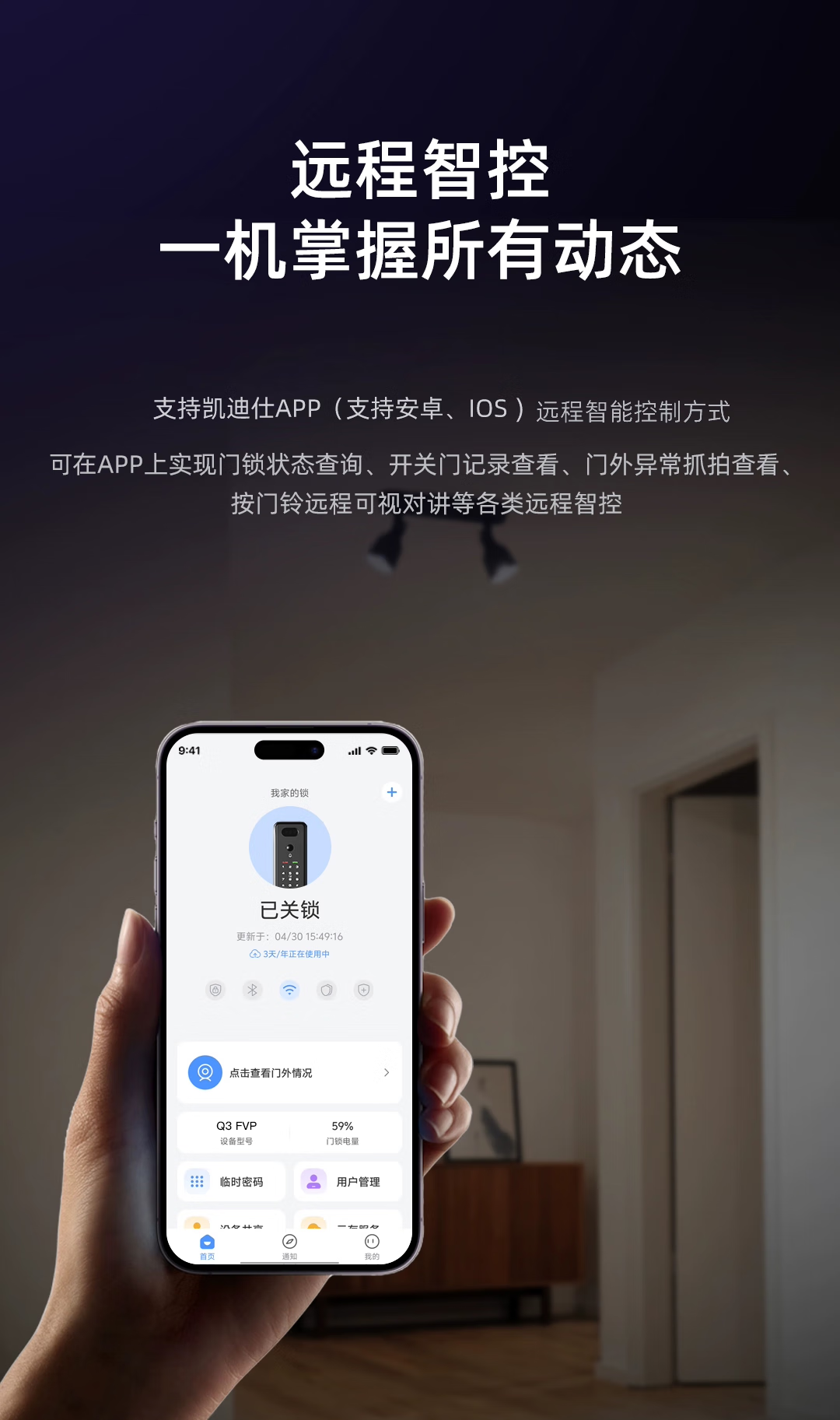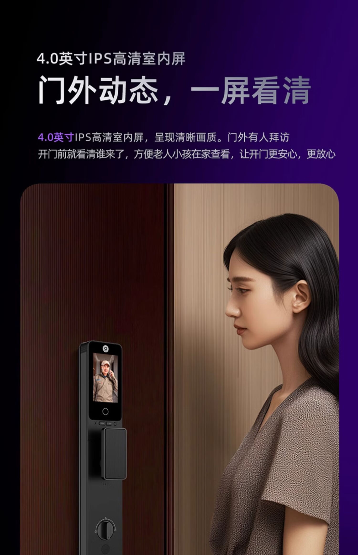 凯迪仕(KAADAS)Q3FVP人脸识别智能锁指纹锁全自动防盗门电子猫眼远程解锁密码锁 Q3FVP旗舰款【人脸+哨兵猫眼+大屏】