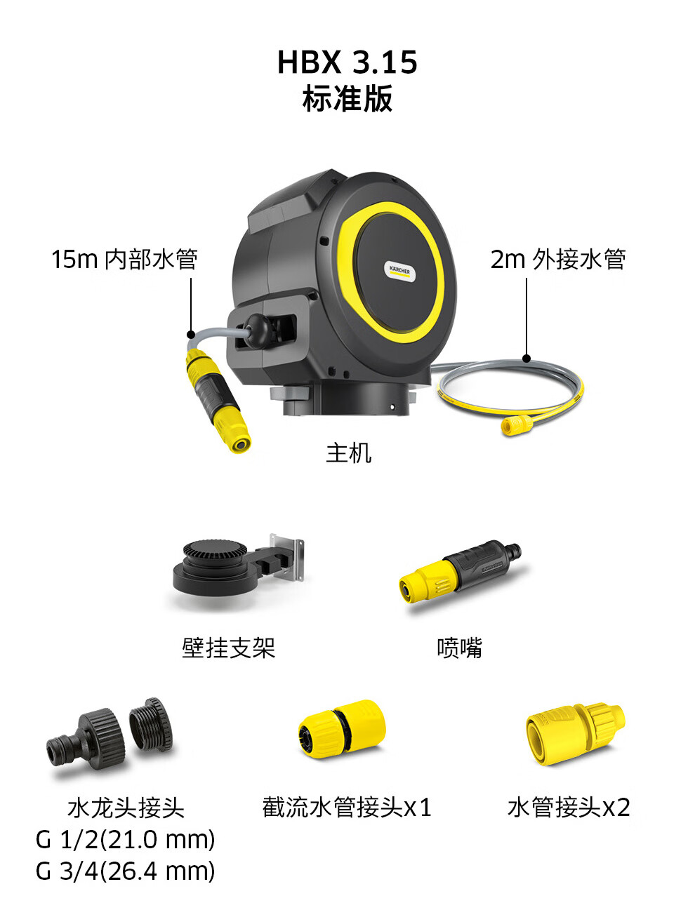 KARCHER德国卡赫水管软管 浇花水枪自动收管水管收纳架卷管器HBX3.15