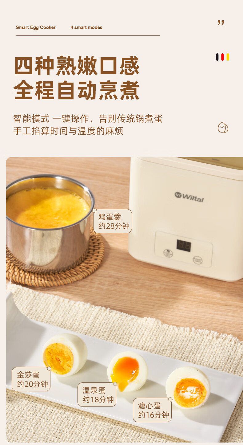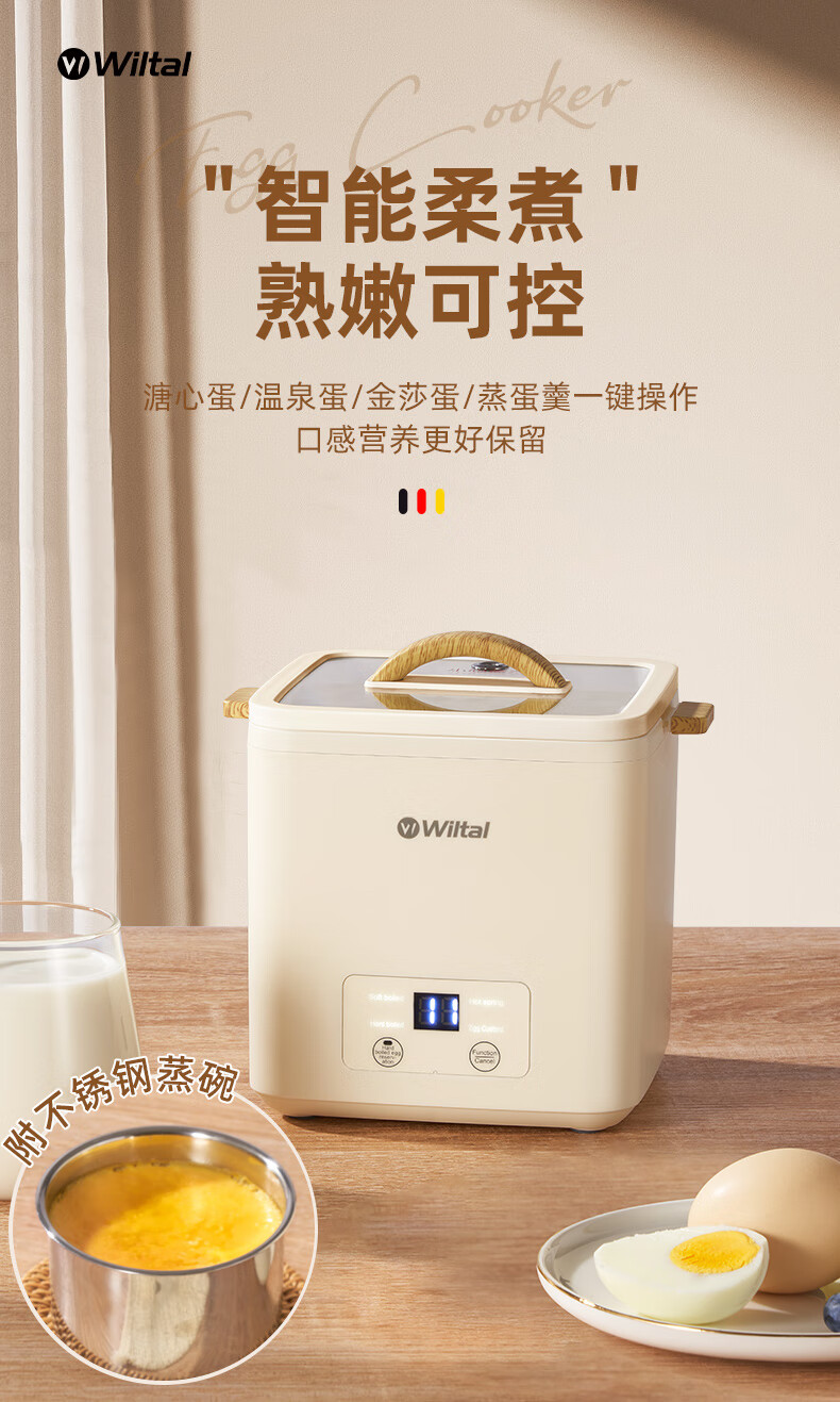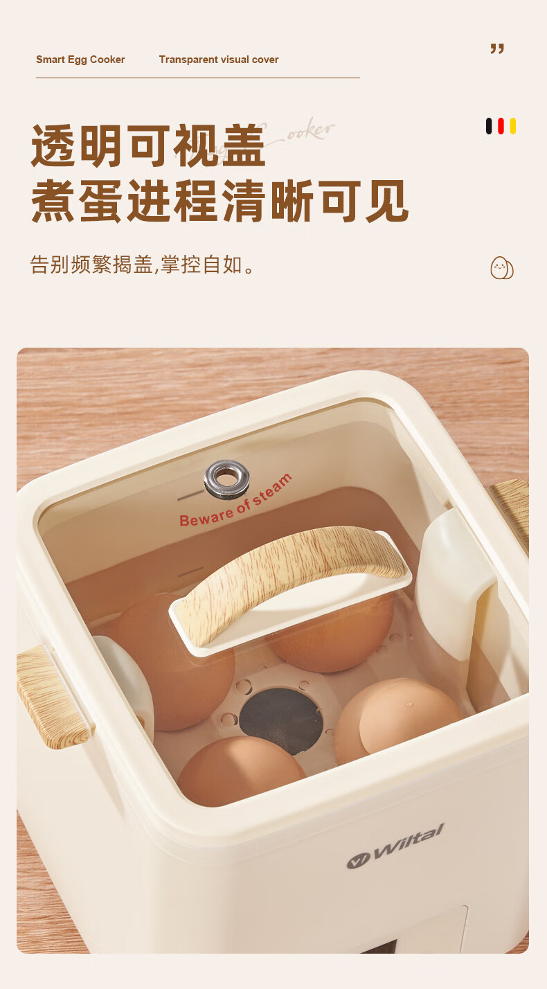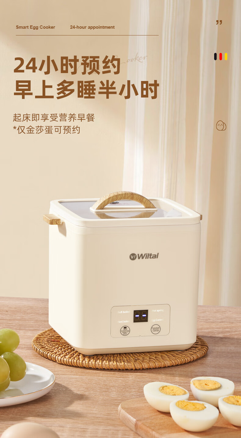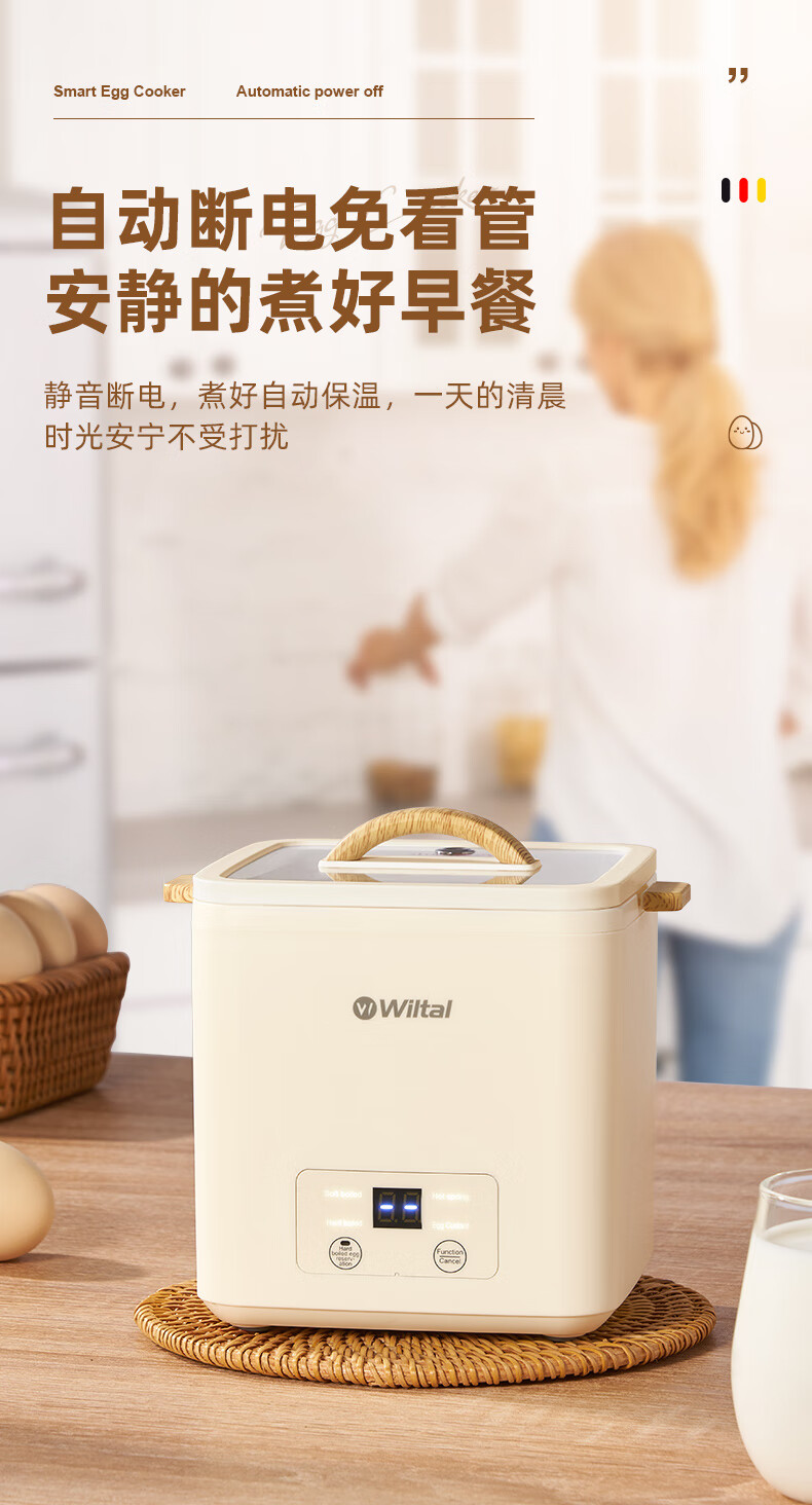 维勒拓(Wiltal)德国煮蛋器 蒸蛋器多功能家用迷你小型早餐一体机煮鸡蛋神器自动断电温泉蛋蒸蛋羹神器 双层 4枚蛋智能预约【配送蒸碗】