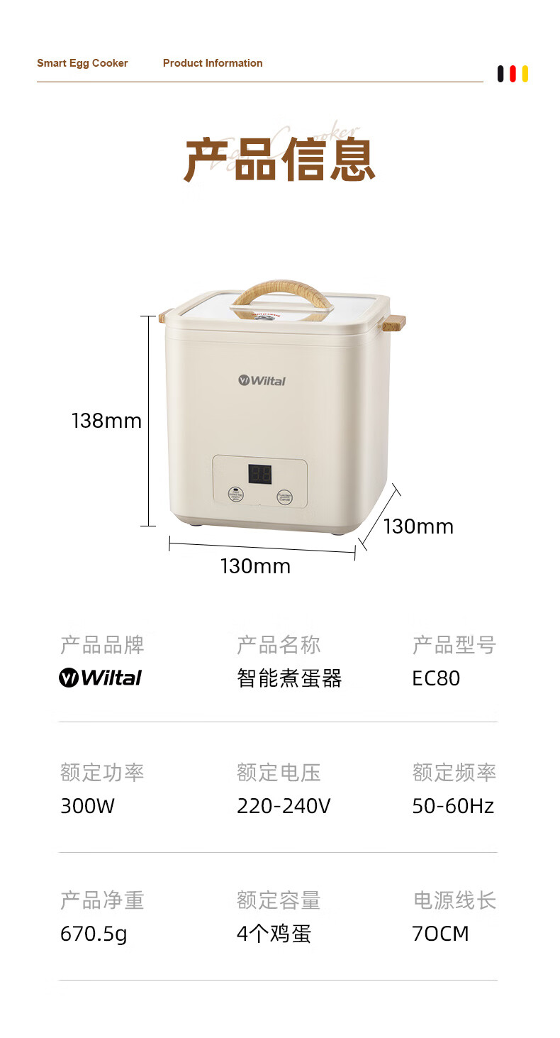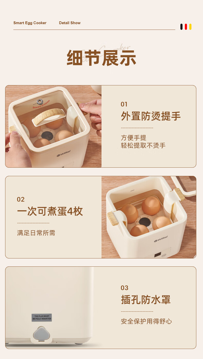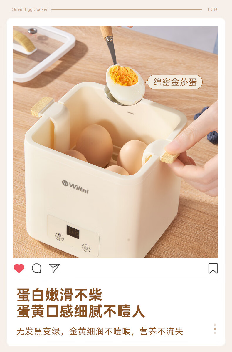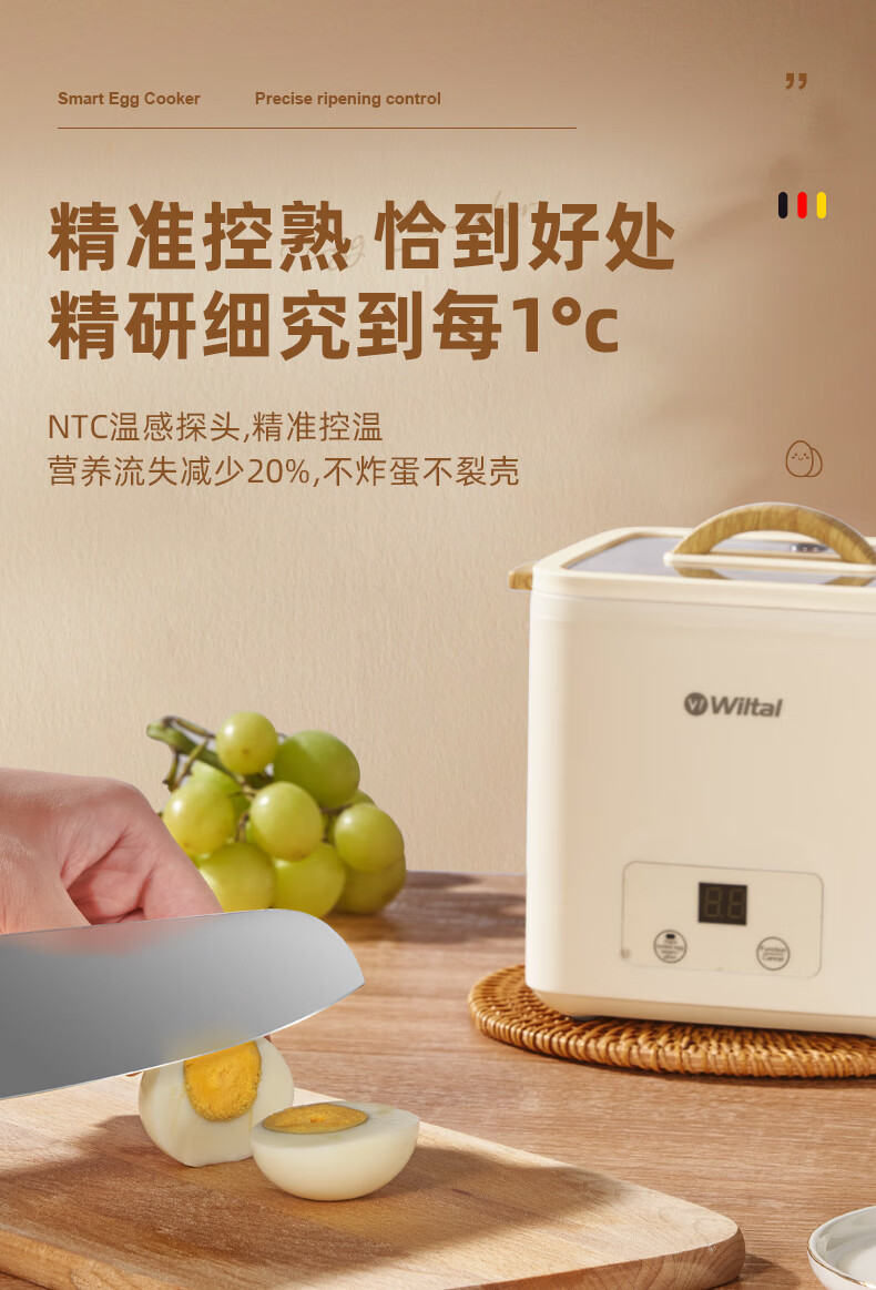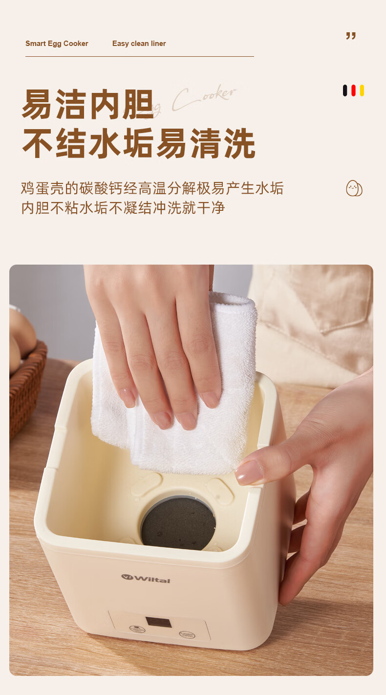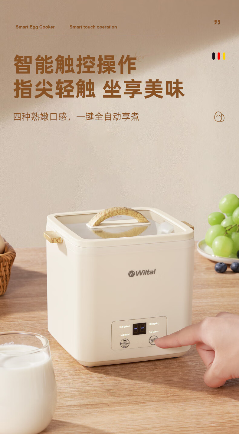 维勒拓(Wiltal)德国煮蛋器 蒸蛋器多功能家用迷你小型早餐一体机煮鸡蛋神器自动断电温泉蛋蒸蛋羹神器 双层 4枚蛋智能预约【配送蒸碗】