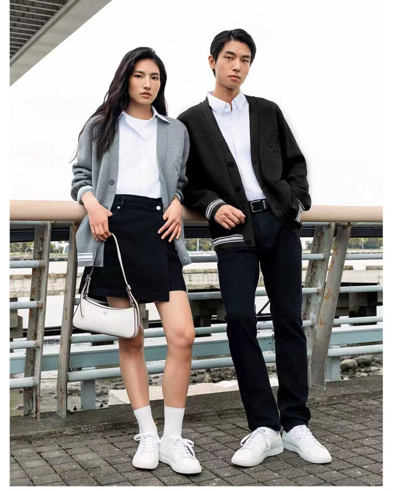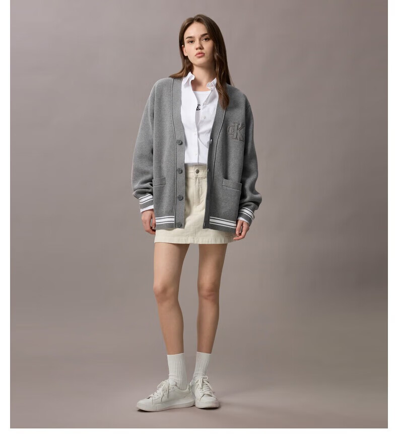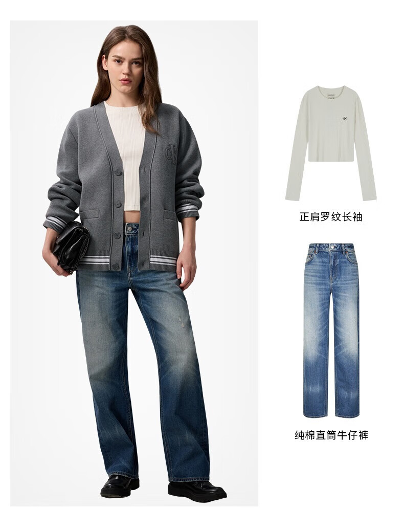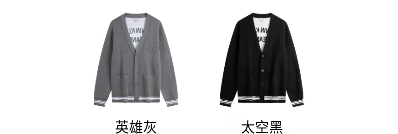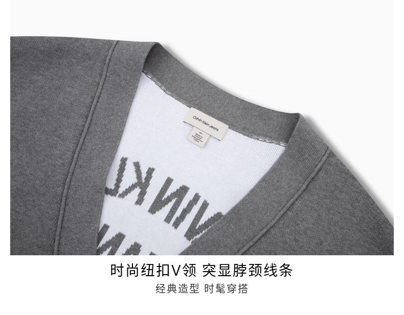 Calvin KleinJeans25秋季新款男女情侣休闲学院ck字母提花纽扣V领针织开衫外套 UB1-太空黑 M