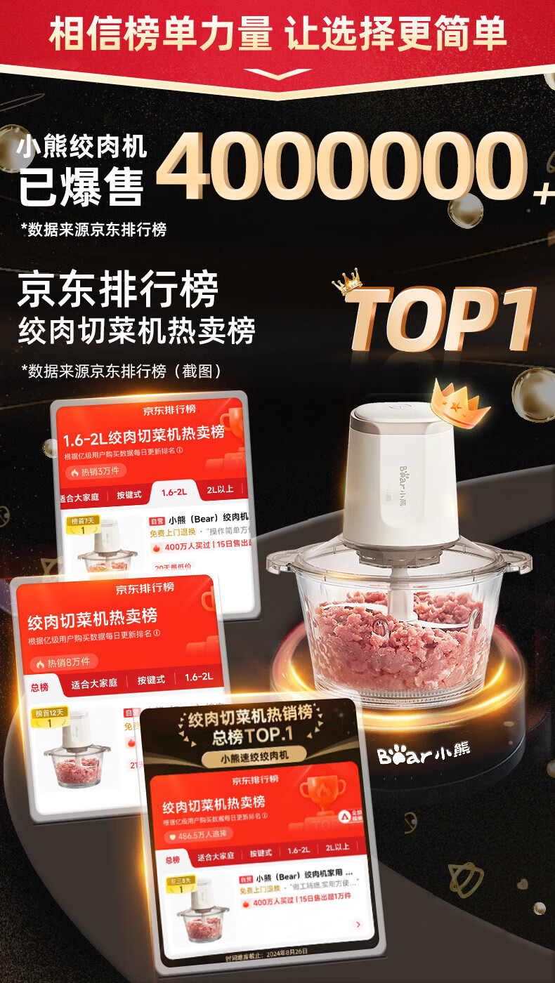 小熊(Bear)绞肉机家用 绞馅机 碎肉机 绞肉绞菜多功能一体机料理辅食机搅拌机打肉机蒜蓉机 搅肉机QSJ-E03C8
