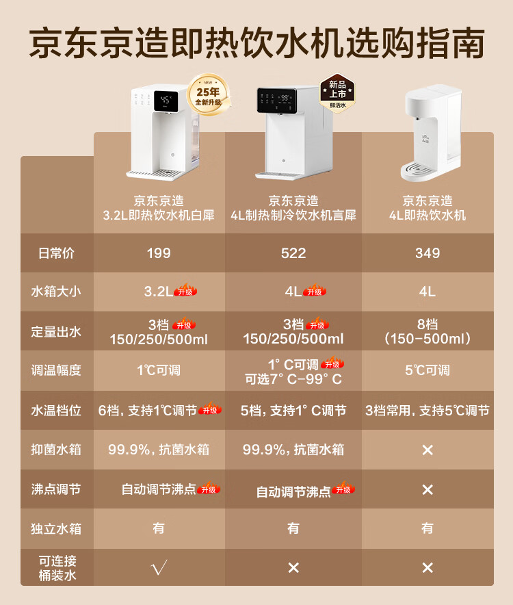 京东京造白犀即热式饮水机家用台式小型桌面饮水烧水直饮机烧水壶 3秒速热 6段控温 3.2L抗菌水箱