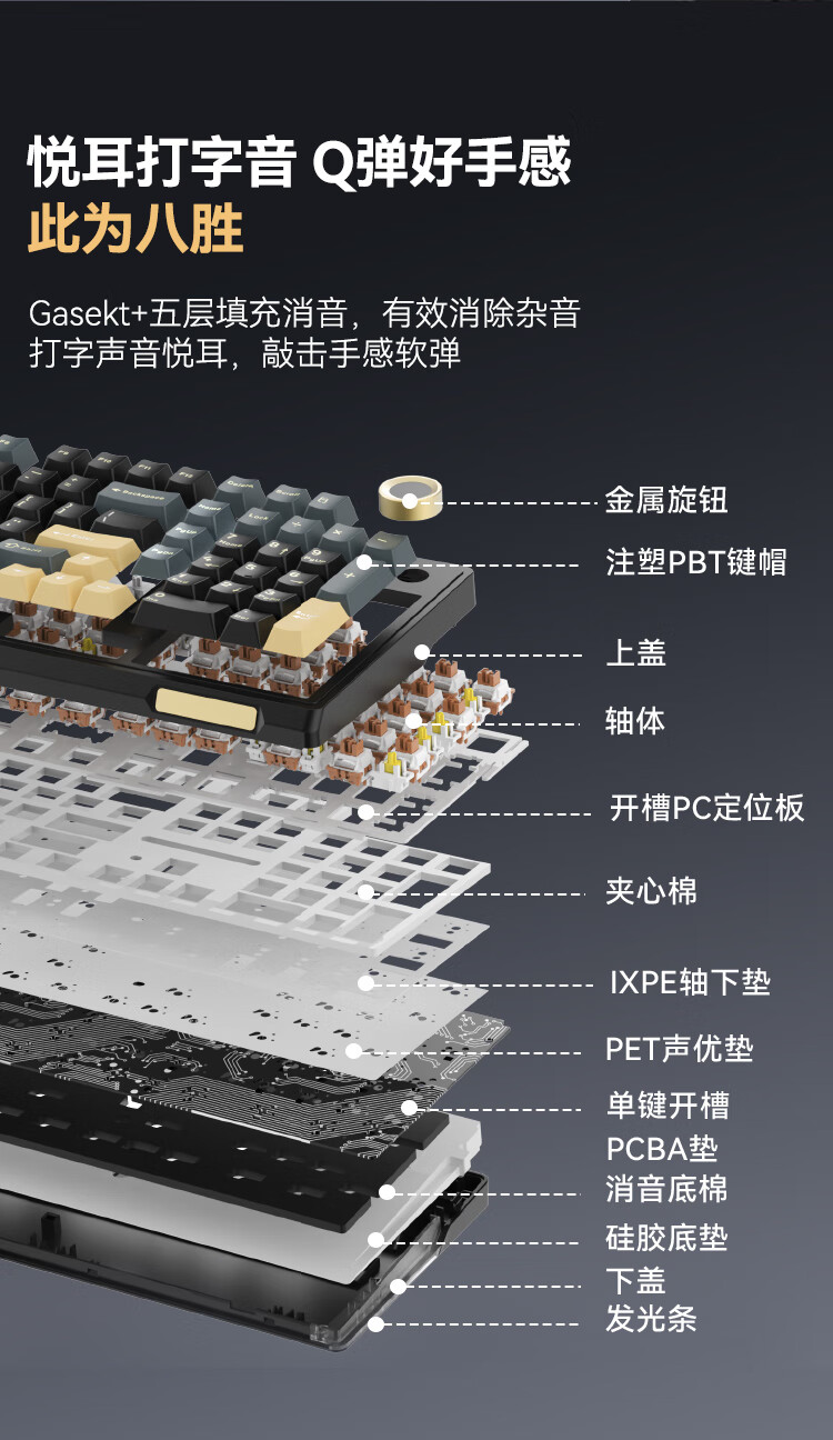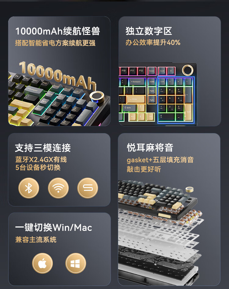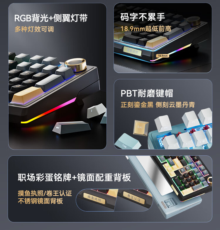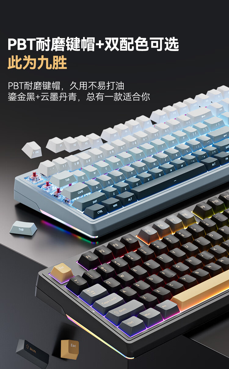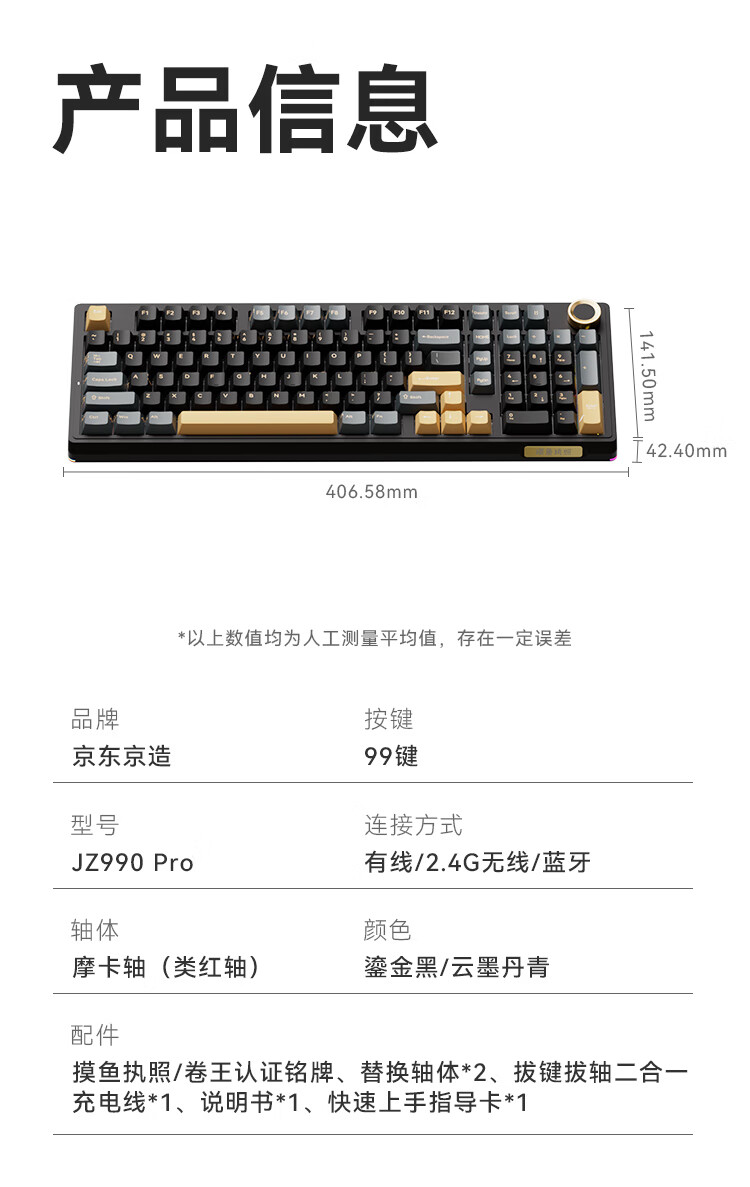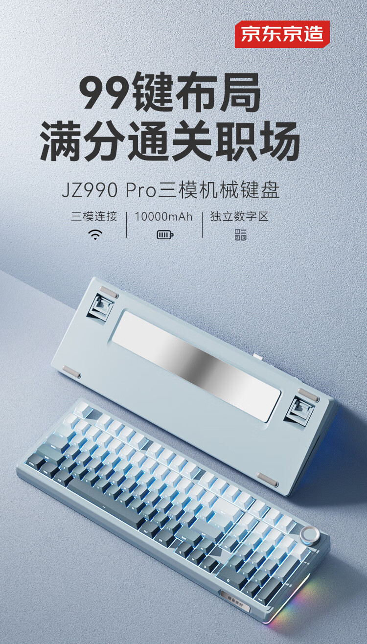 京东京造JZ990Pro三模无线蓝牙有线办公游戏电竞PBT键帽家用送男友独立数字区续航外设机械键盘 云墨丹青