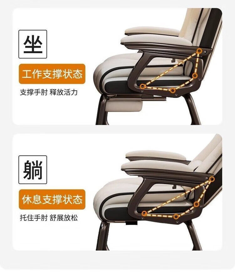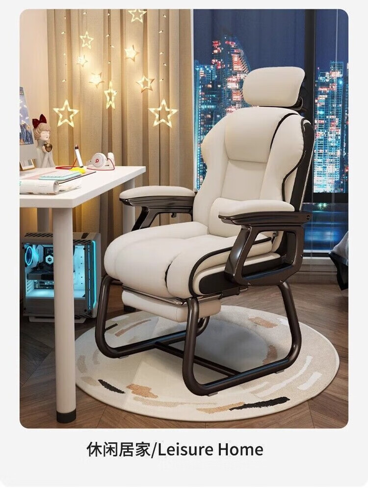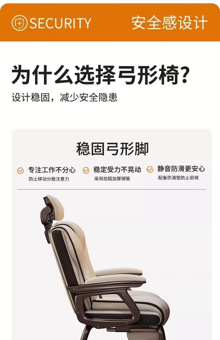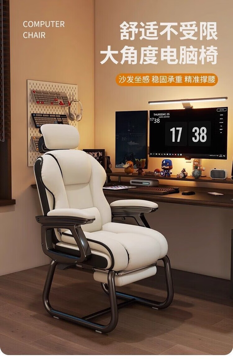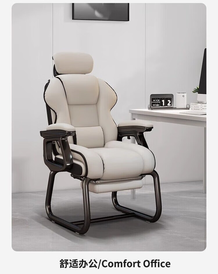 倘然之家电脑椅舒适久坐弓形椅家用办公椅子可躺沙发椅休闲电竞椅子老板椅 灰色【高回弹海绵-超稳加固款】 弓形钢制脚