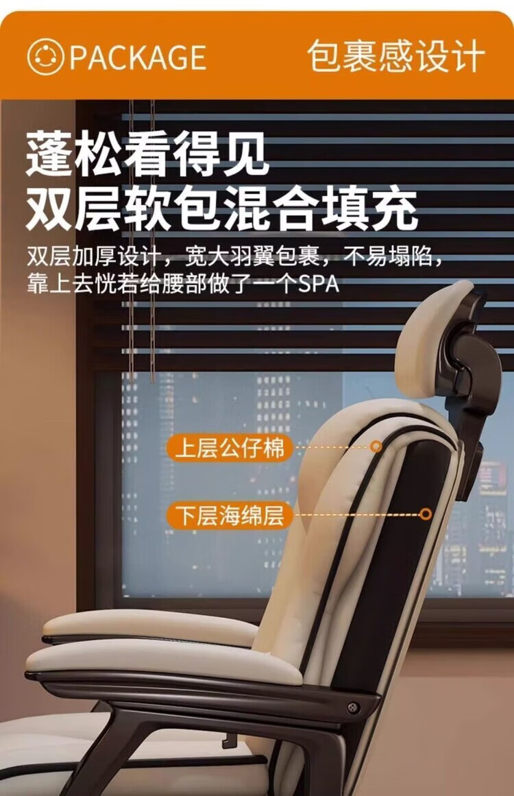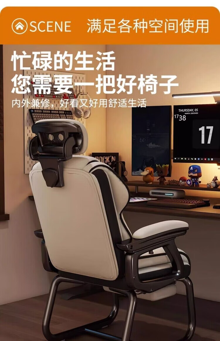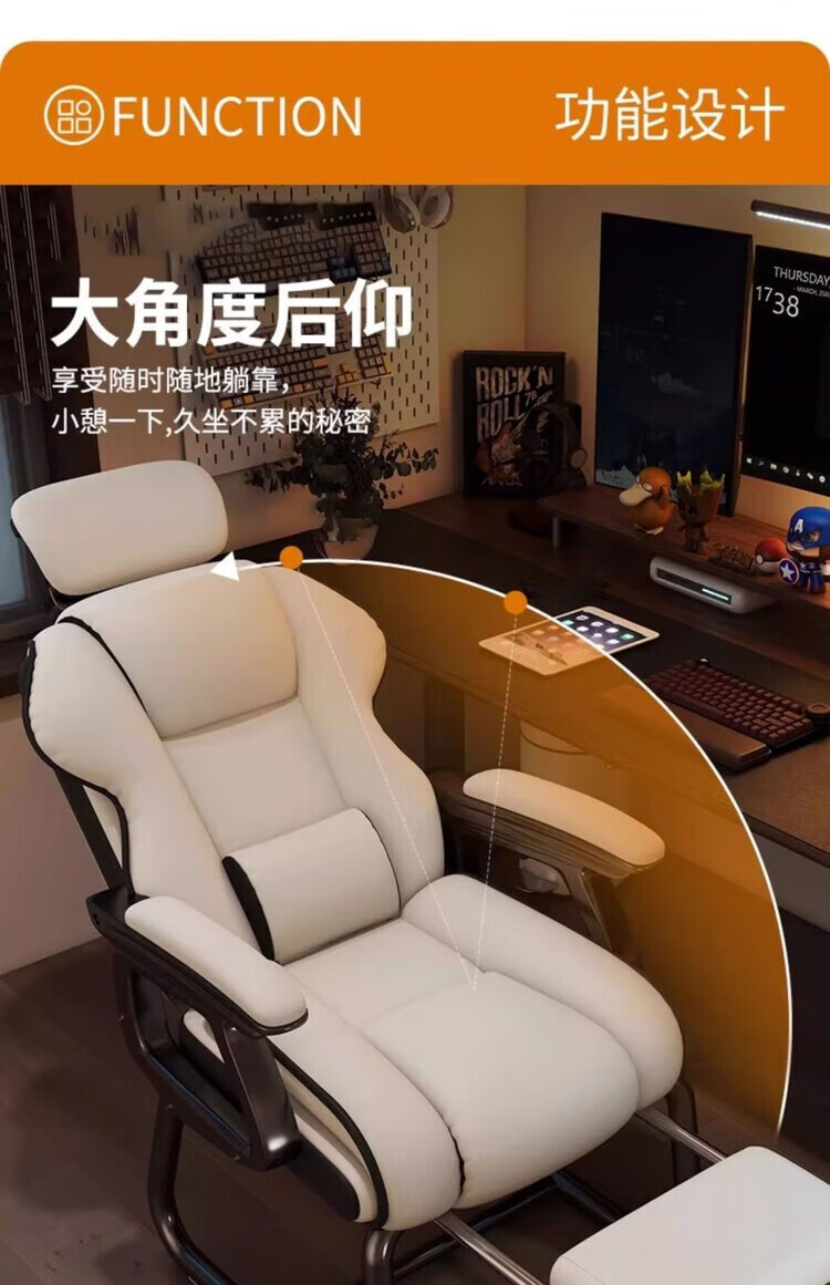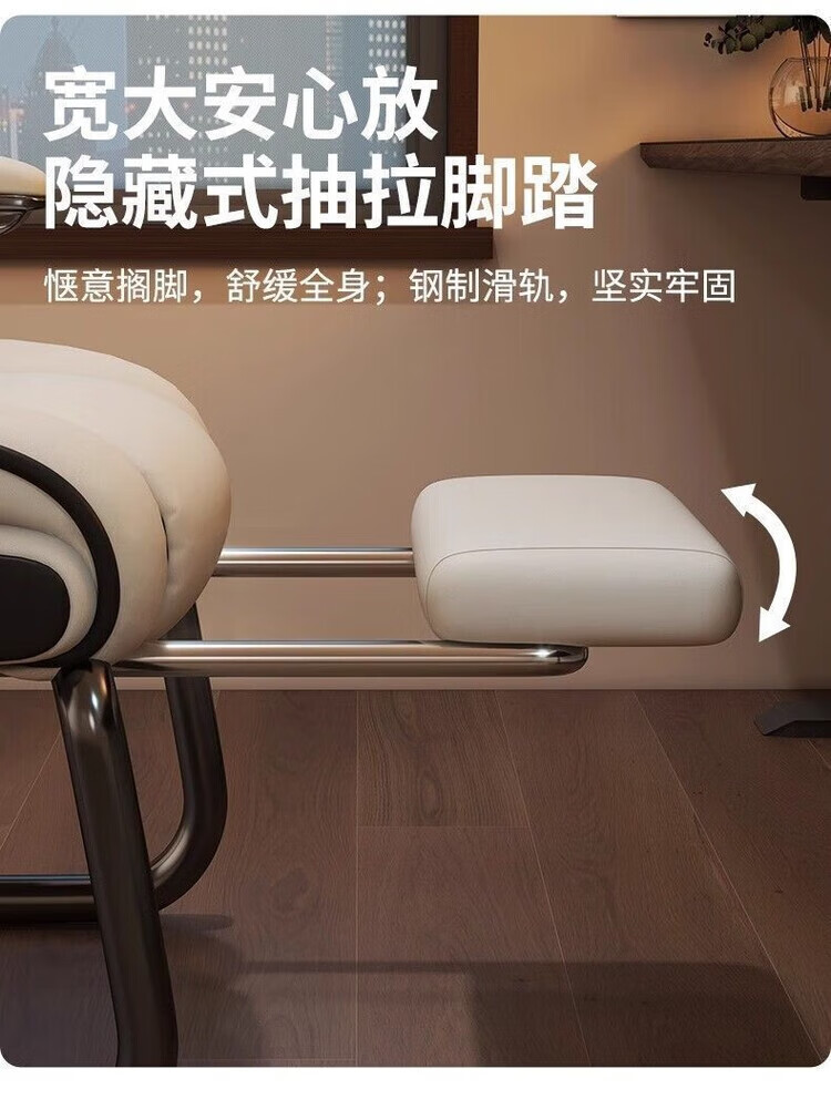 倘然之家电脑椅舒适久坐弓形椅家用办公椅子可躺沙发椅休闲电竞椅子老板椅 灰色【高回弹海绵-超稳加固款】 弓形钢制脚