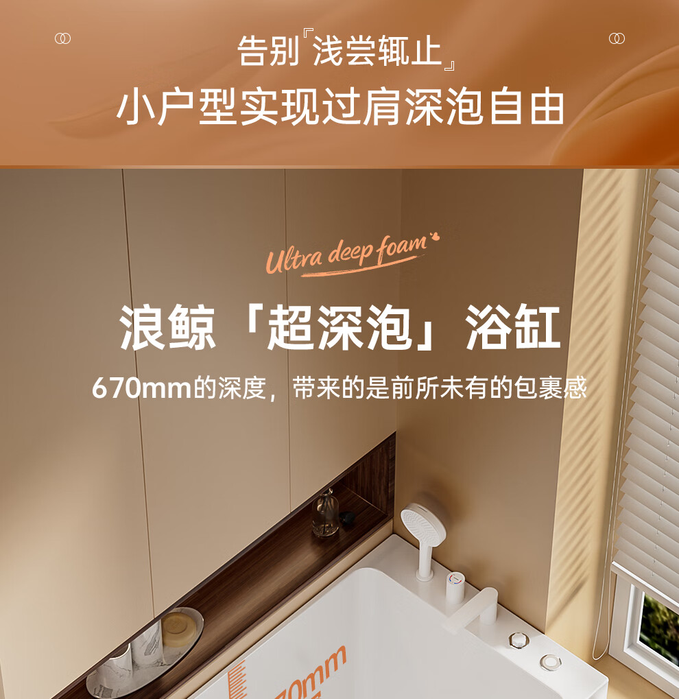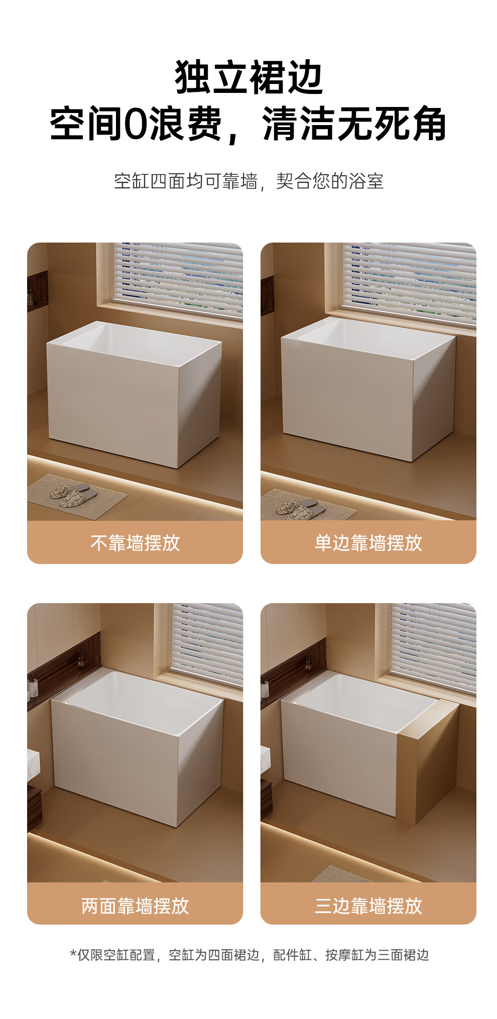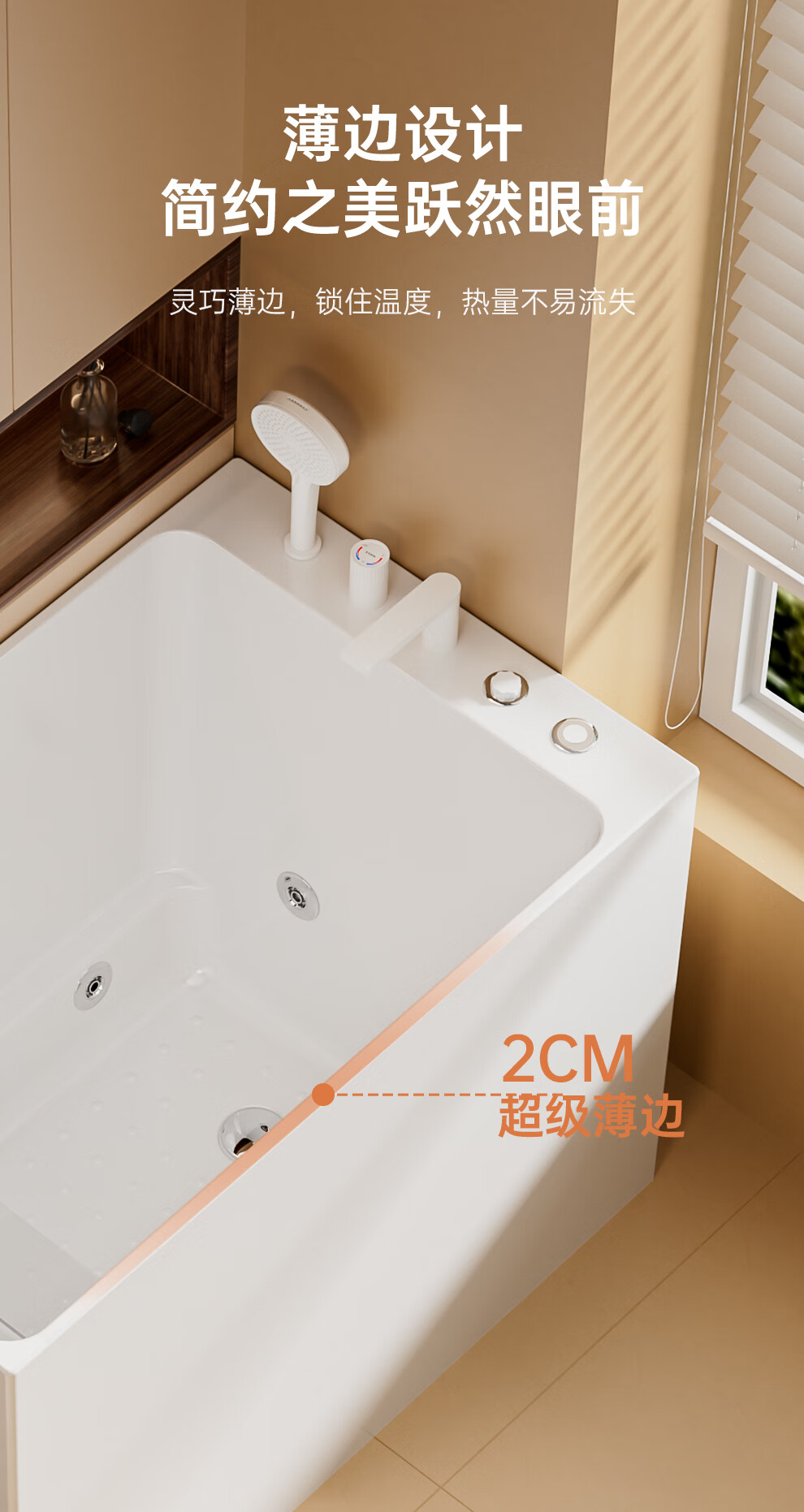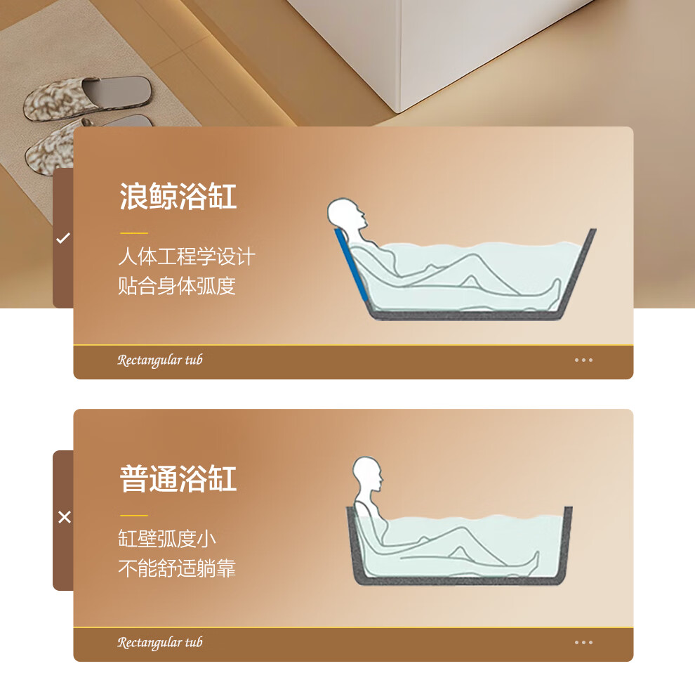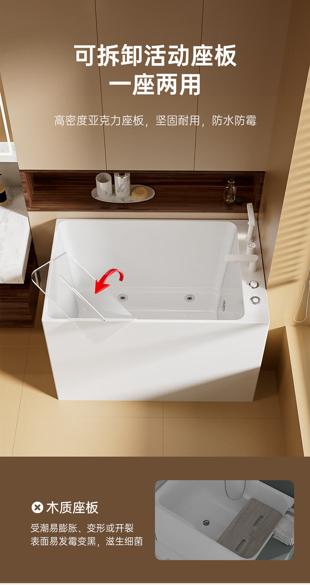 浪鲸(SSWW)卫浴深泡浴缸家用亚克力薄边独立式浴池小户型淋浴一体成人浴盆 【1.3m】空缸+座板