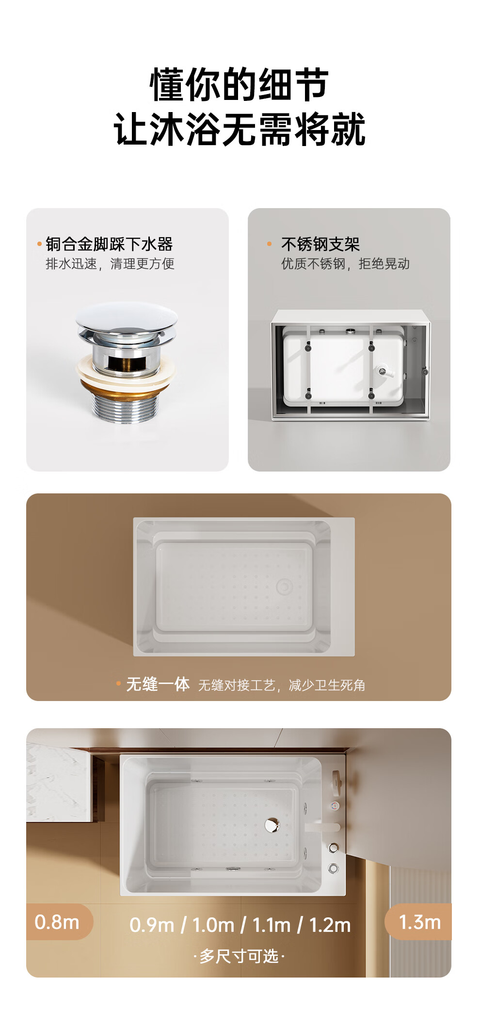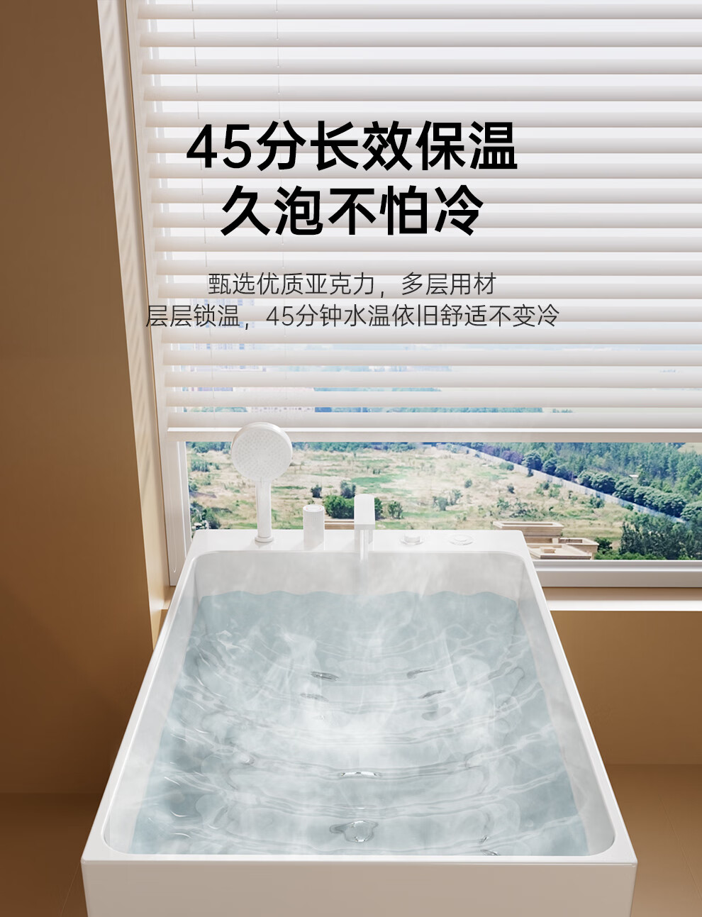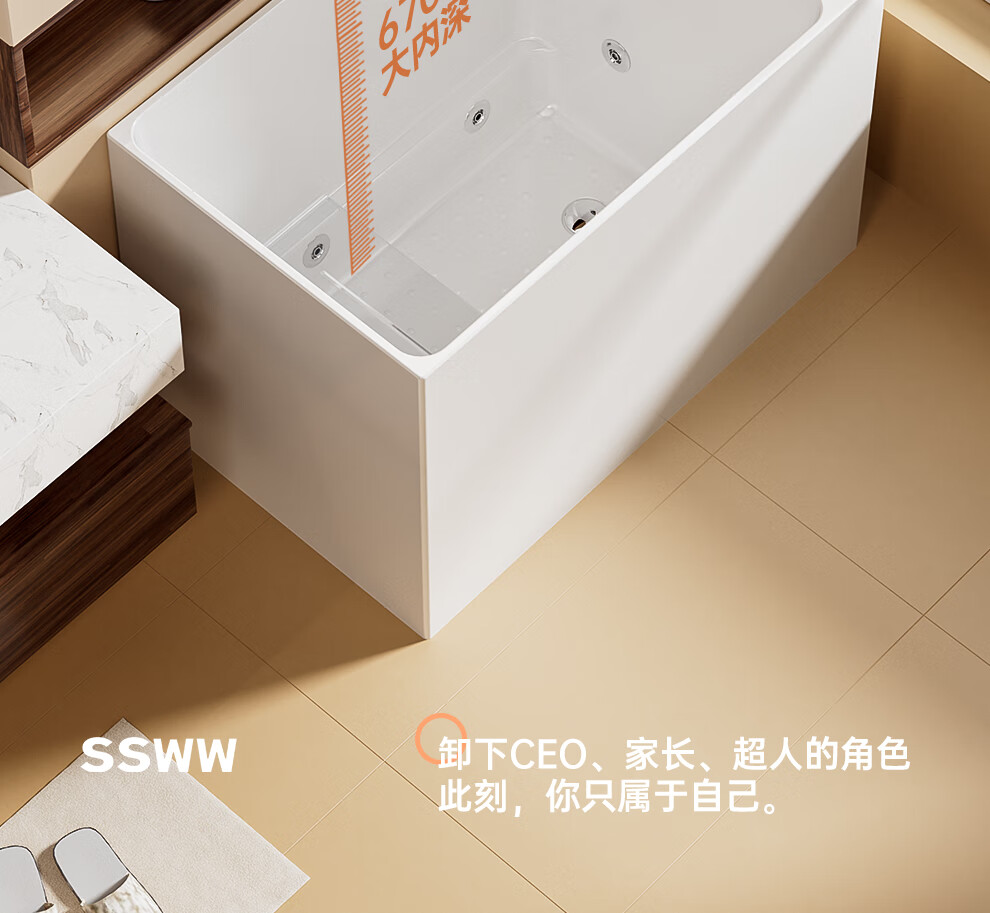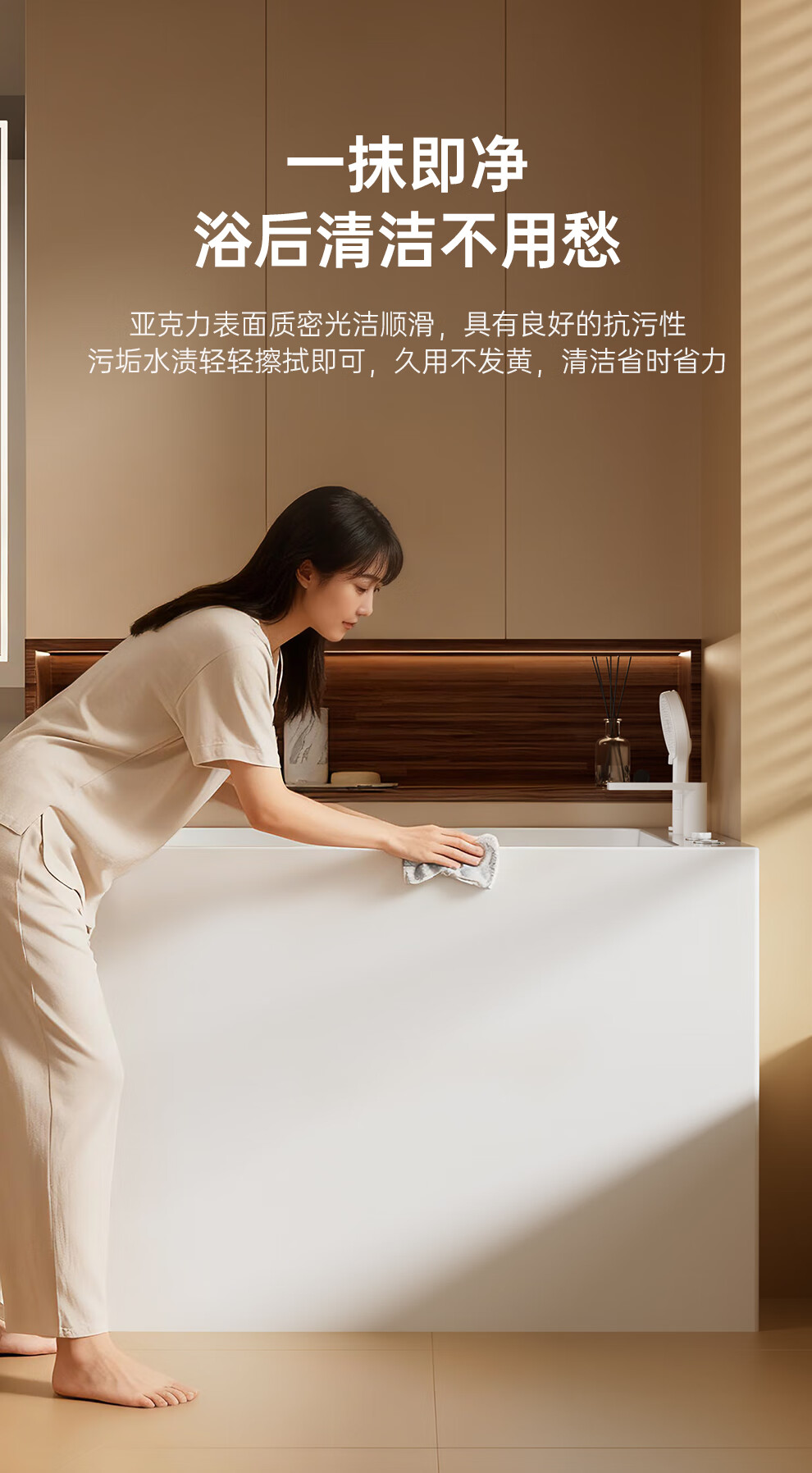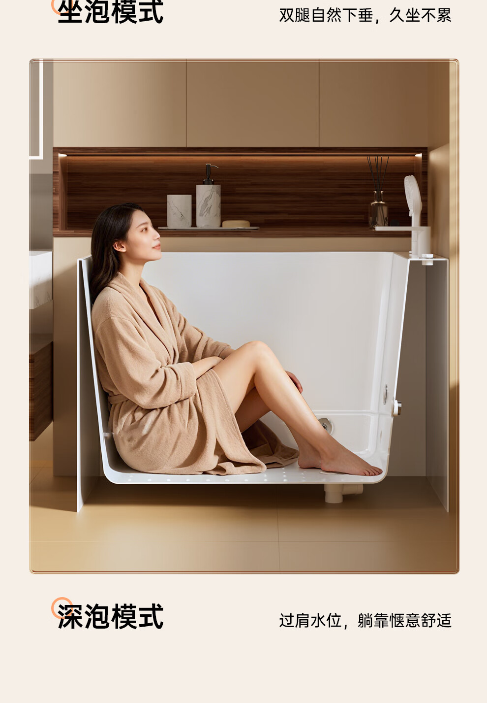 浪鲸(SSWW)卫浴深泡浴缸家用亚克力薄边独立式浴池小户型淋浴一体成人浴盆 【1.3m】空缸+座板