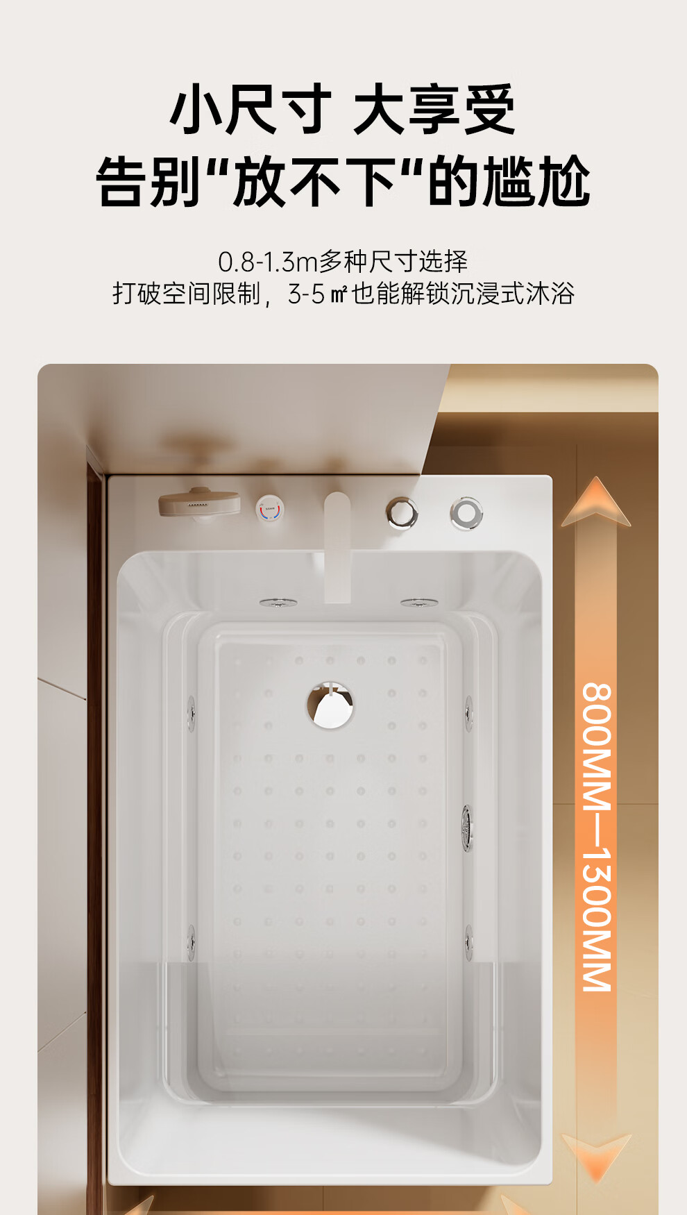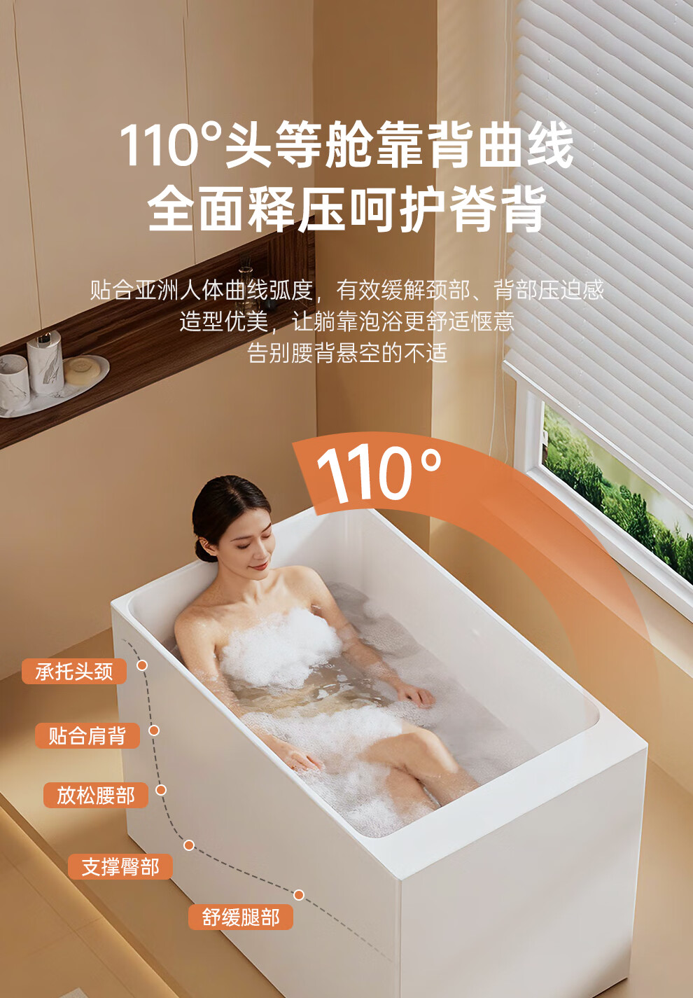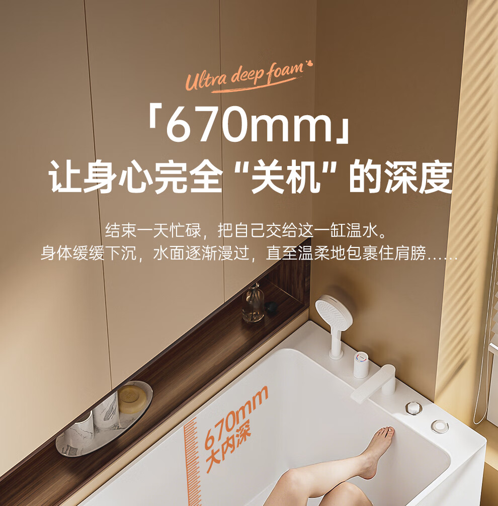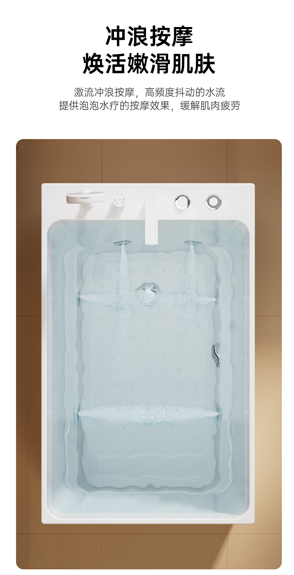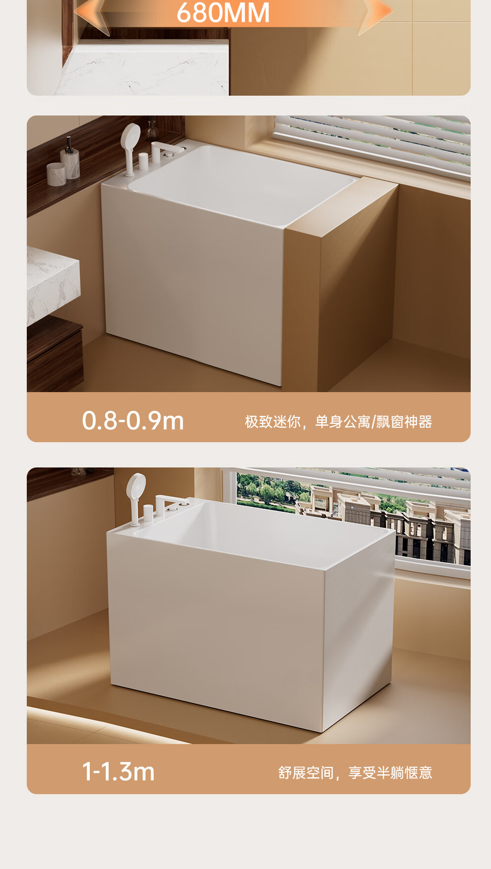 浪鲸(SSWW)卫浴深泡浴缸家用亚克力薄边独立式浴池小户型淋浴一体成人浴盆 【1.3m】空缸+座板