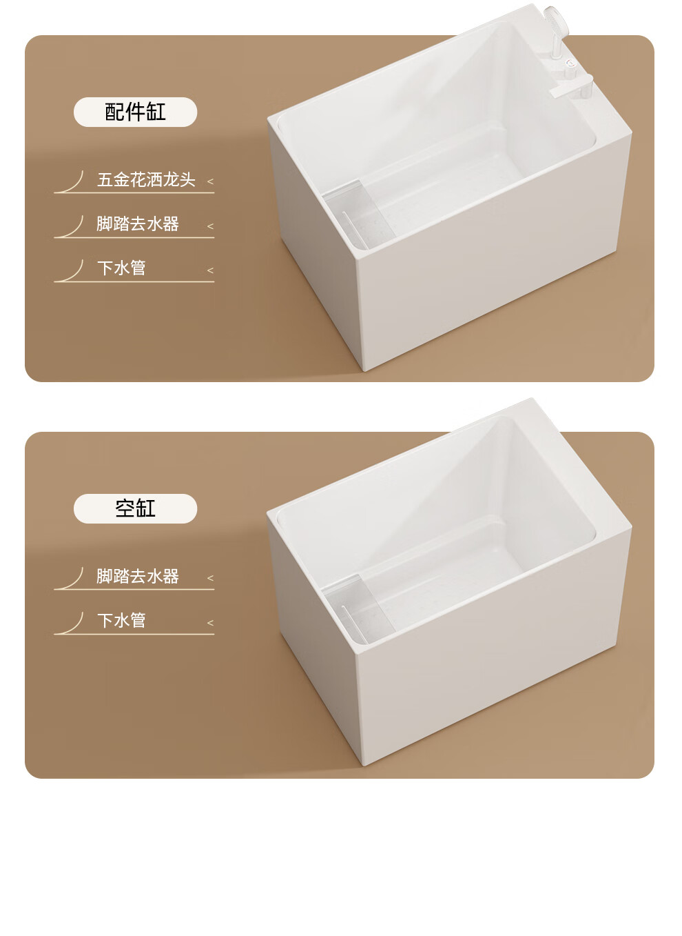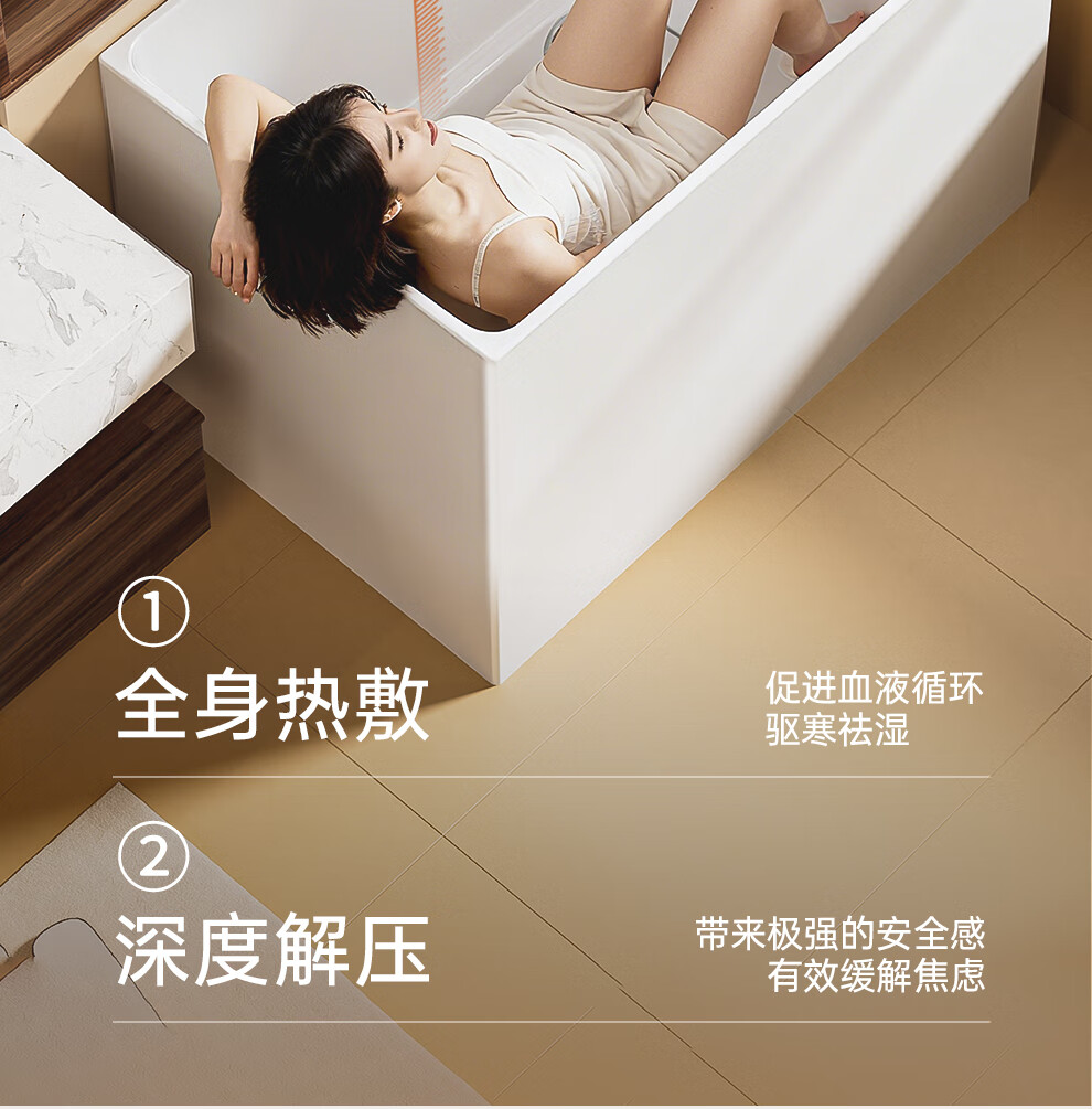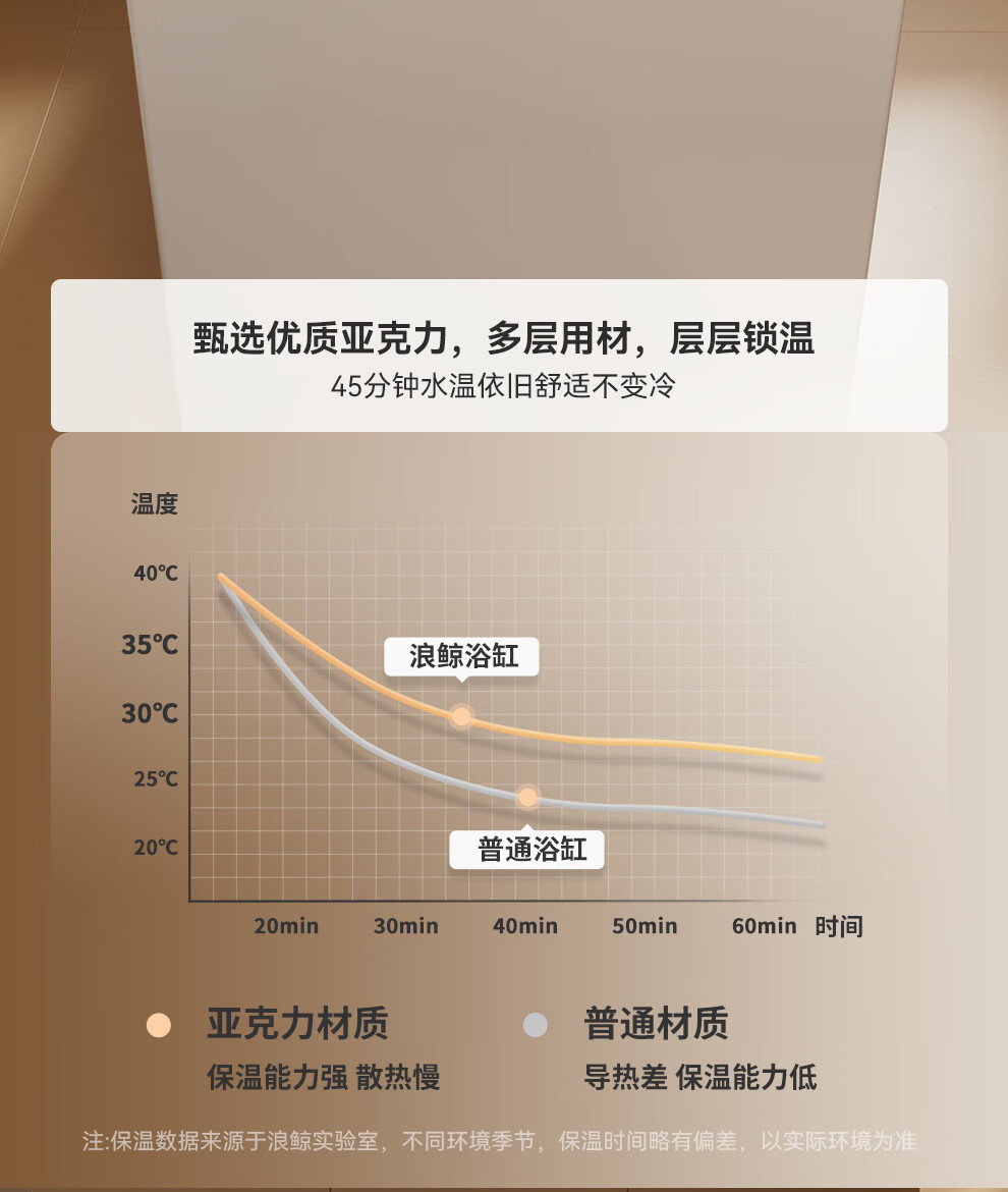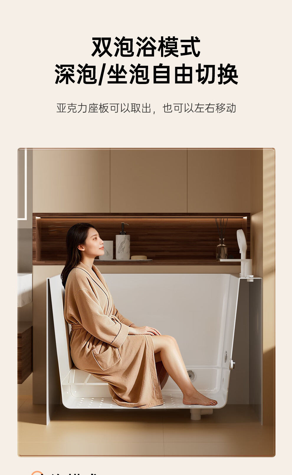 浪鲸(SSWW)卫浴深泡浴缸家用亚克力薄边独立式浴池小户型淋浴一体成人浴盆 【1.3m】空缸+座板