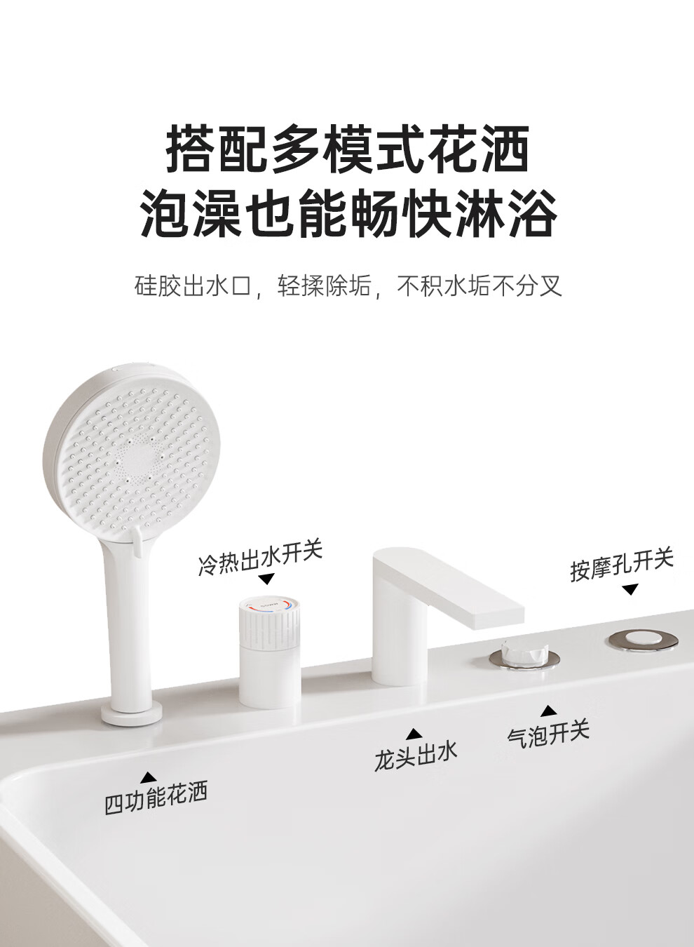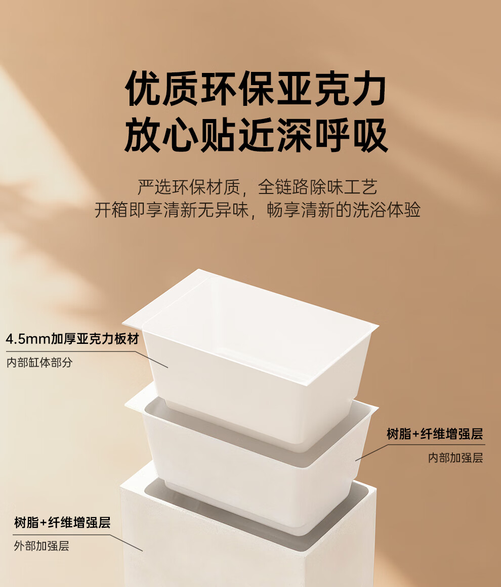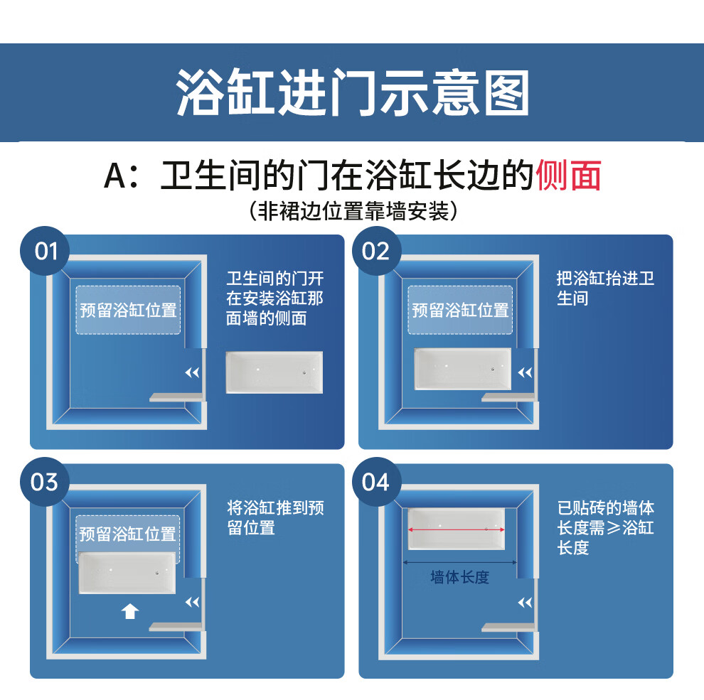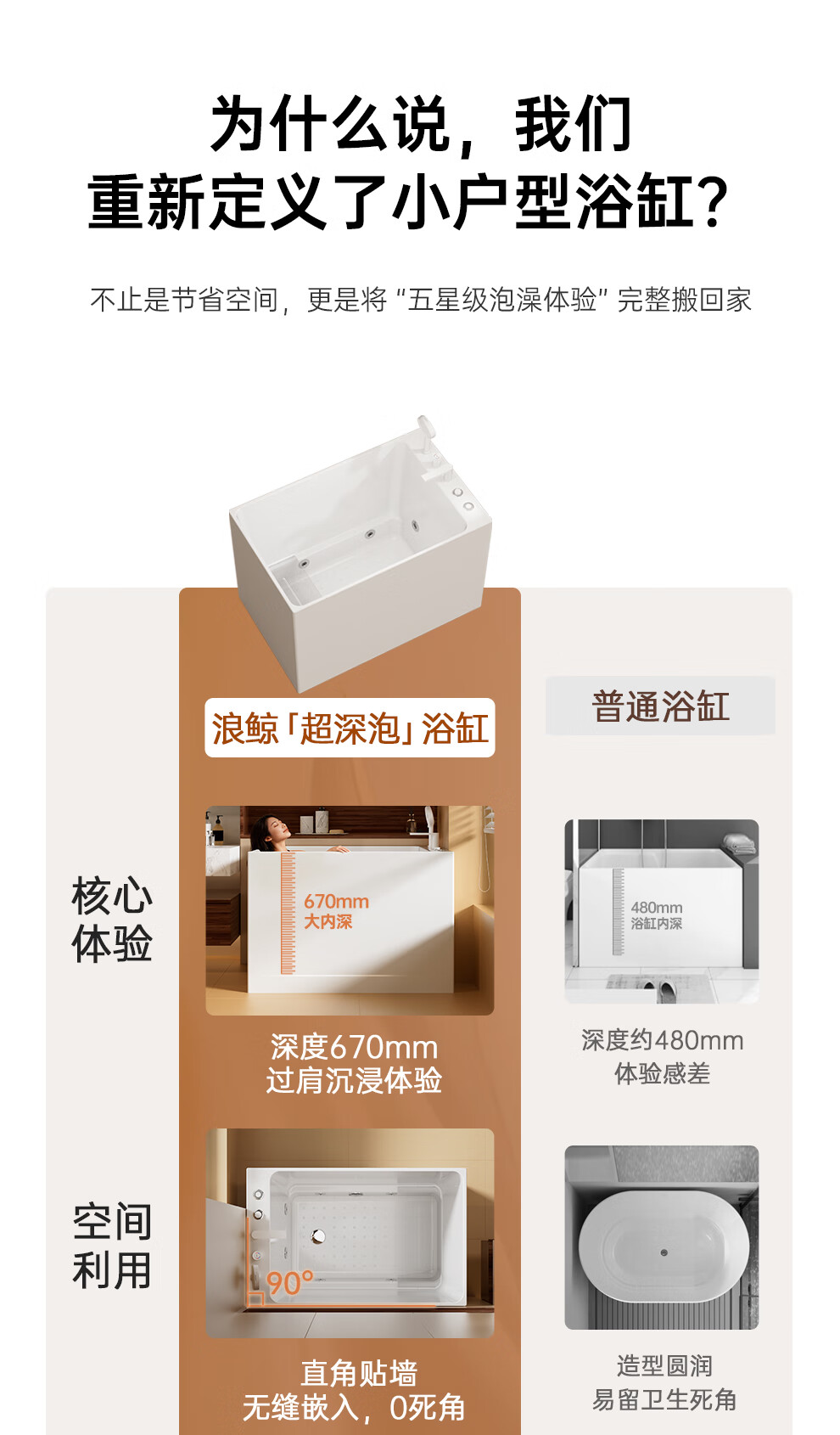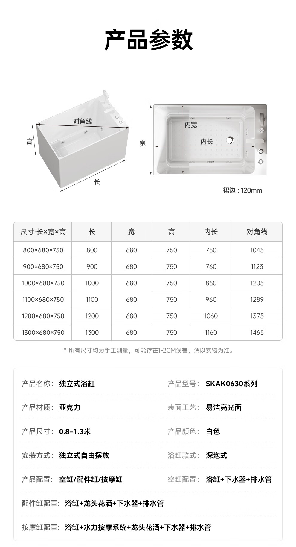 浪鲸(SSWW)卫浴深泡浴缸家用亚克力薄边独立式浴池小户型淋浴一体成人浴盆 【1.3m】空缸+座板
