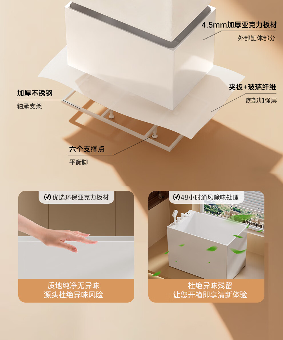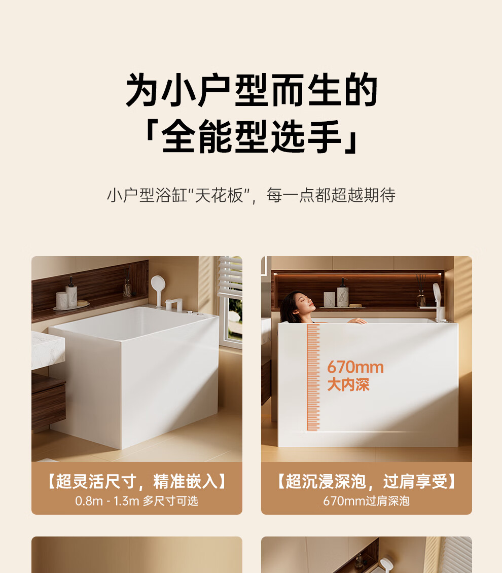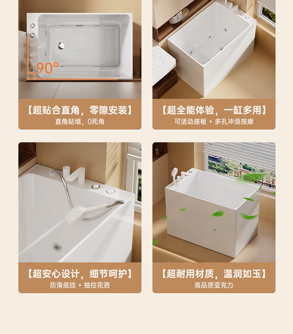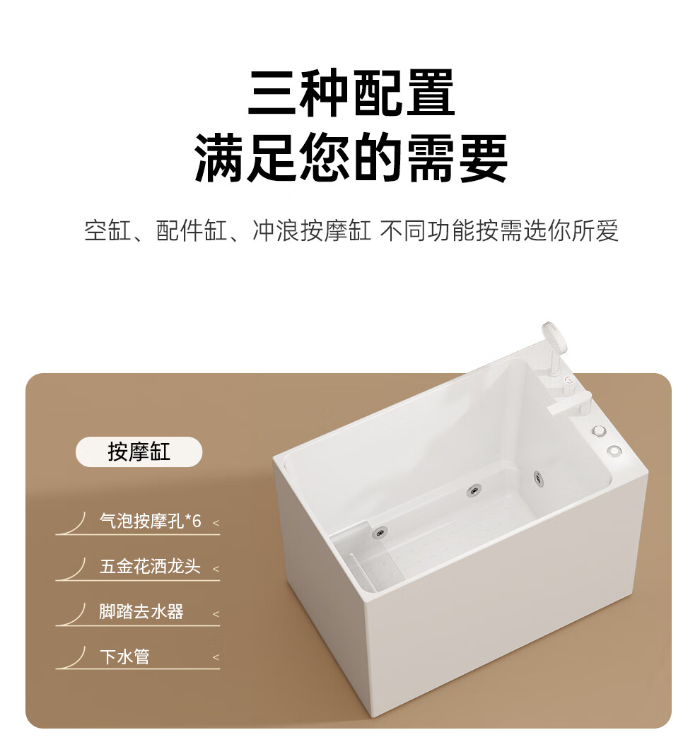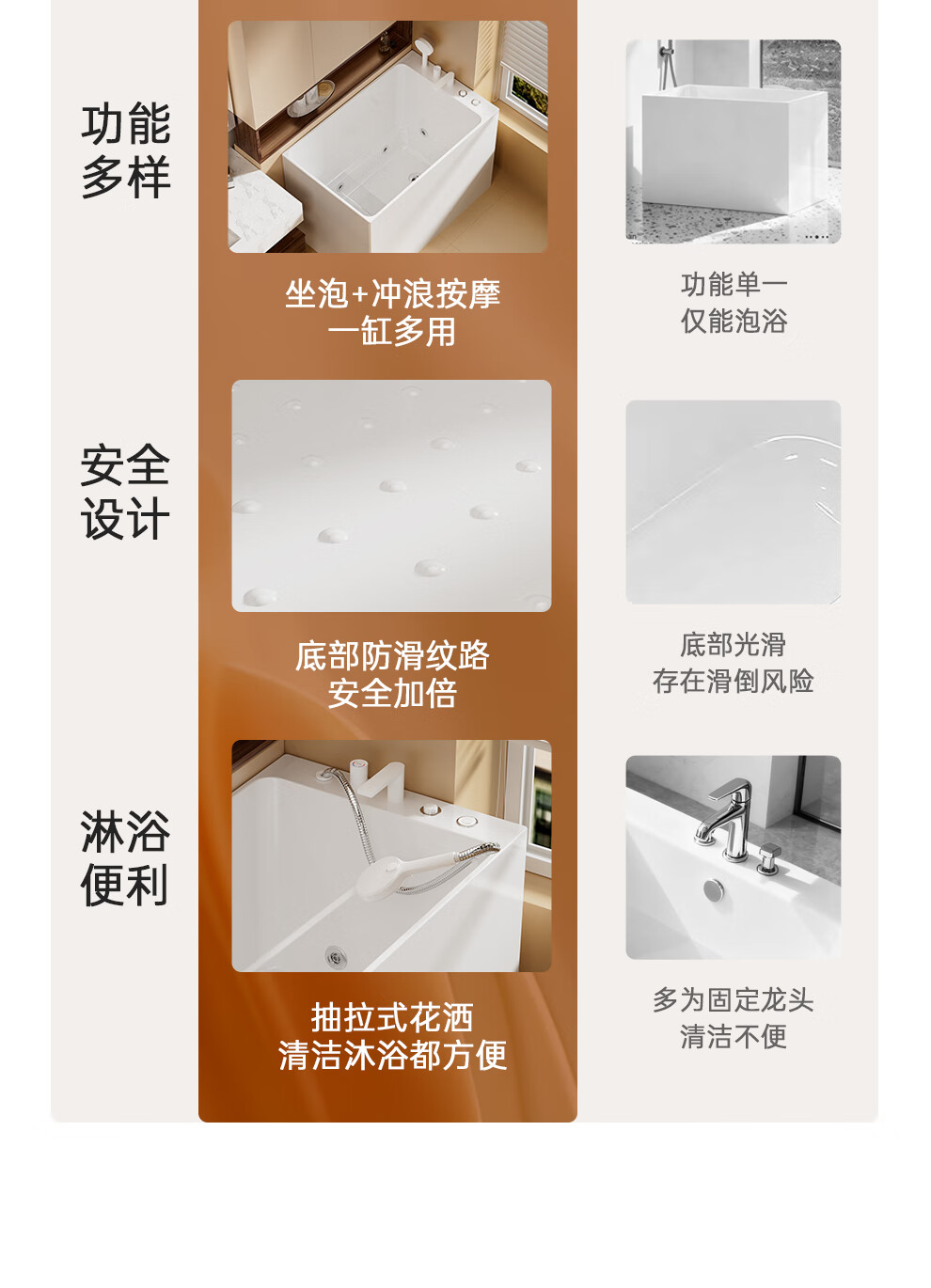 浪鲸(SSWW)卫浴深泡浴缸家用亚克力薄边独立式浴池小户型淋浴一体成人浴盆 【1.3m】空缸+座板