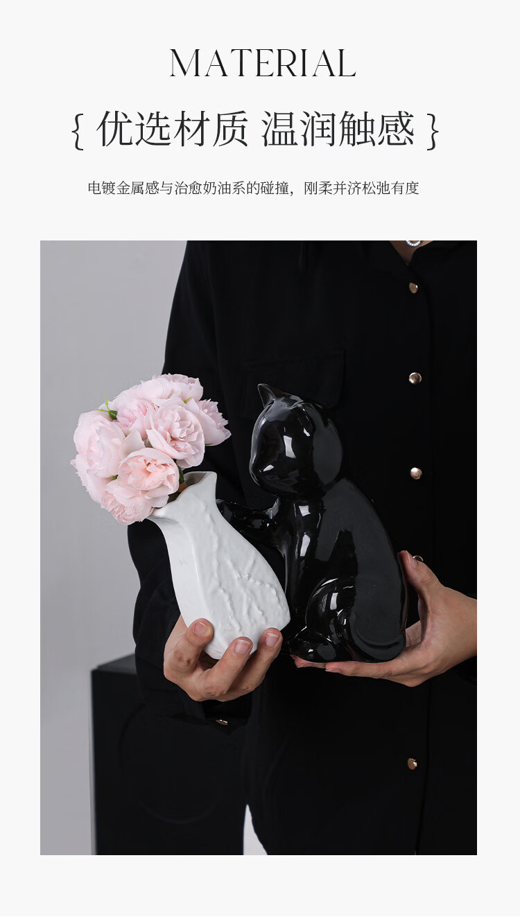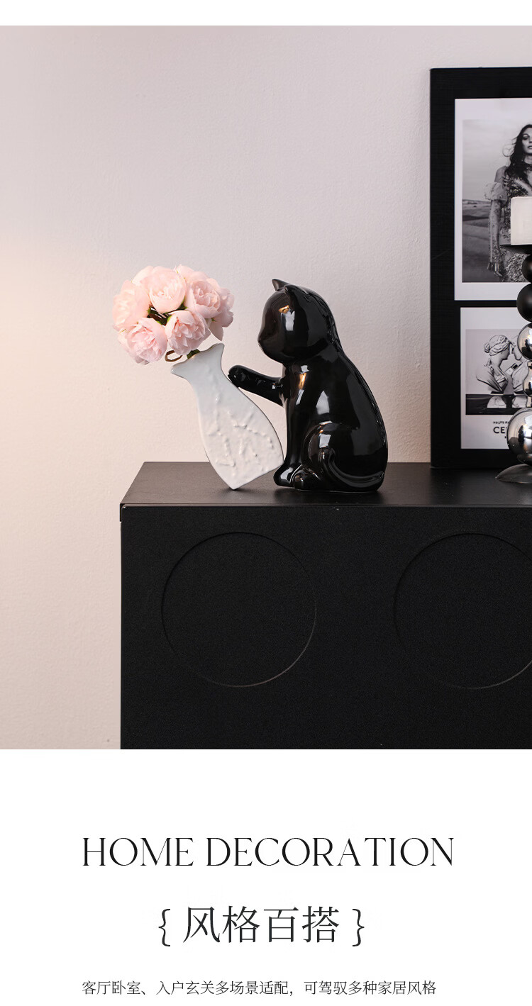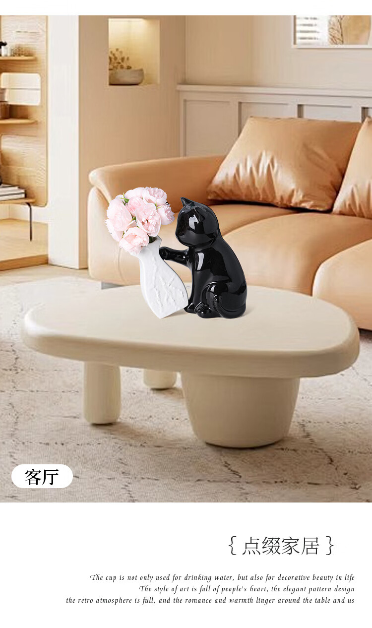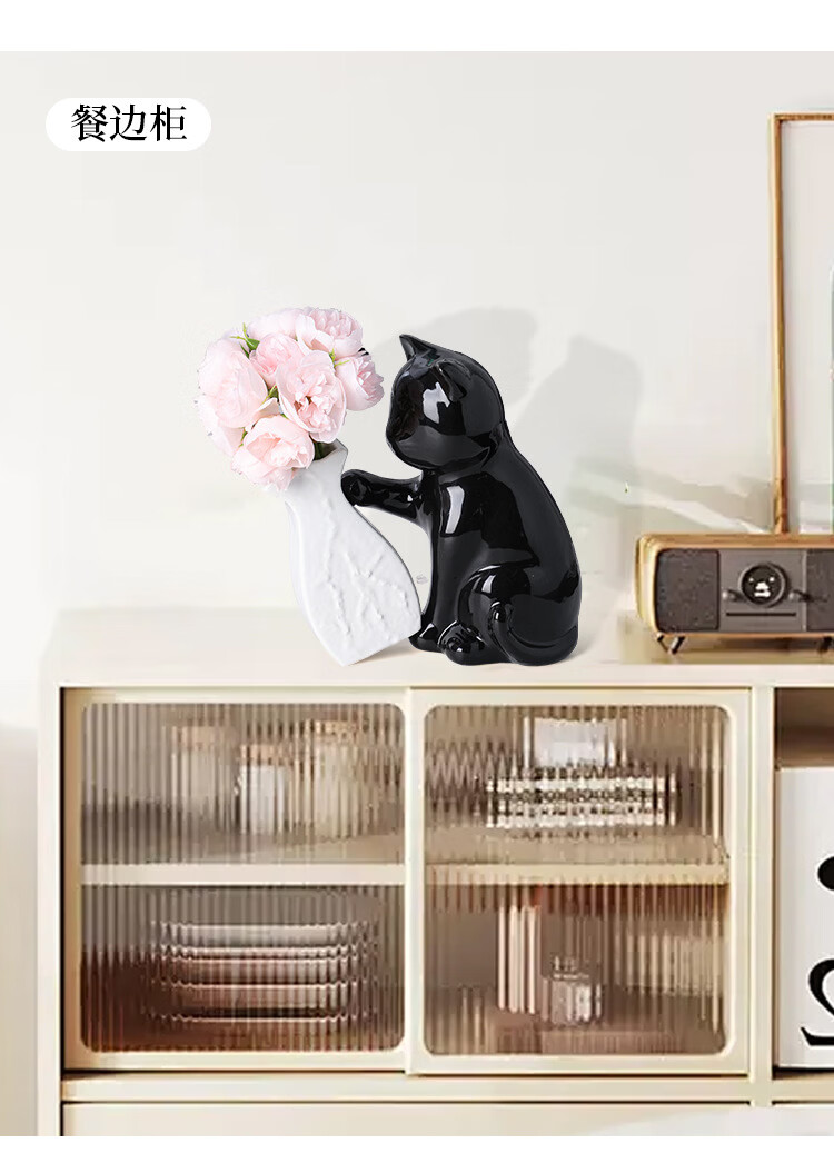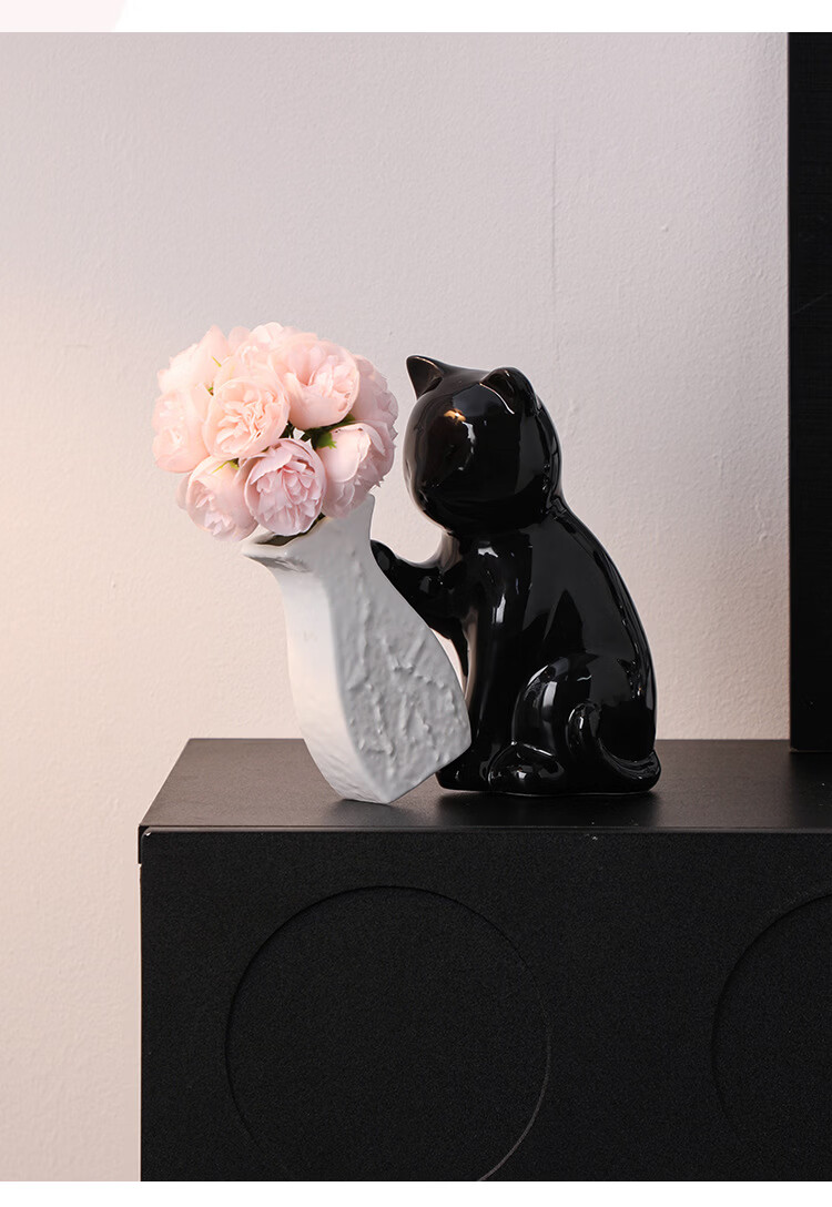 OYKTN创意可爱猫咪插花陶瓷花瓶装饰鲜花干花水培餐桌客厅玄关艺术摆件 喵趣花伴-单花瓶