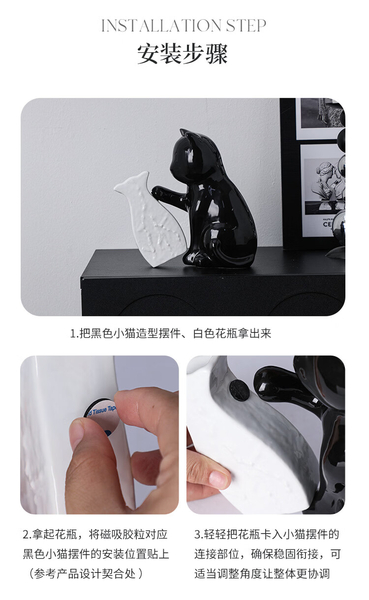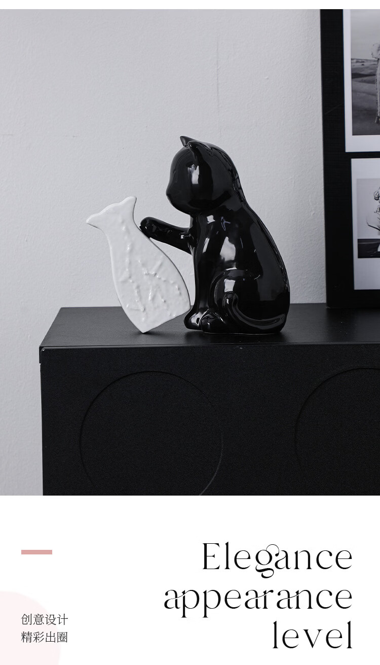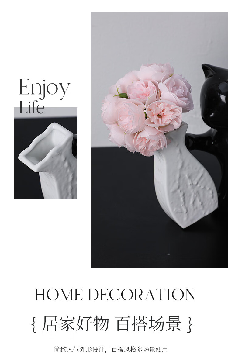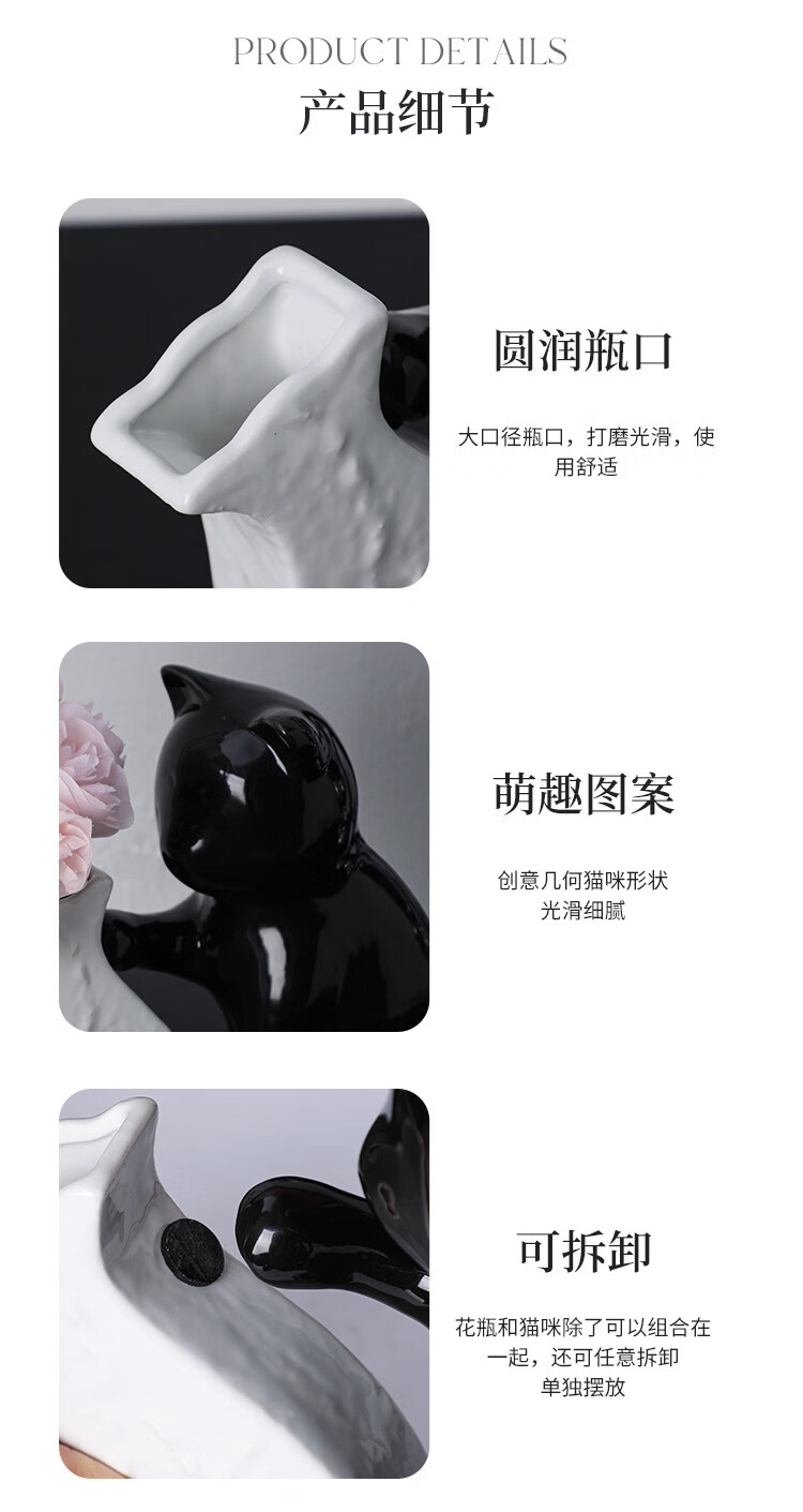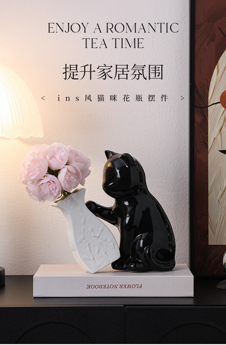 OYKTN创意可爱猫咪插花陶瓷花瓶装饰鲜花干花水培餐桌客厅玄关艺术摆件 喵趣花伴-单花瓶