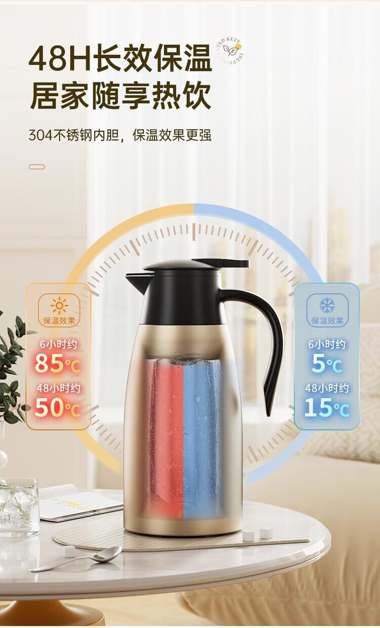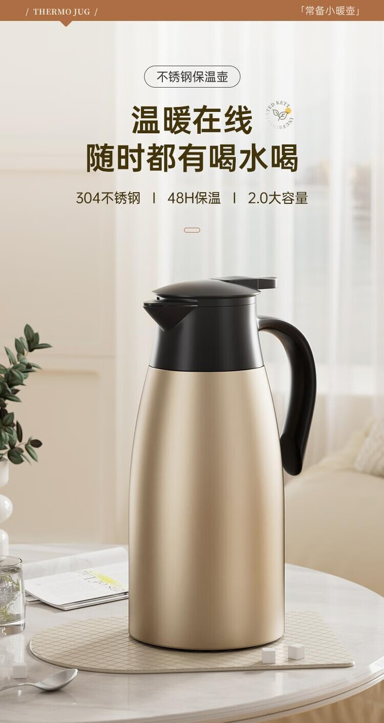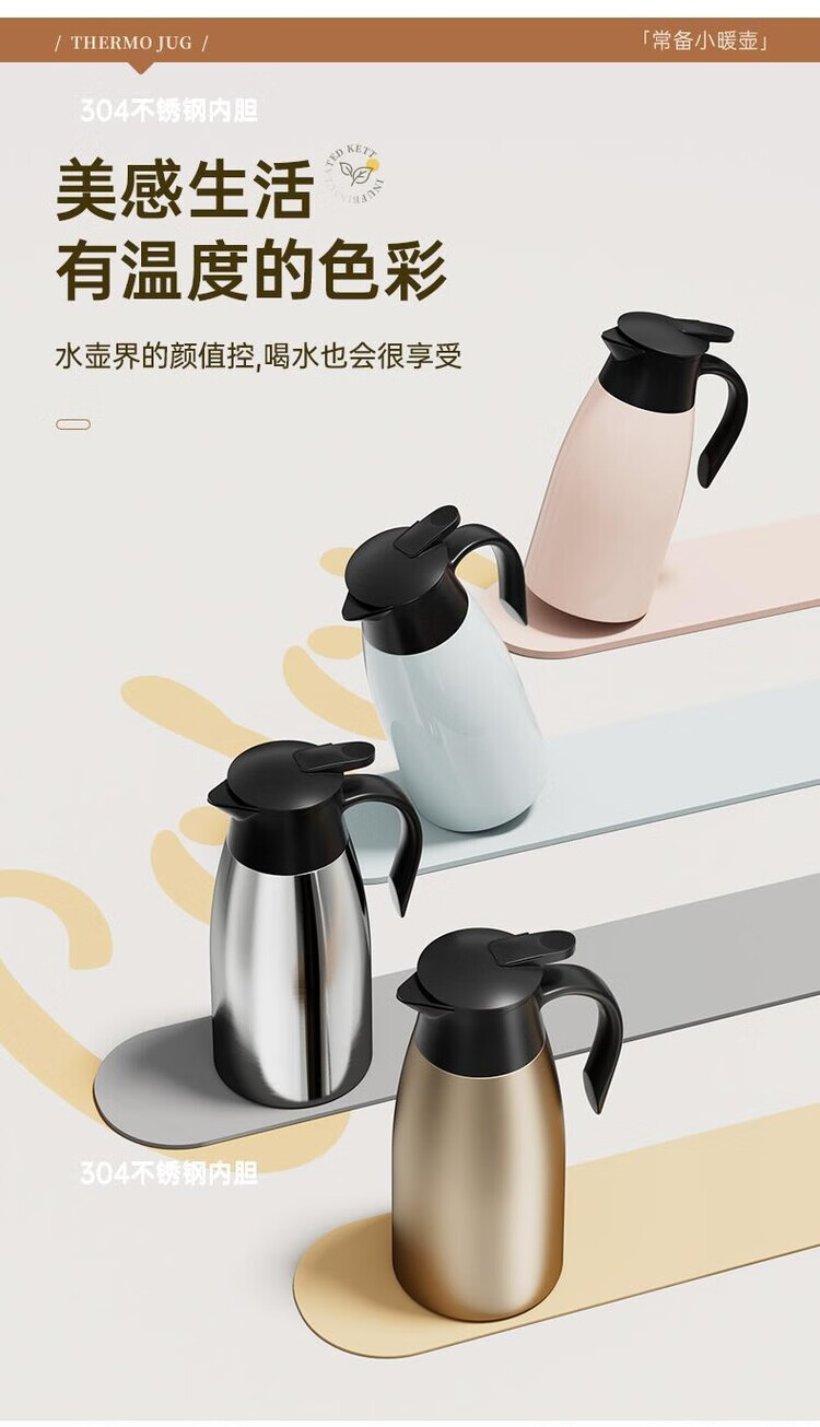 GIOIO保温壶家用316不锈钢暖水壶大容量开水保暖壶宿舍热水瓶茶壶暖瓶 1.5L钢本色【不保温】