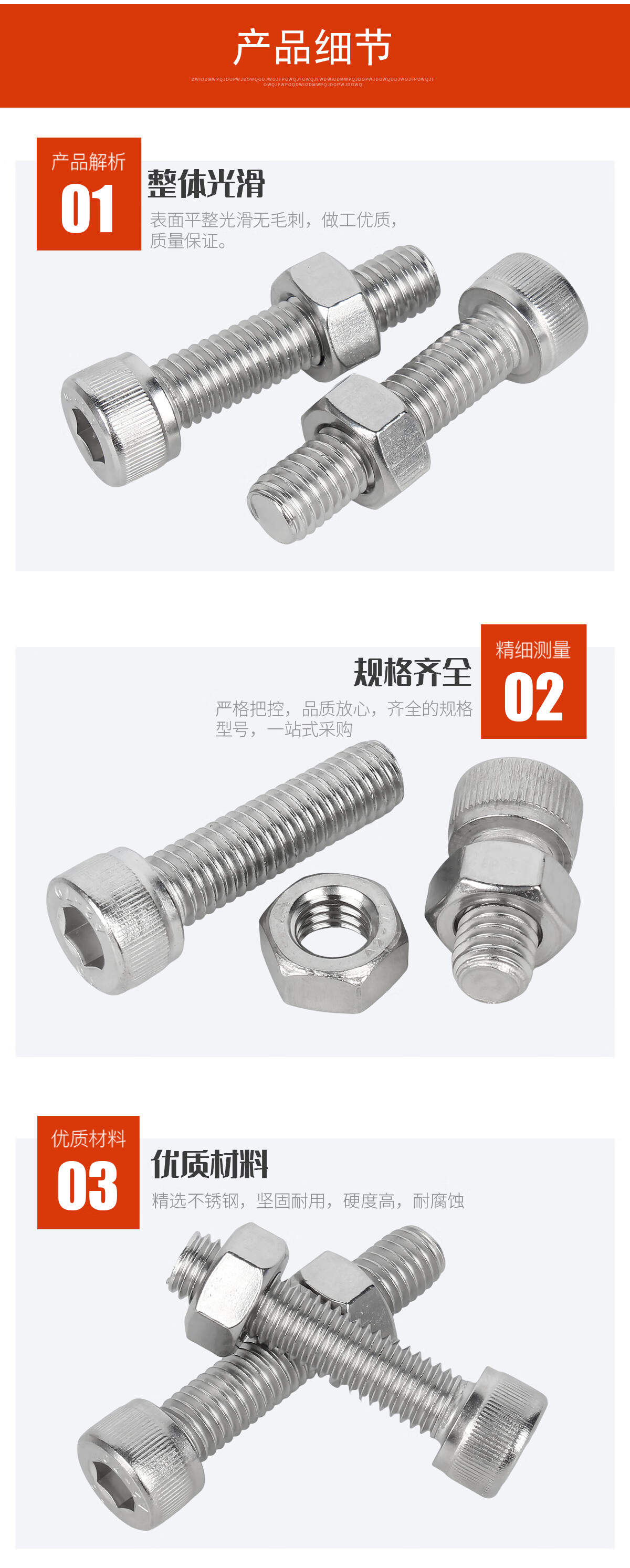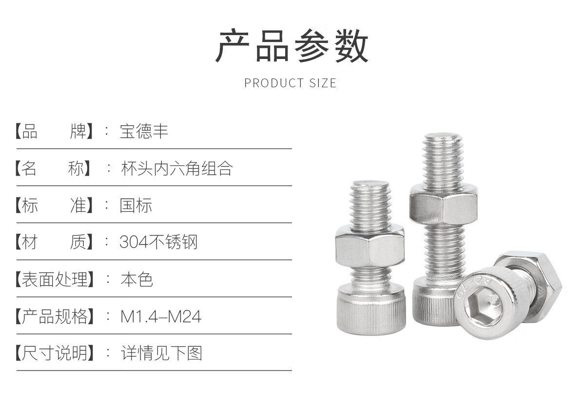 宝德丰304不锈钢内六角螺丝螺母套装大全杯头螺栓螺帽组合M4M5M6M10-M24 M4x4[50套]