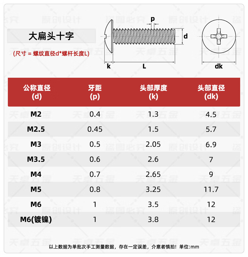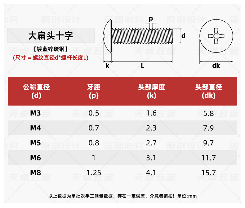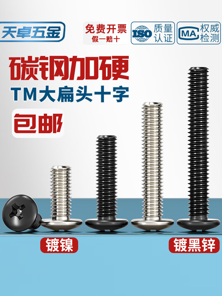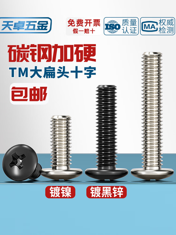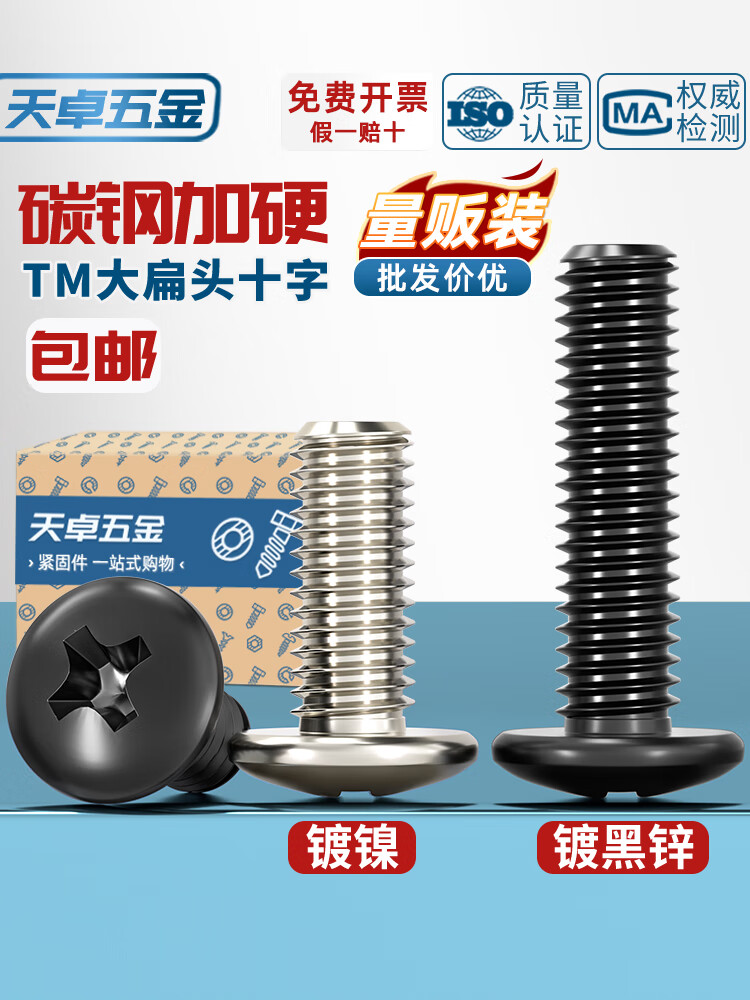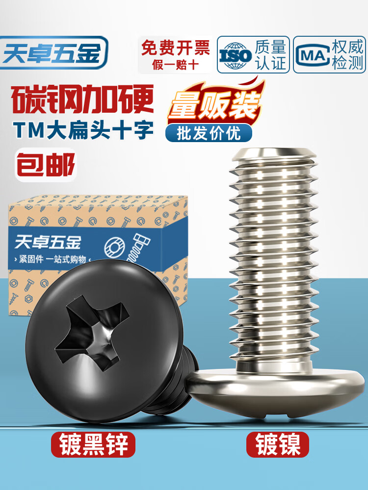 天卓五金TM 加硬黑色/镀镍十字大扁头螺丝钉大伞头蘑菇头机丝机牙圆头螺栓 ---以下为碳钢镀镍---
