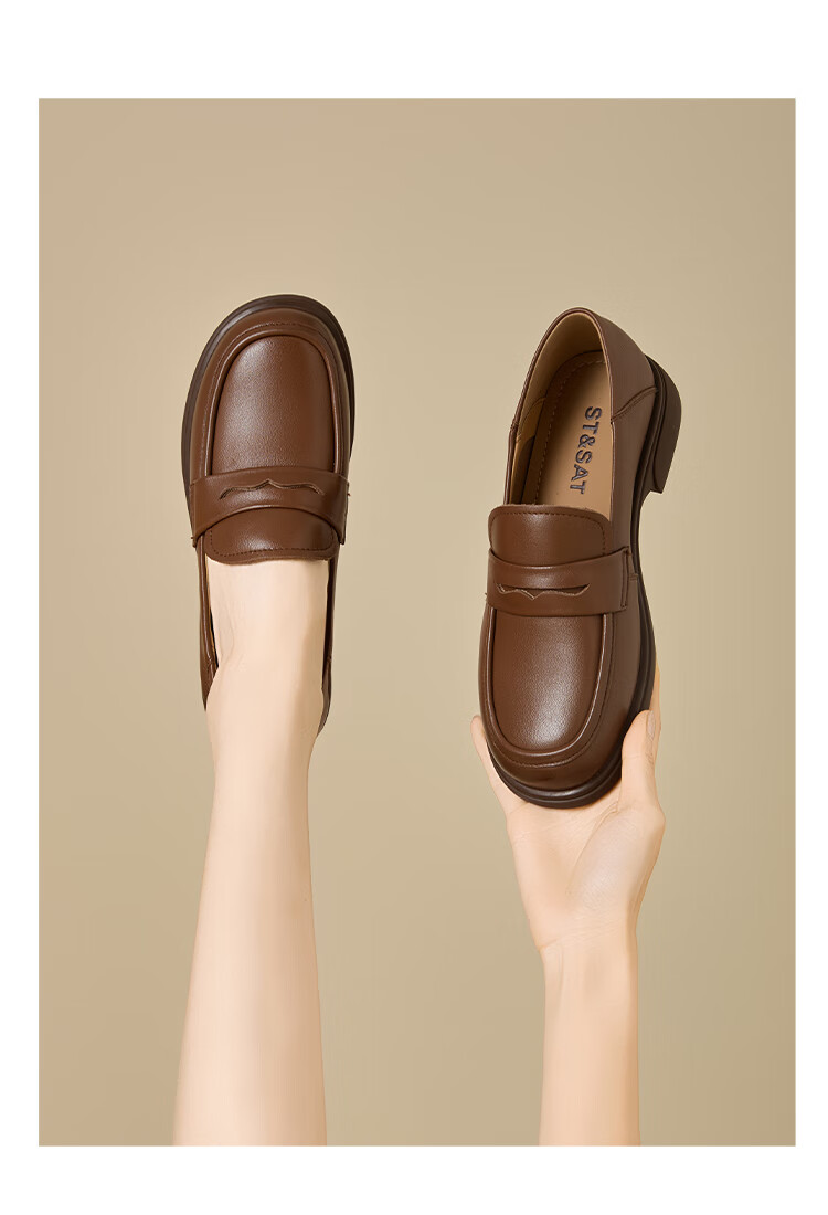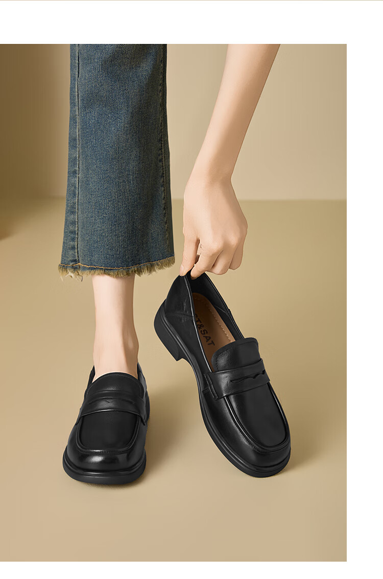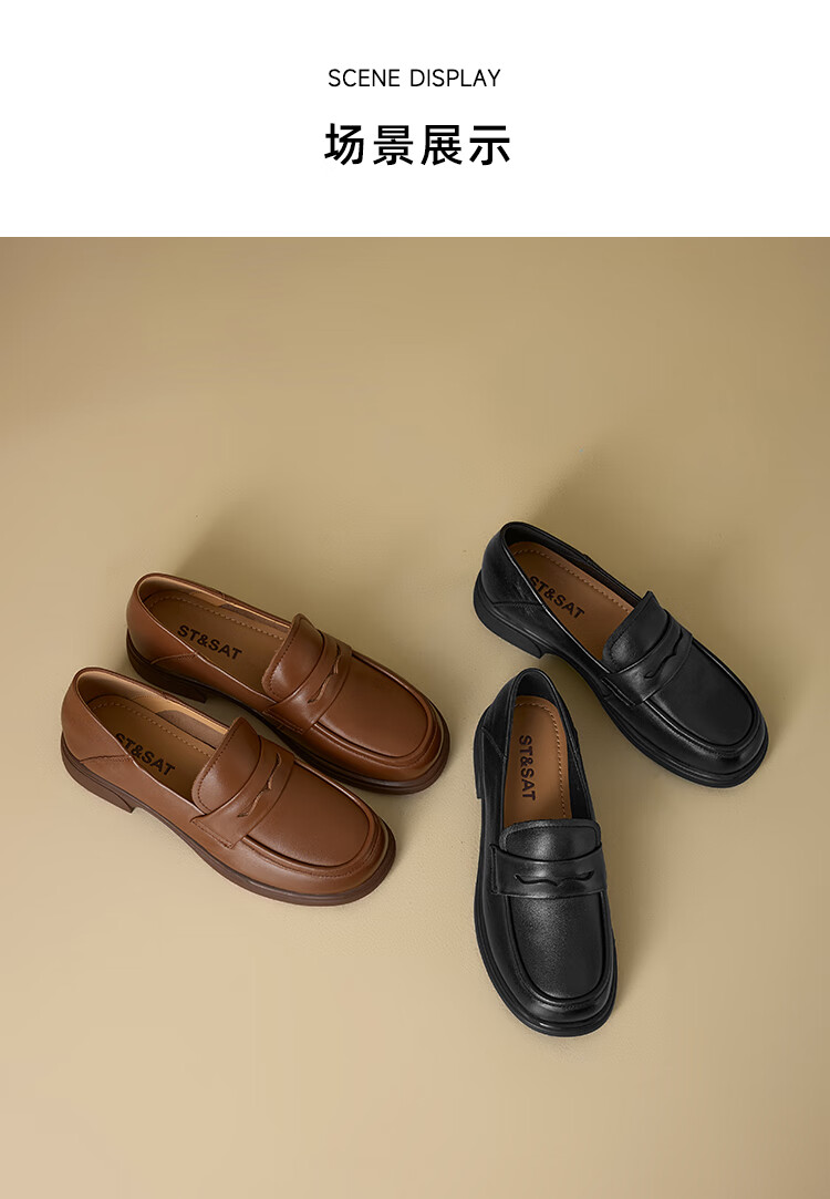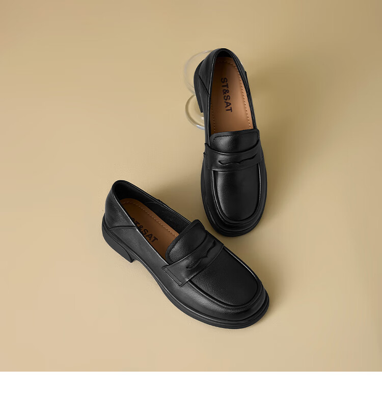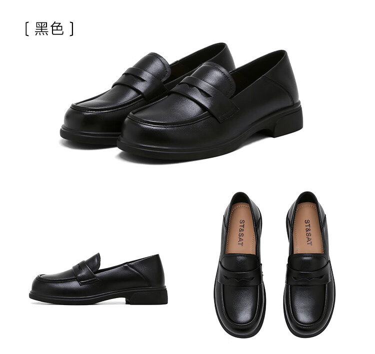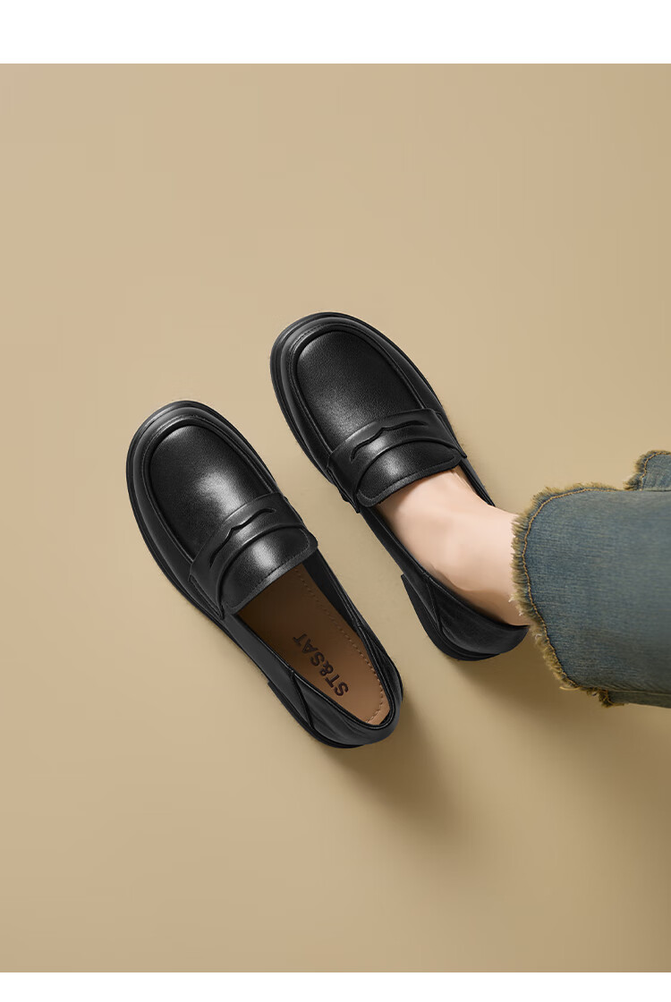 星期六(St&Sat)增高乐福鞋女爆款厚底2025新款一脚蹬小皮鞋 黑色 38