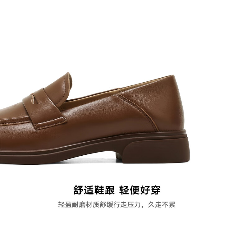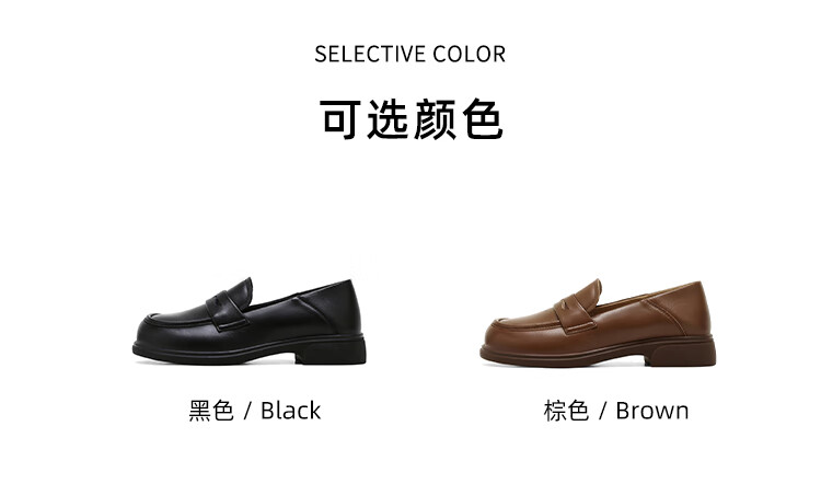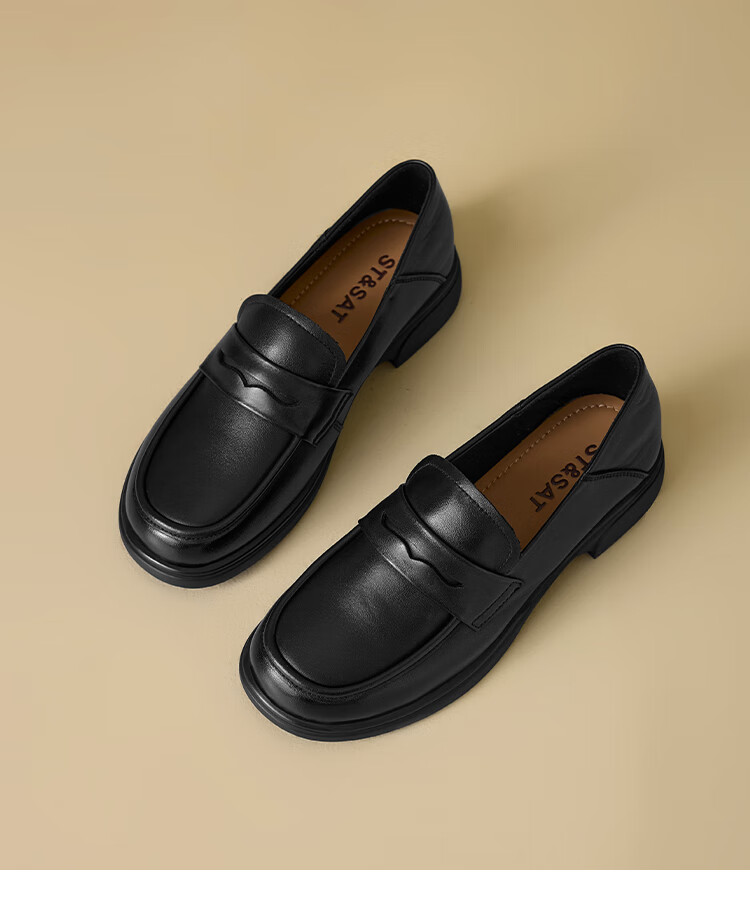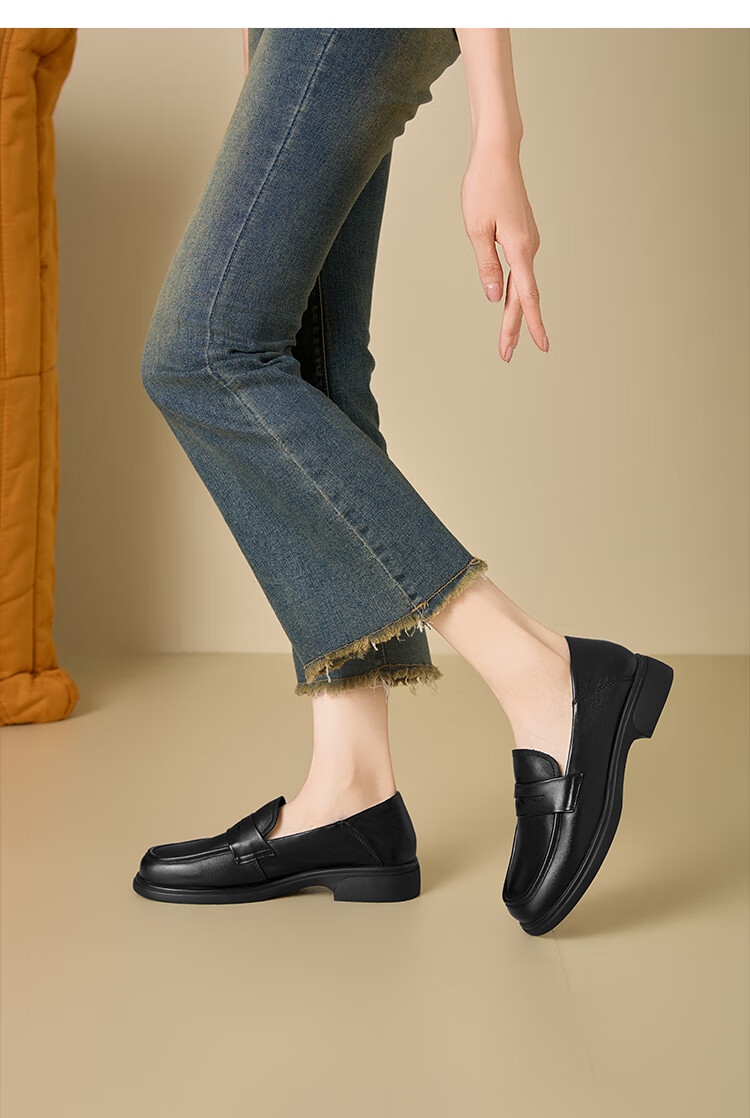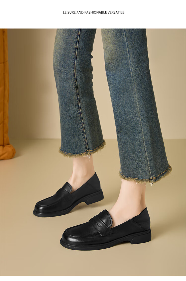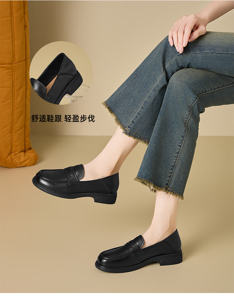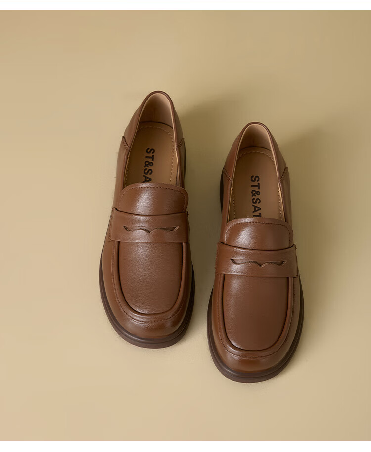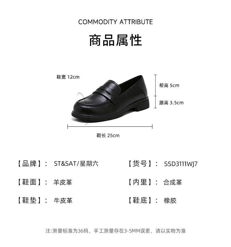 星期六(St&Sat)增高乐福鞋女爆款厚底2025新款一脚蹬小皮鞋 黑色 38