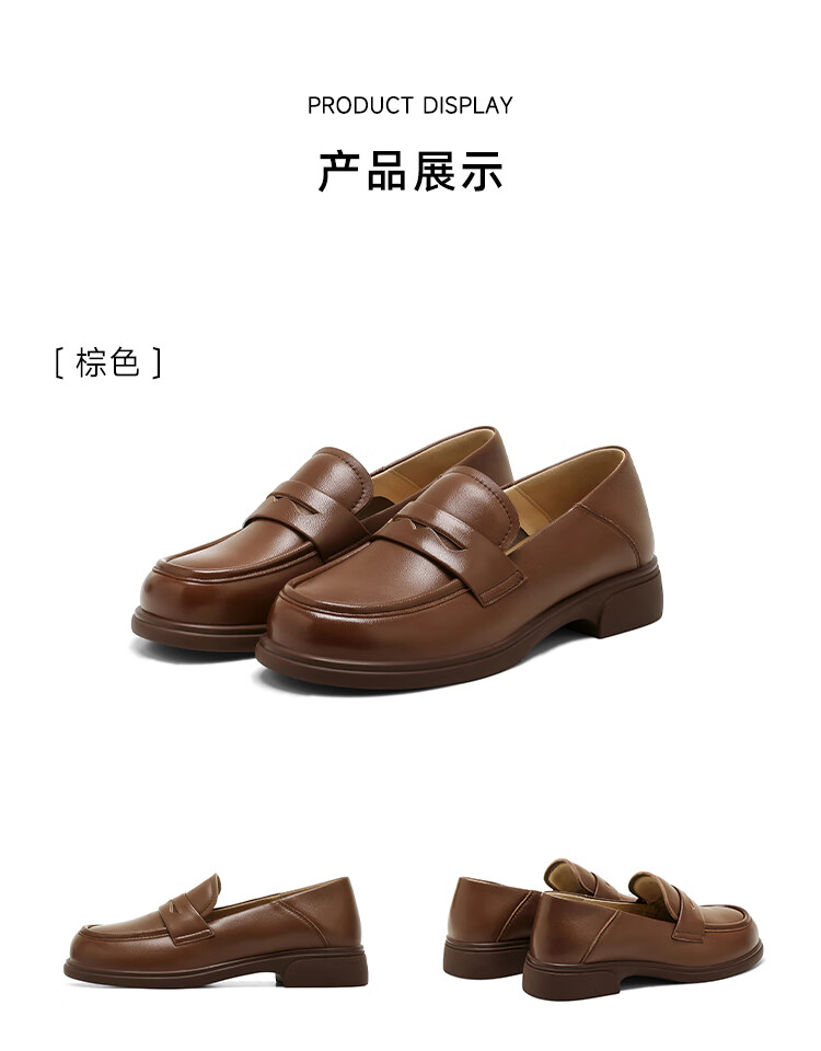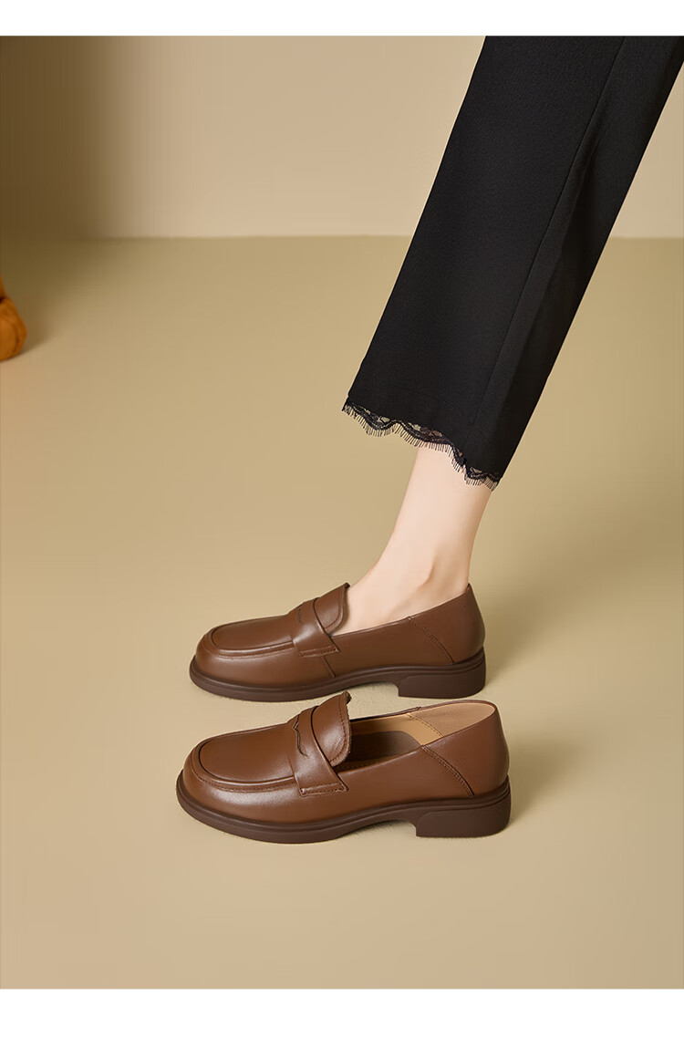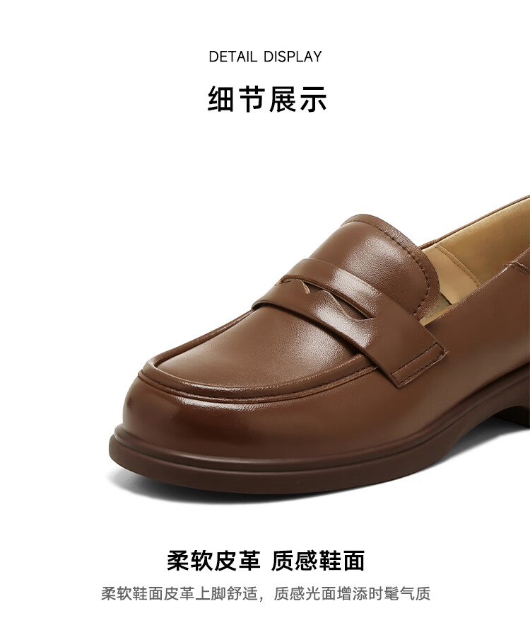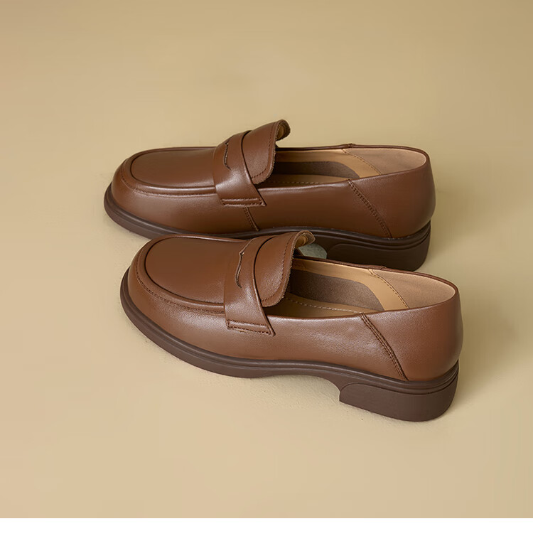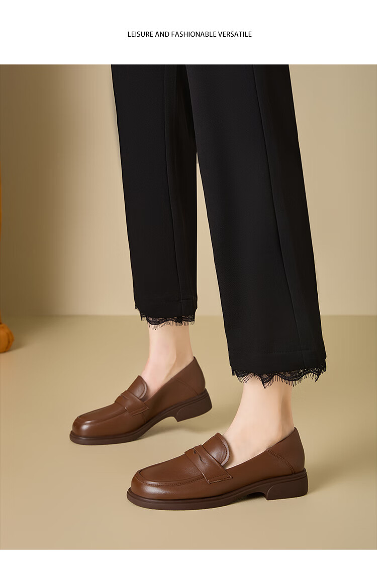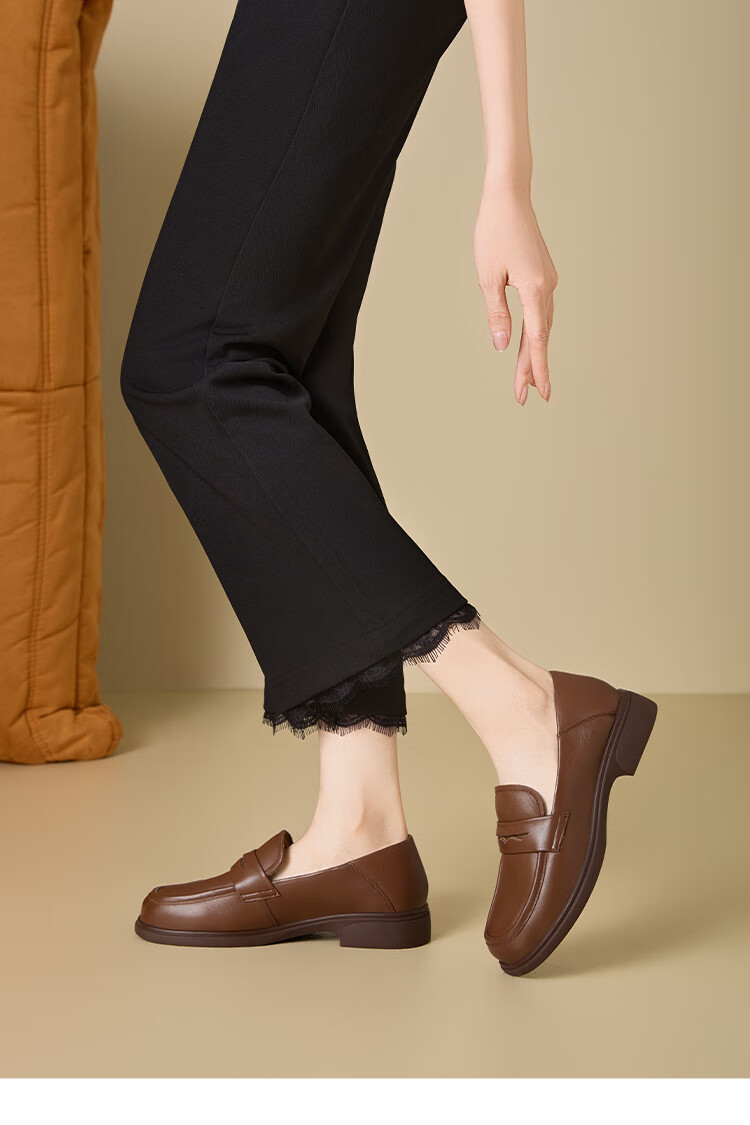 星期六(St&Sat)增高乐福鞋女爆款厚底2025新款一脚蹬小皮鞋 黑色 38