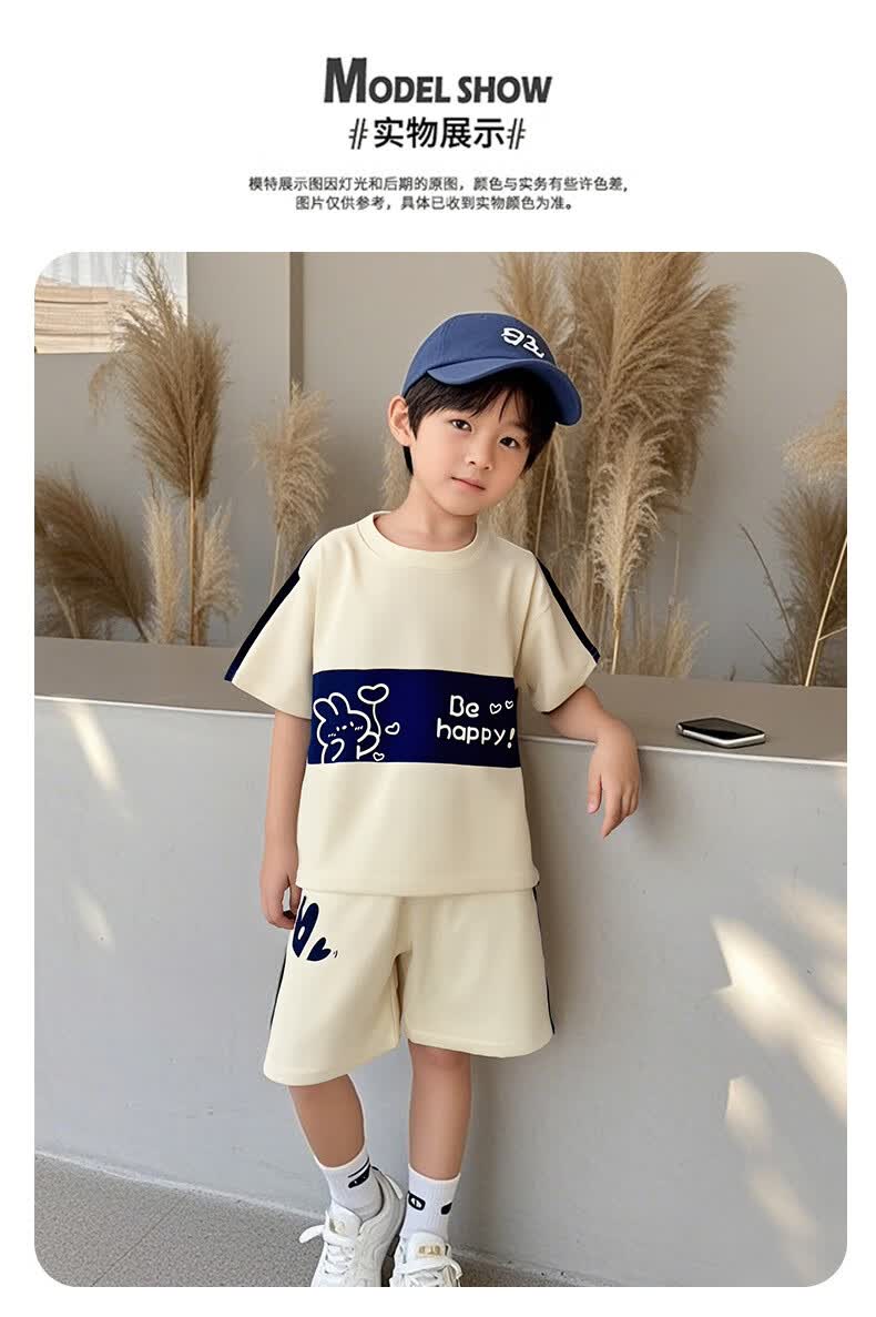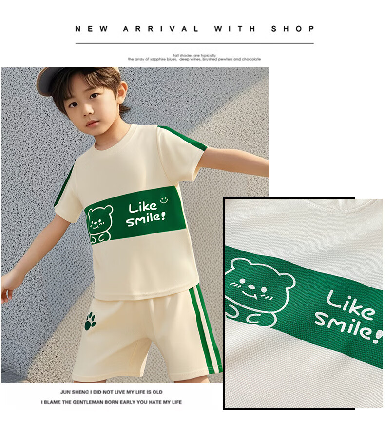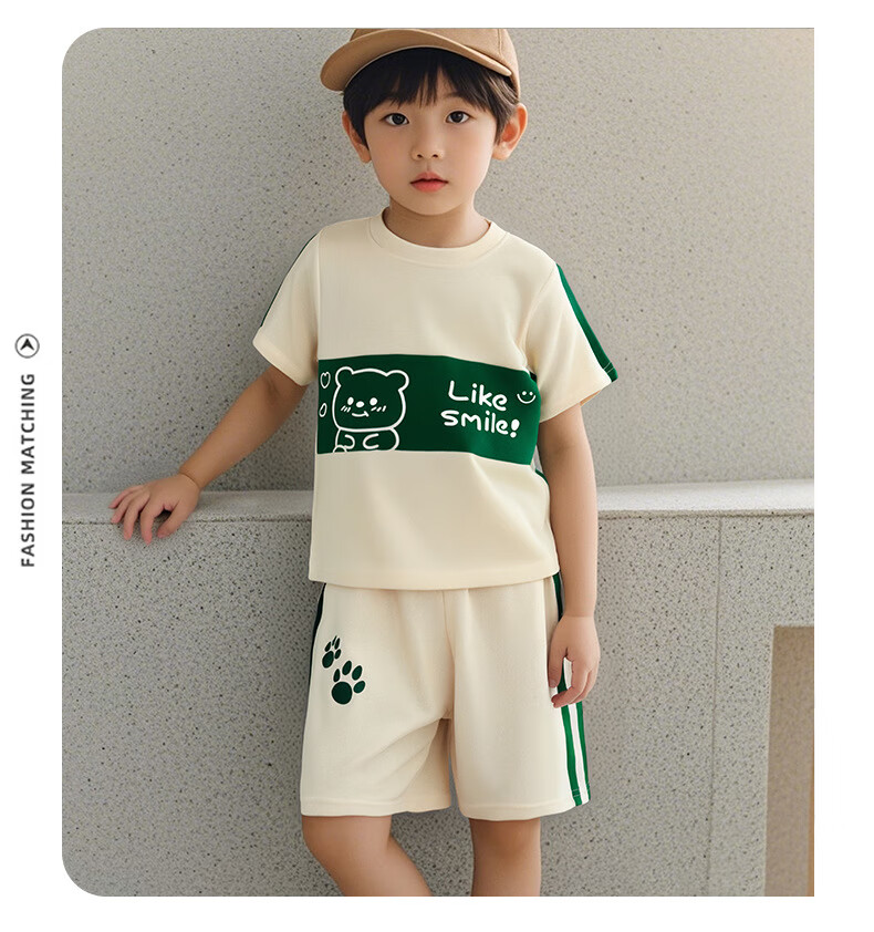 贝婴初(BEIYINGCHU)儿童短袖套装男女童T恤夏季宝宝婴儿衣服韩版夏装两件套童装 绿色小熊 150