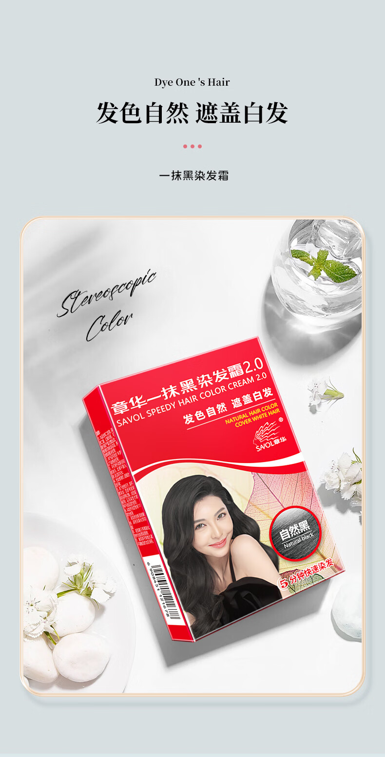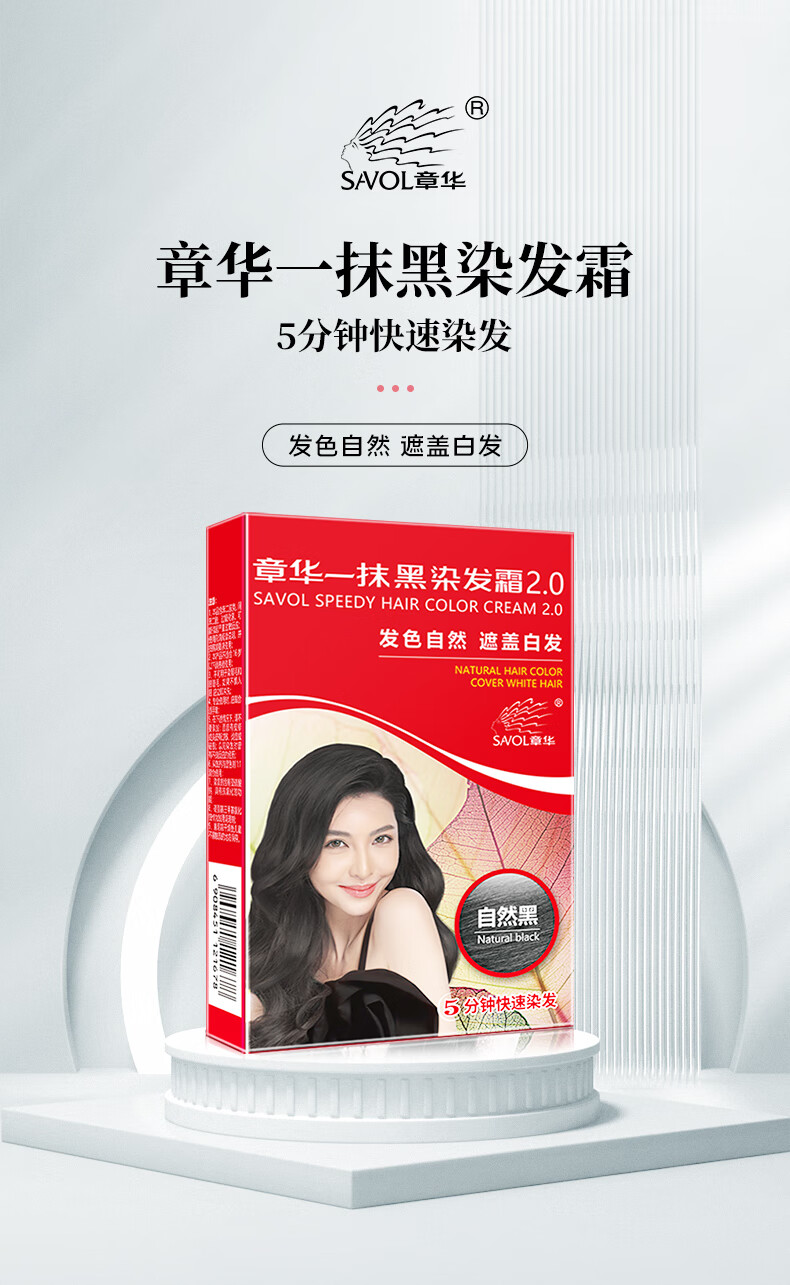 章华(SAVOL)一抹黑染发膏自然黑色45ml*5盒装(遮白盖白发染发剂快速染发霜)