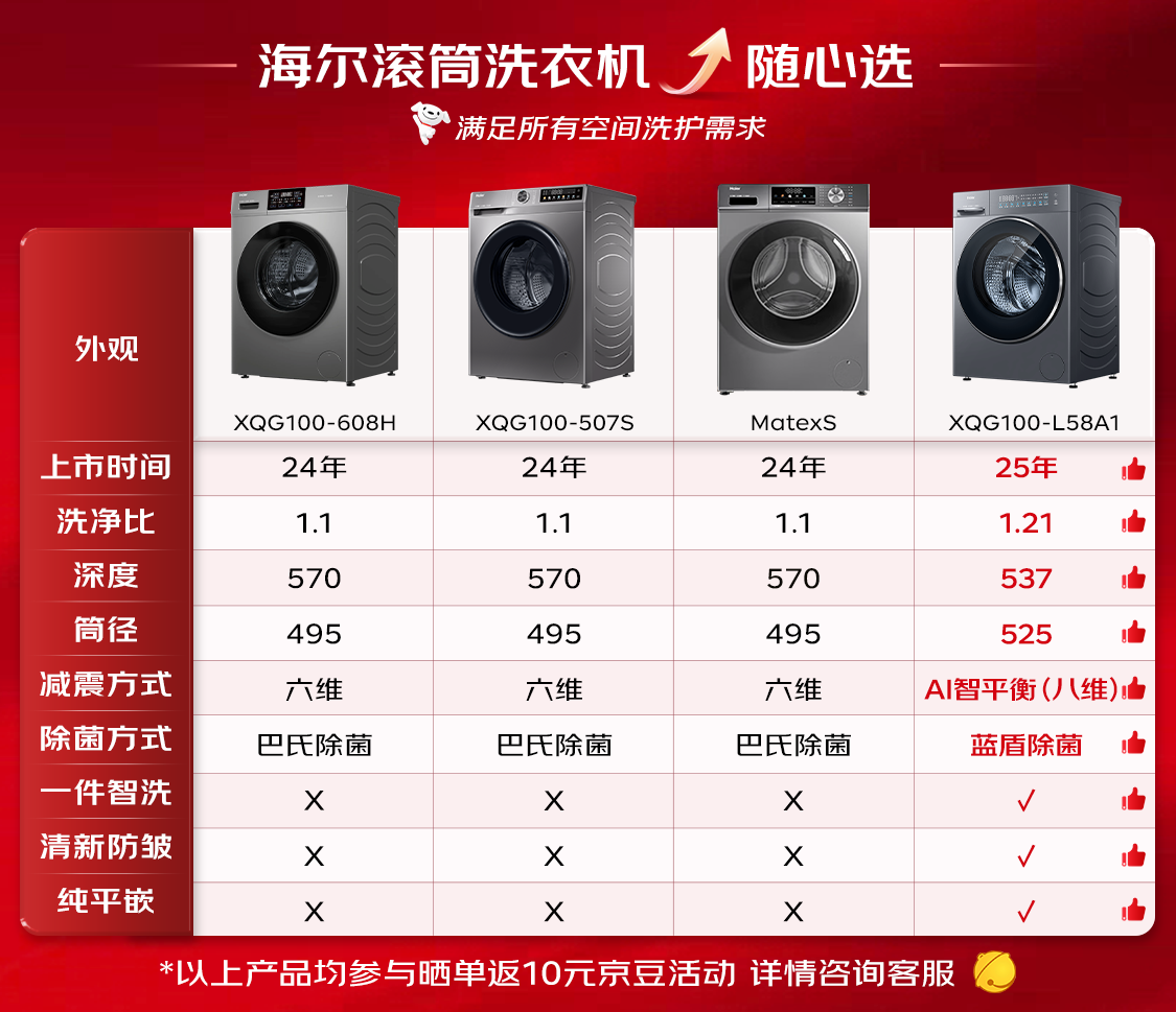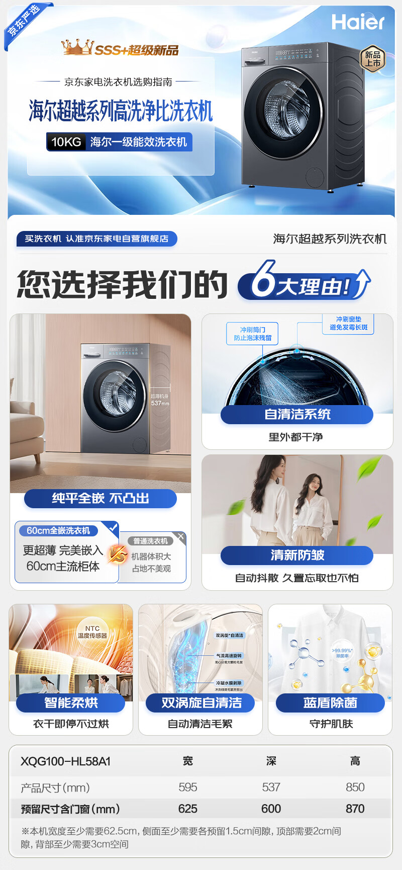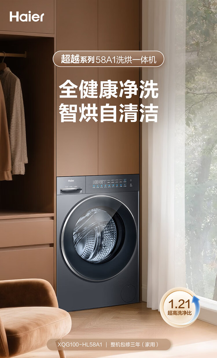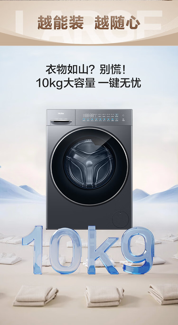 海尔(Haier)滚筒洗衣机全自动10KG 25年新品丨带烘干+537超薄平嵌+525大筒+蓝盾除菌 商场同款XQG100-HL58A1