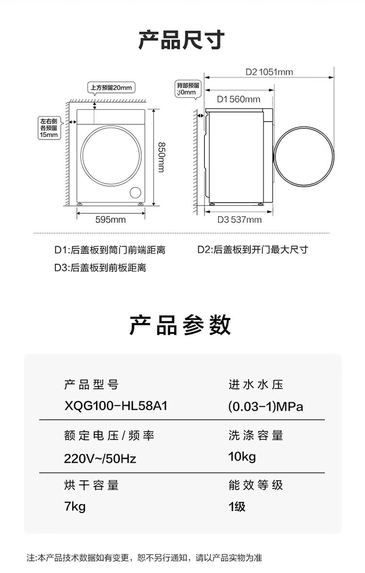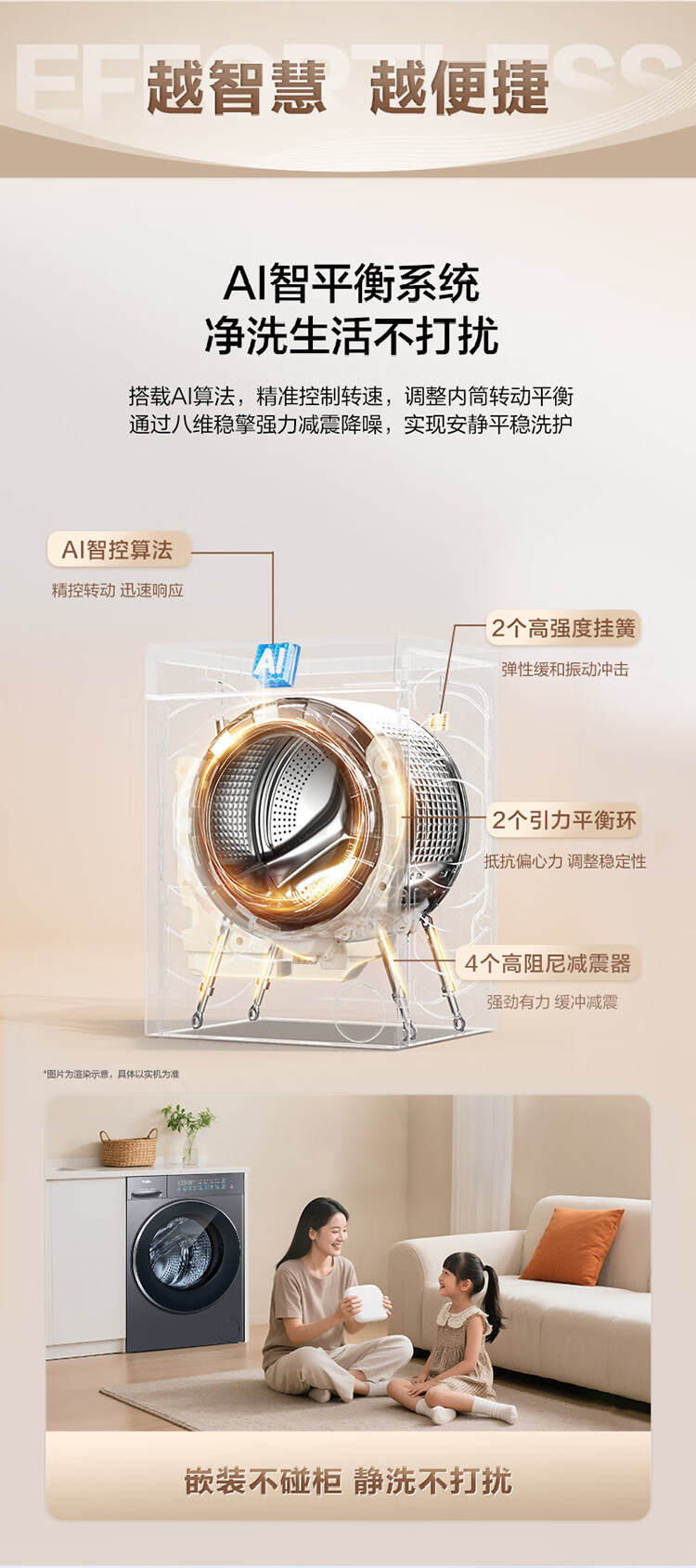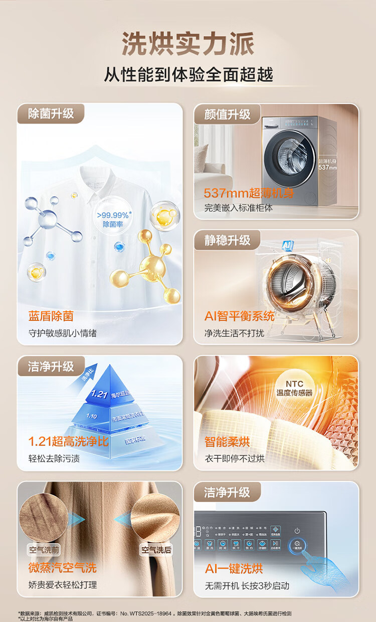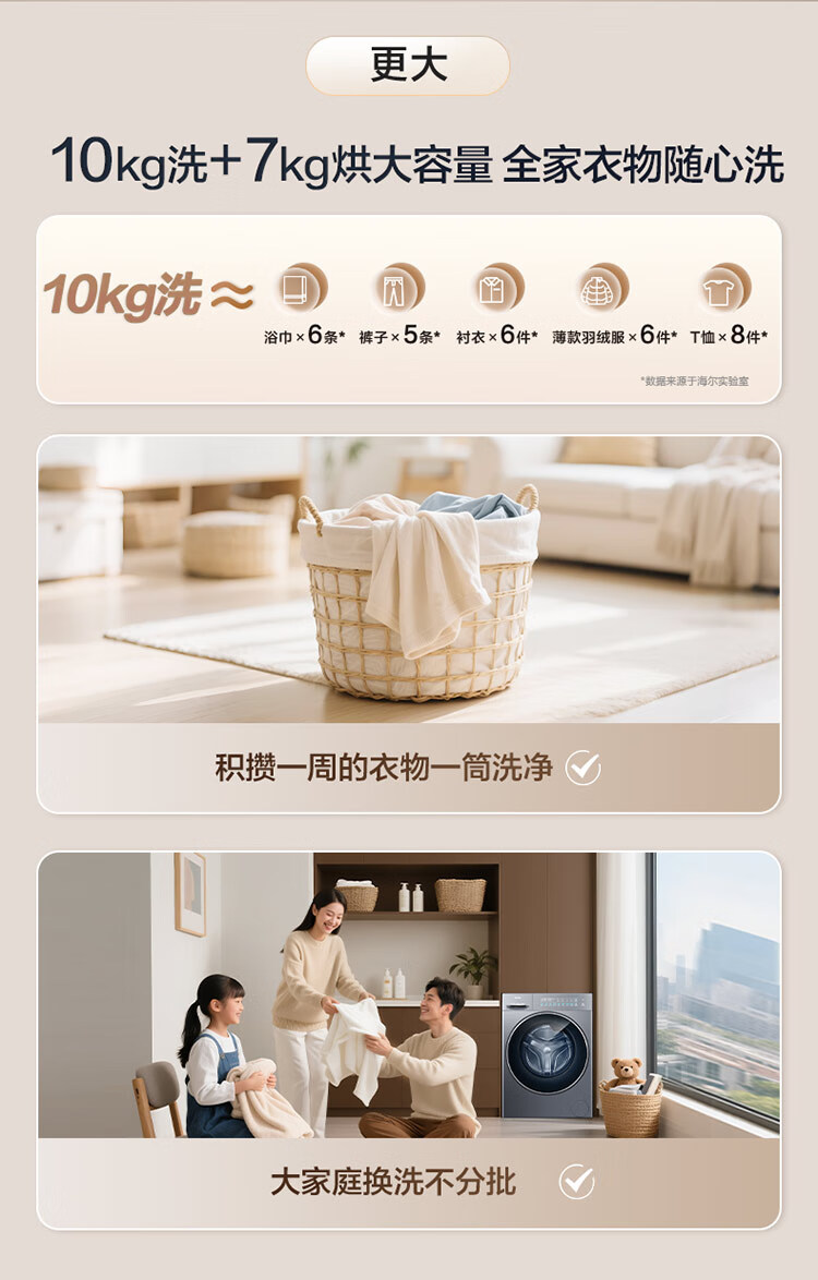 海尔(Haier)滚筒洗衣机全自动10KG 25年新品丨带烘干+537超薄平嵌+525大筒+蓝盾除菌 商场同款XQG100-HL58A1