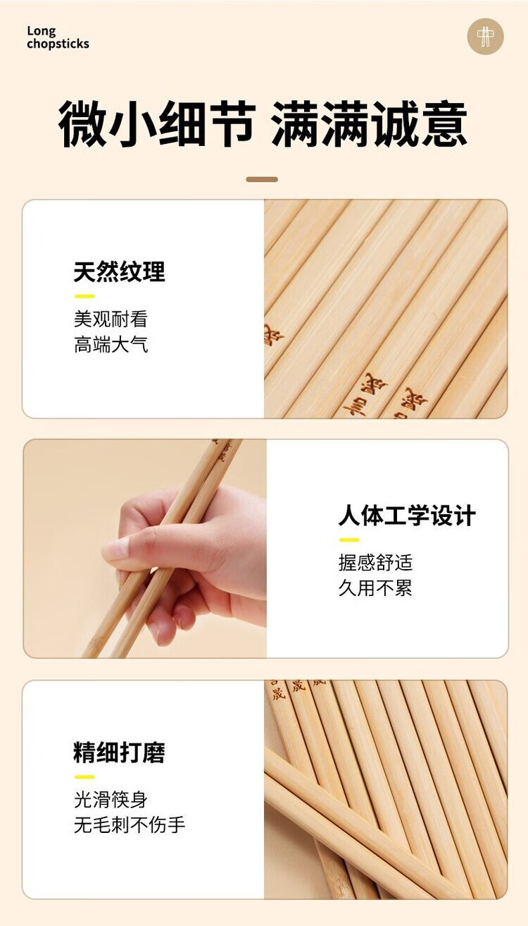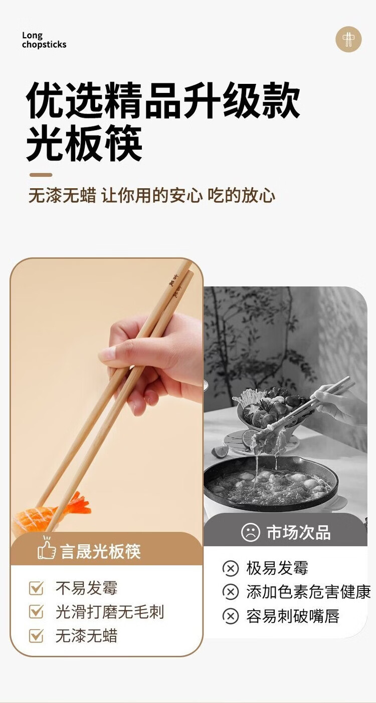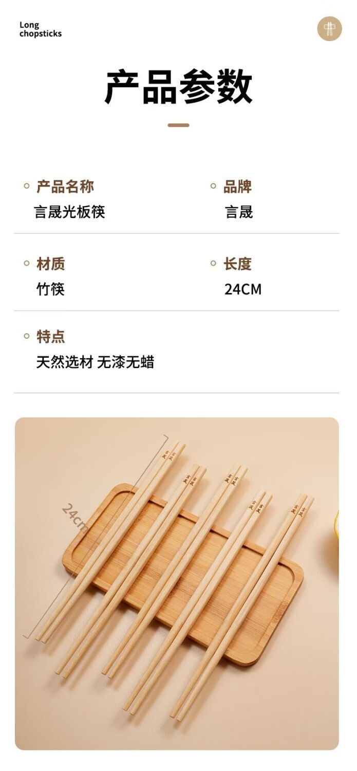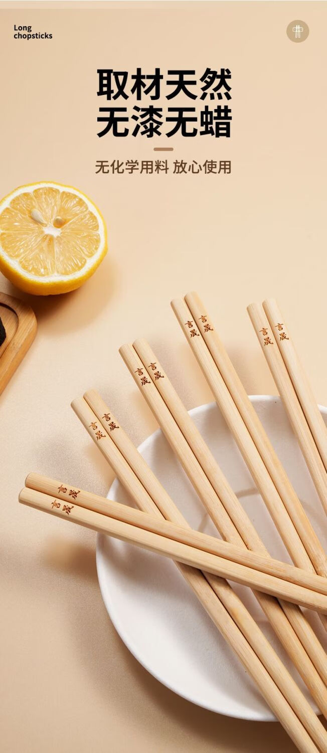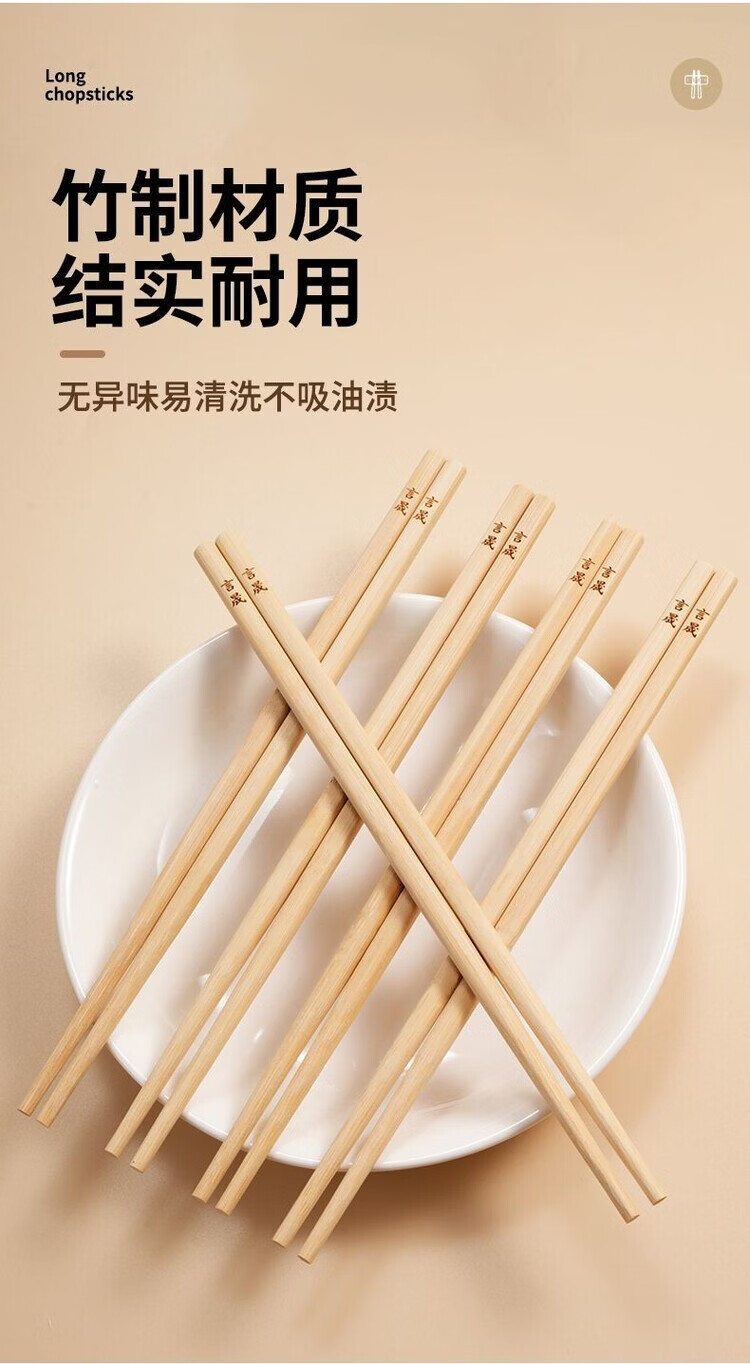 简漾天然楠竹筷子防霉防滑家用高端无漆无蜡耐高温无毛刺中式竹筷 【精选天然楠竹筷】高温碳化工艺 【10双】