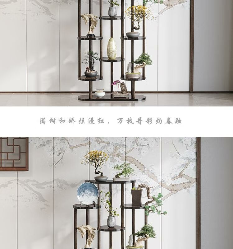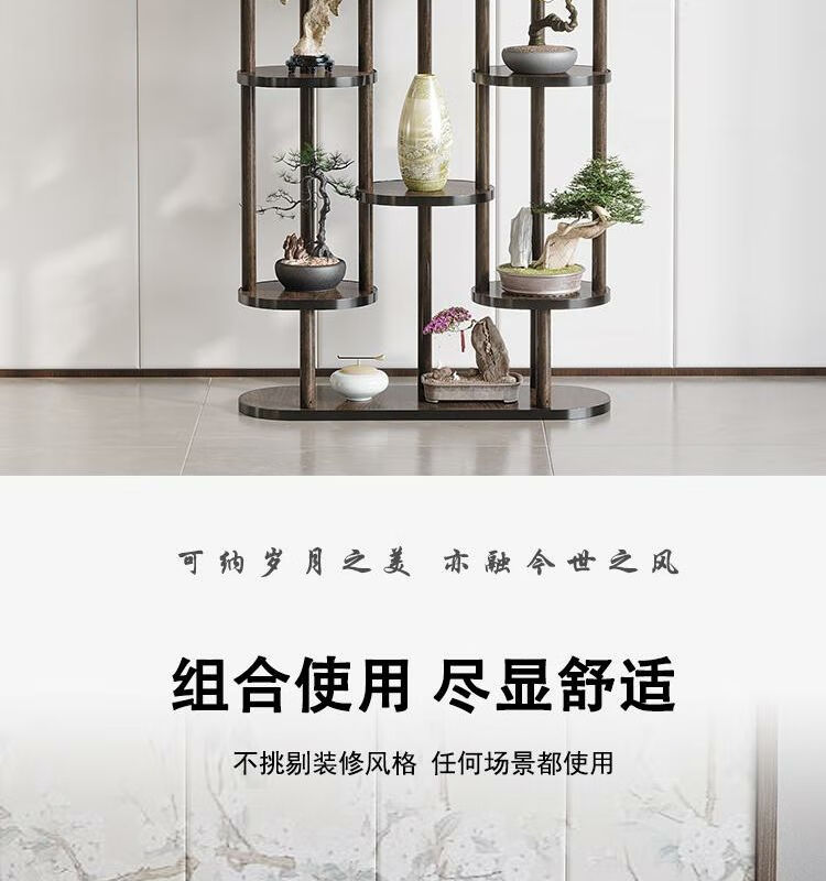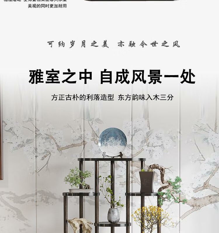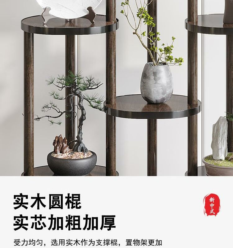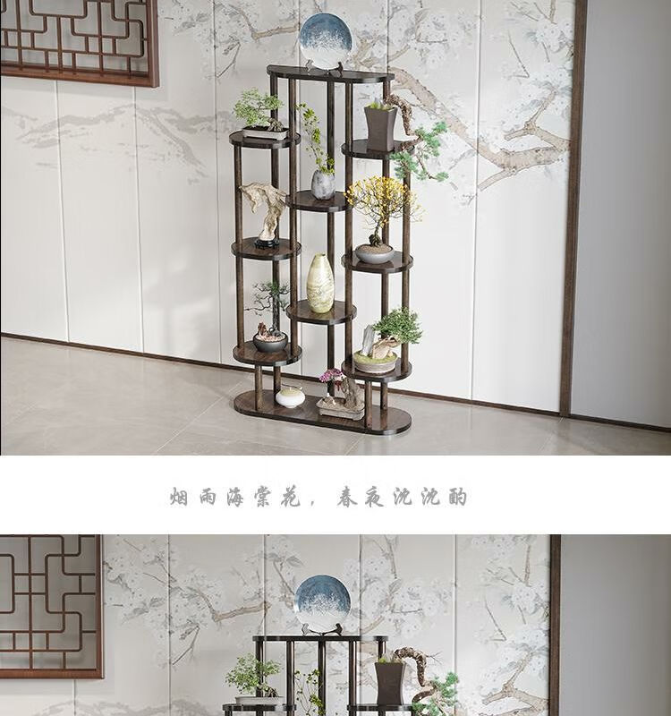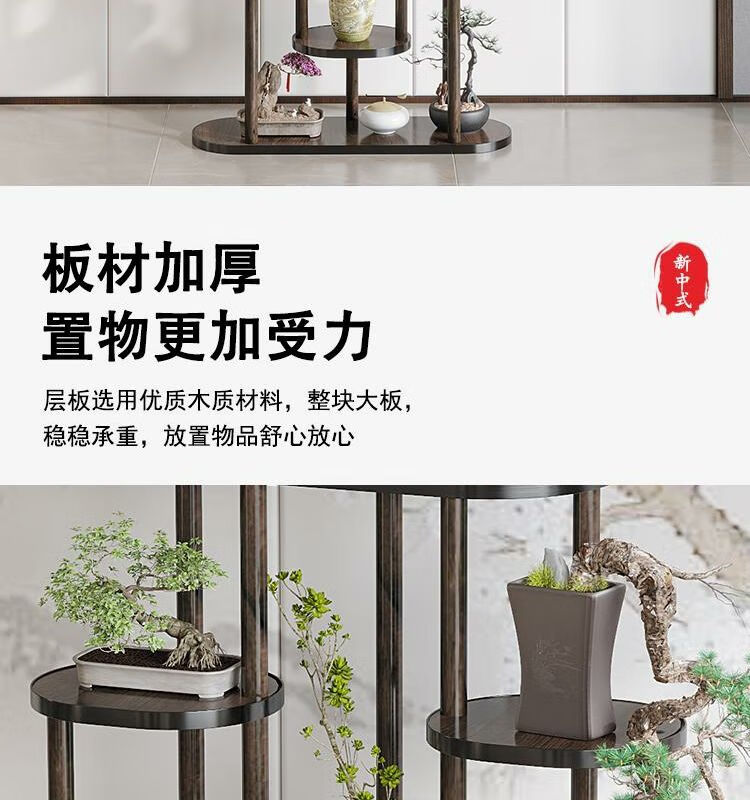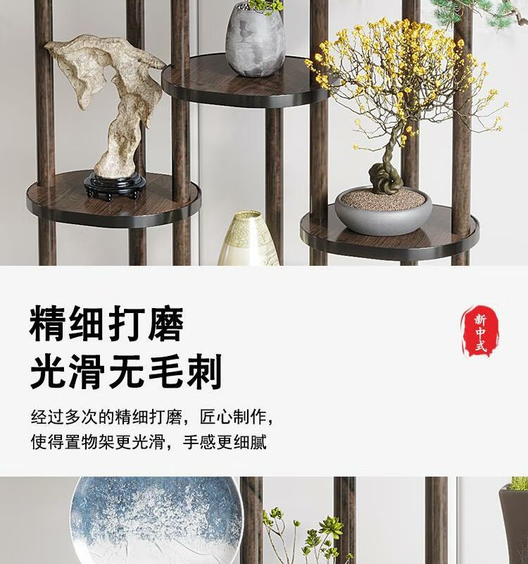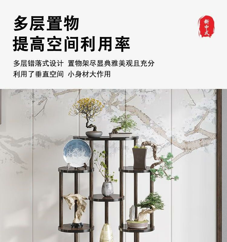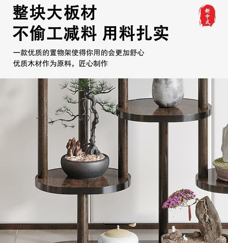 弘星隆新中式博古架简约现代茶架展示架茶室置物架盆栽放置架客厅花架子 四层黑胡桃色