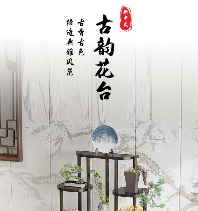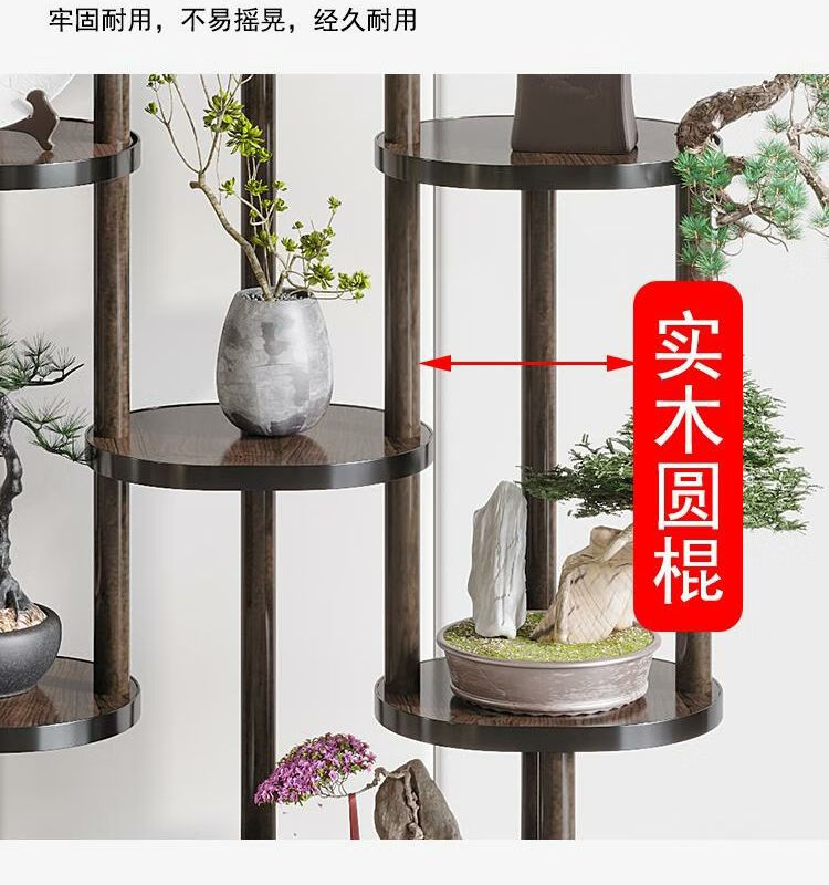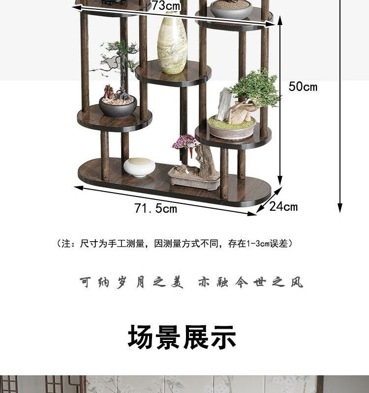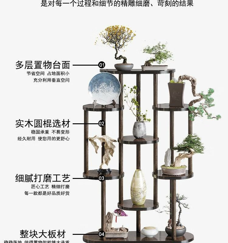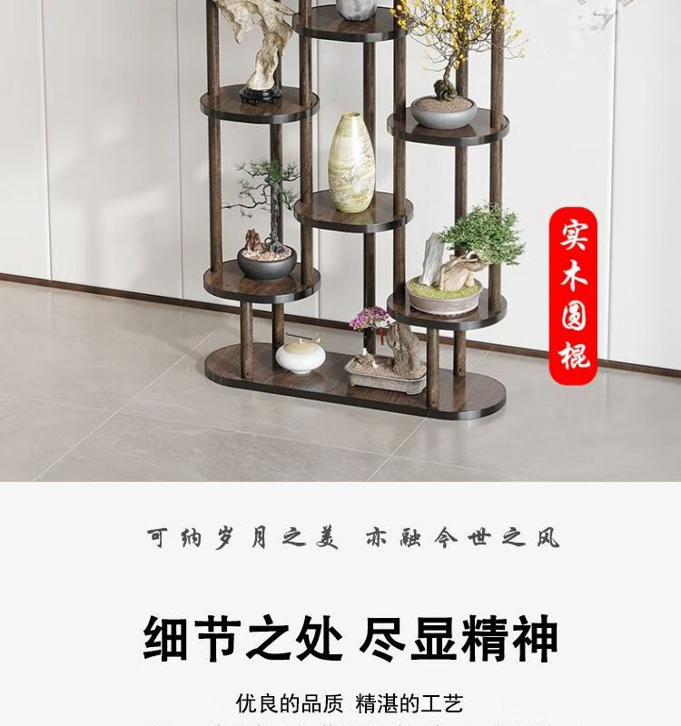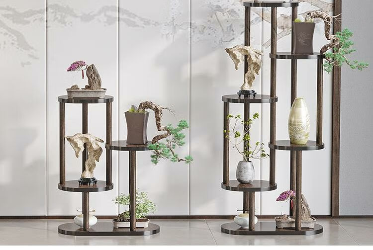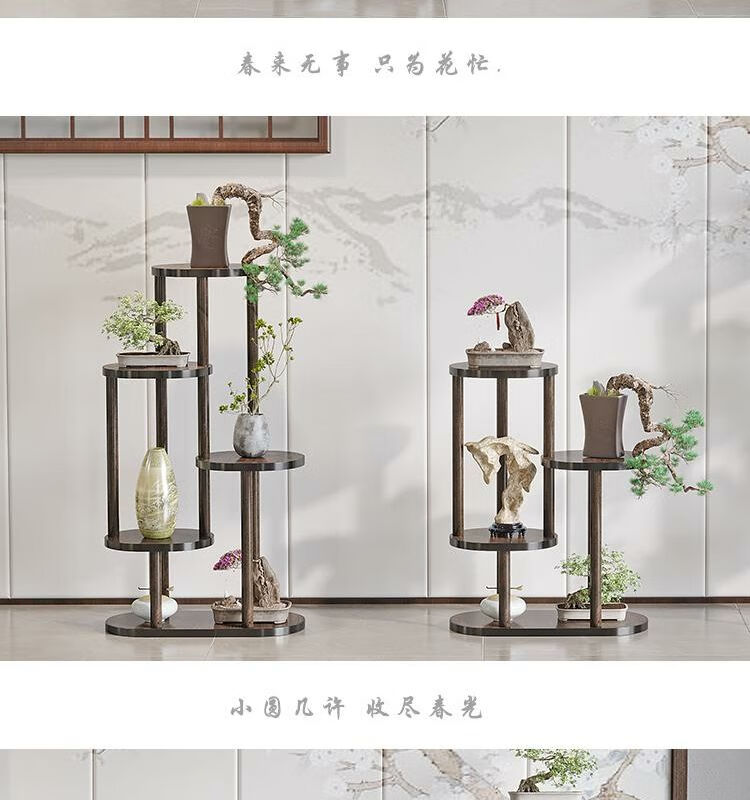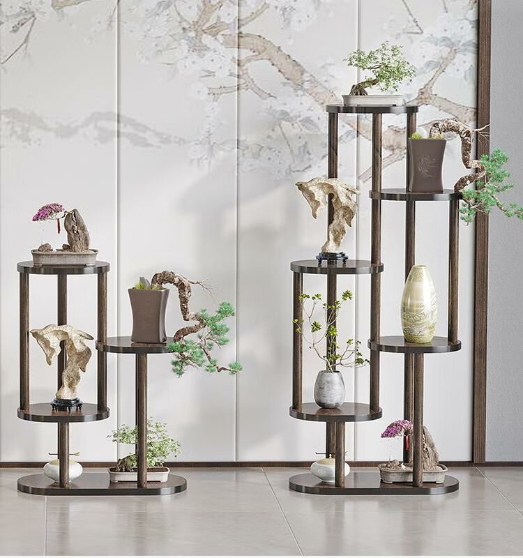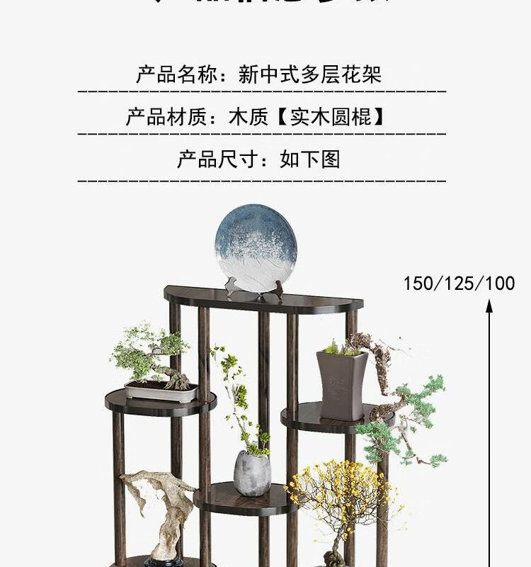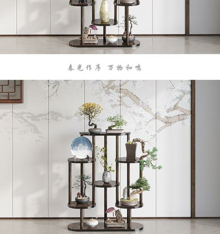 弘星隆新中式博古架简约现代茶架展示架茶室置物架盆栽放置架客厅花架子 四层黑胡桃色