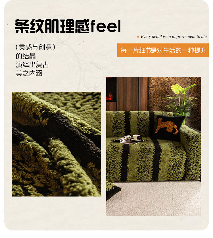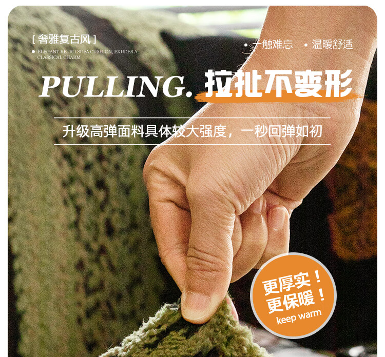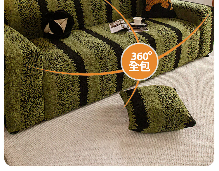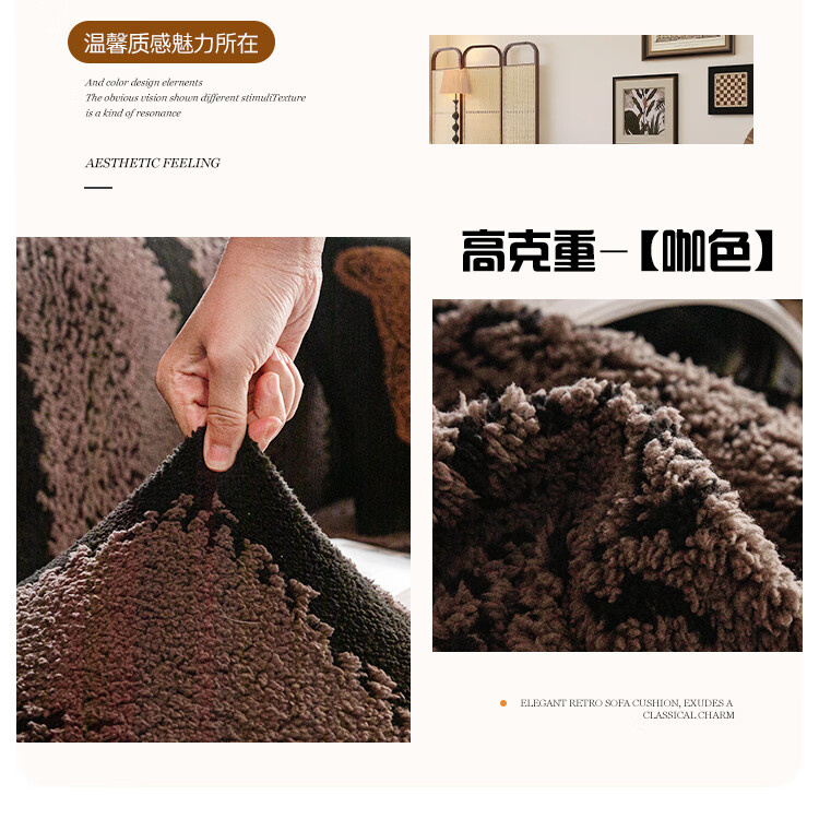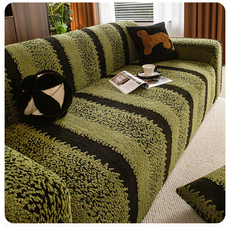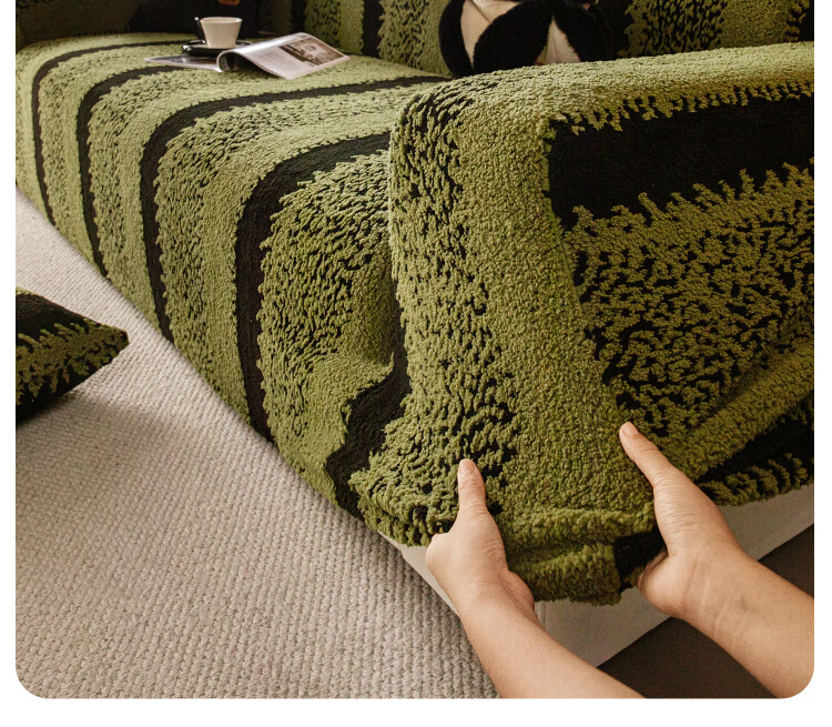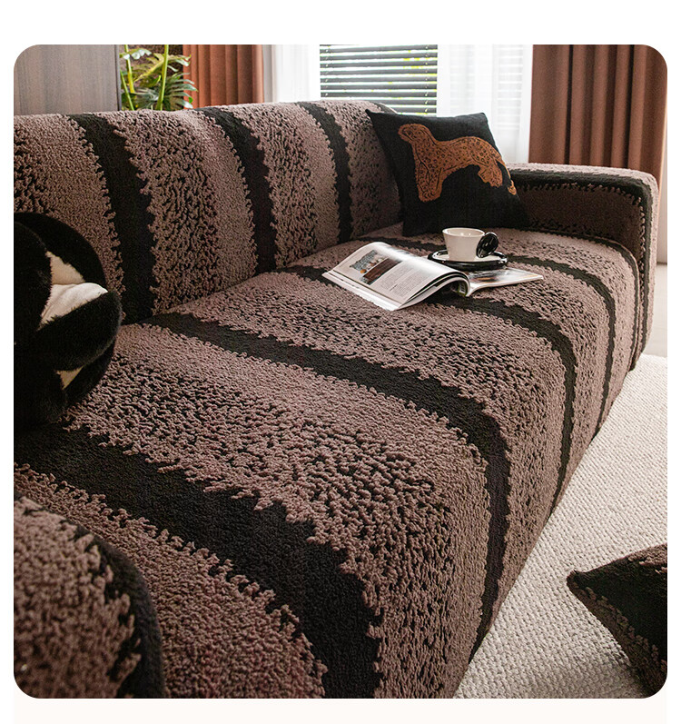 金拾美月秋冬沙发全包套加厚毛绒坐垫防猫抓弹力保护套通用型坐垫盖布巾 满杉-黑色 全包五人/适用305-360cm(送抱枕套)建议拍大一码