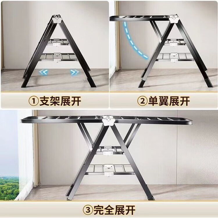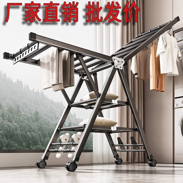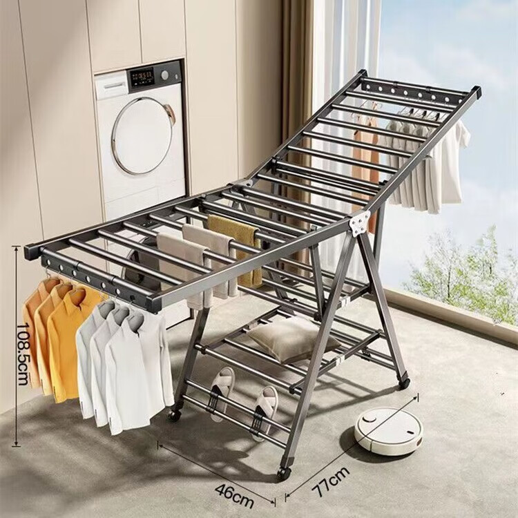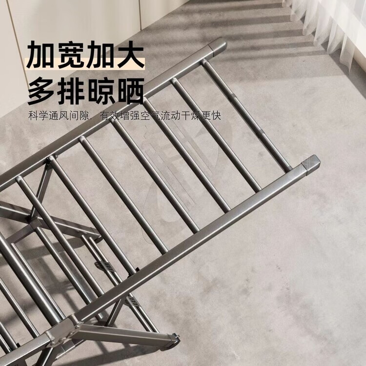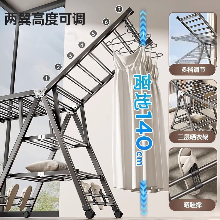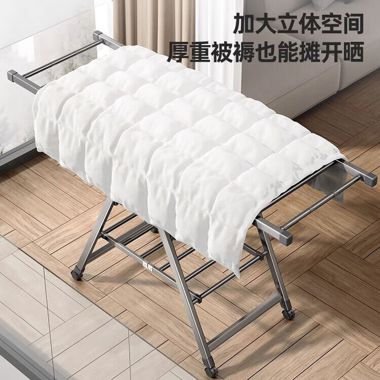 倘然之家加粗加厚阳台晾衣杆可调节室内外凉衣架晒衣架晒被神器 1.4米加粗枪灰色-二层晾晒+万向轮