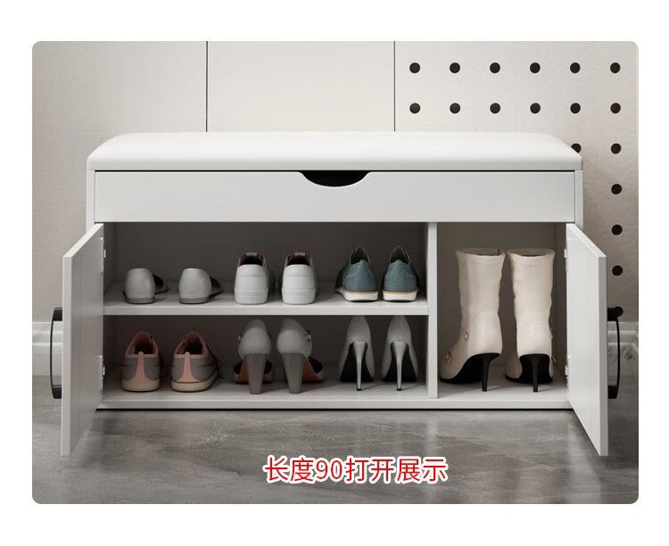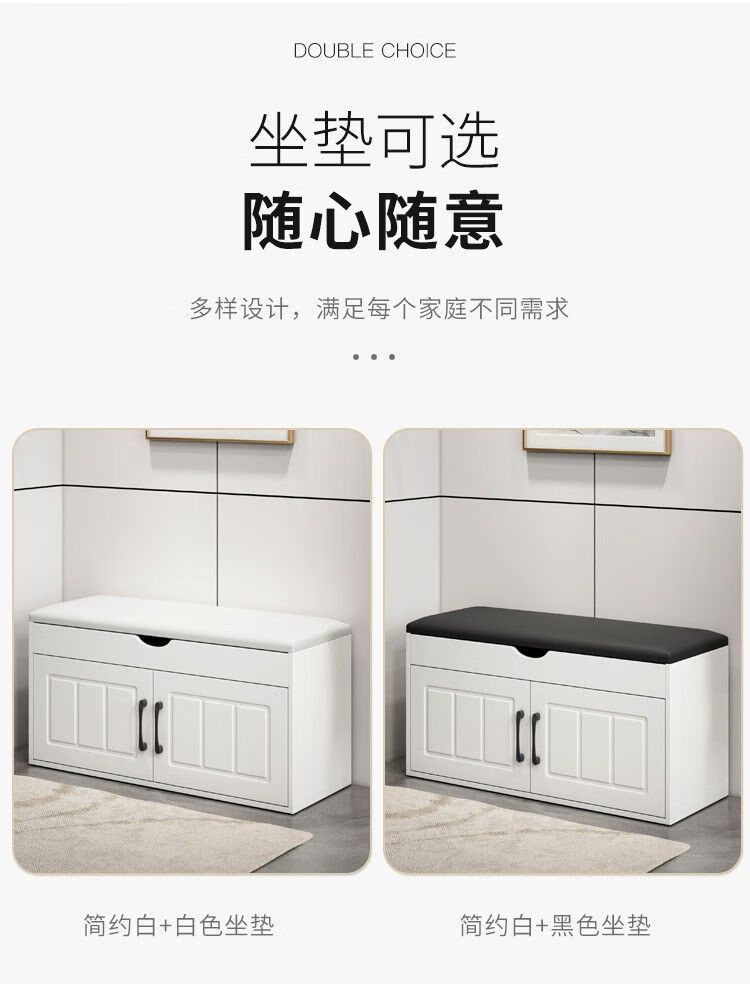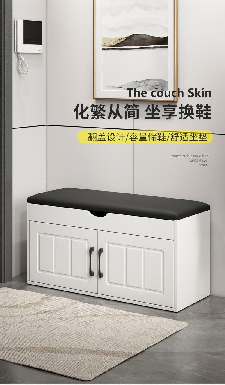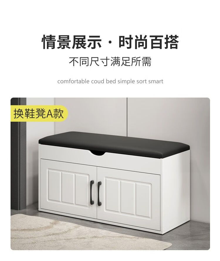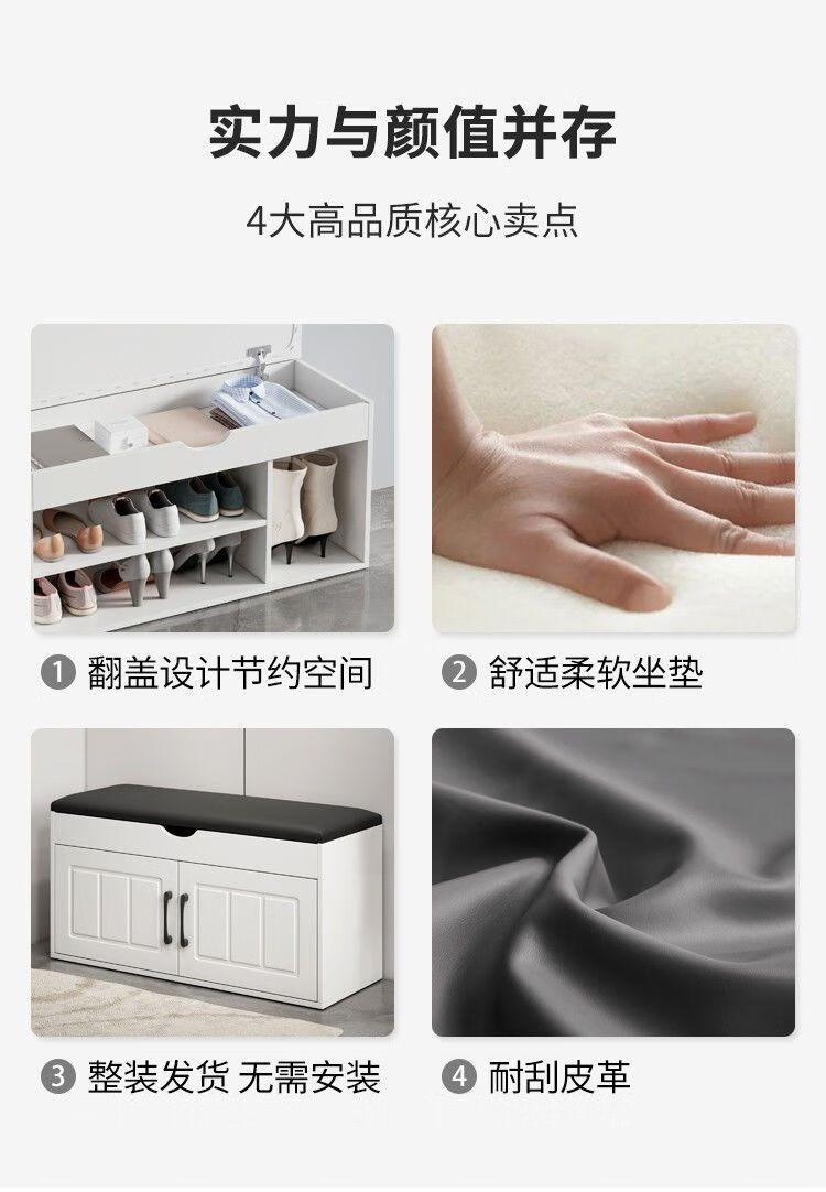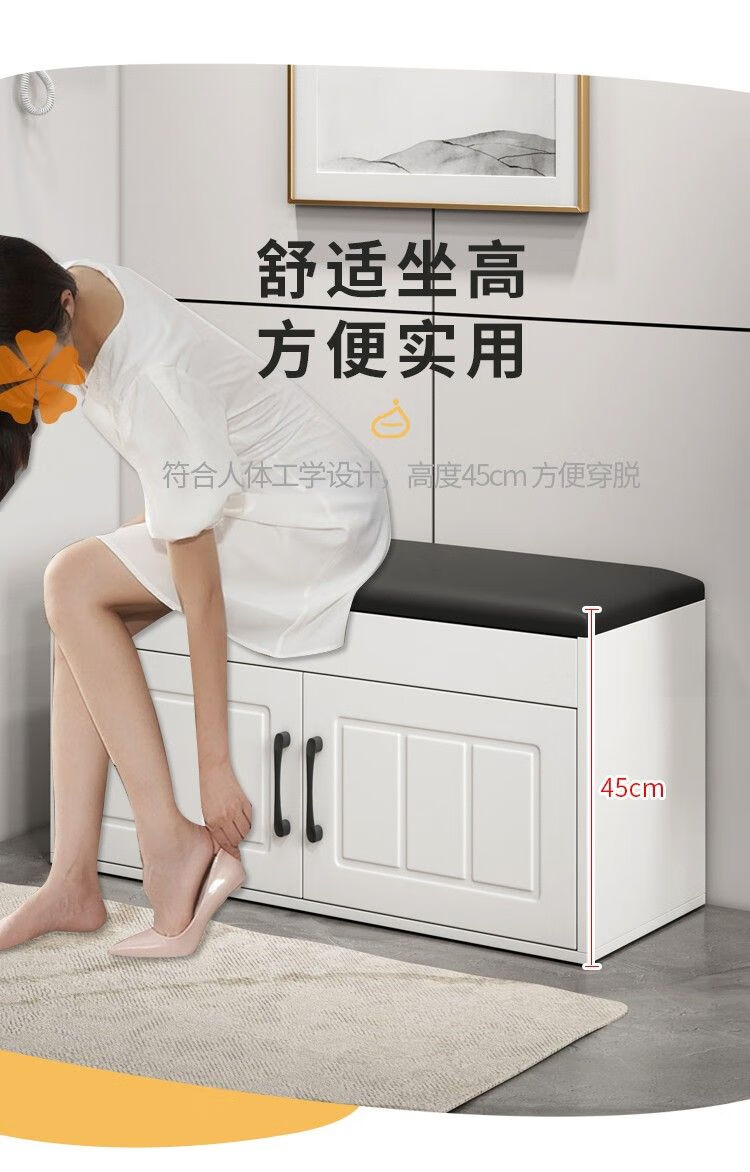 弘星隆换鞋凳家用门口可坐鞋柜坐凳一体入户现代鞋架式软包穿鞋凳进门凳 A款50长33宽45高(白色坐垫)