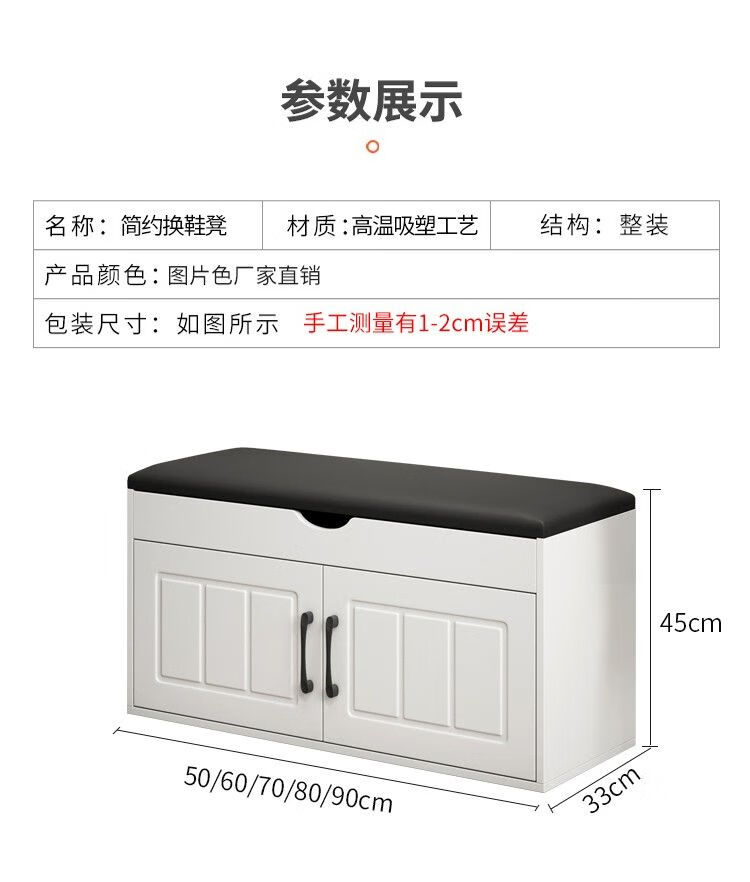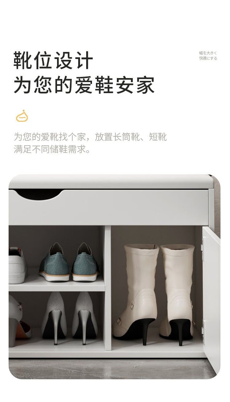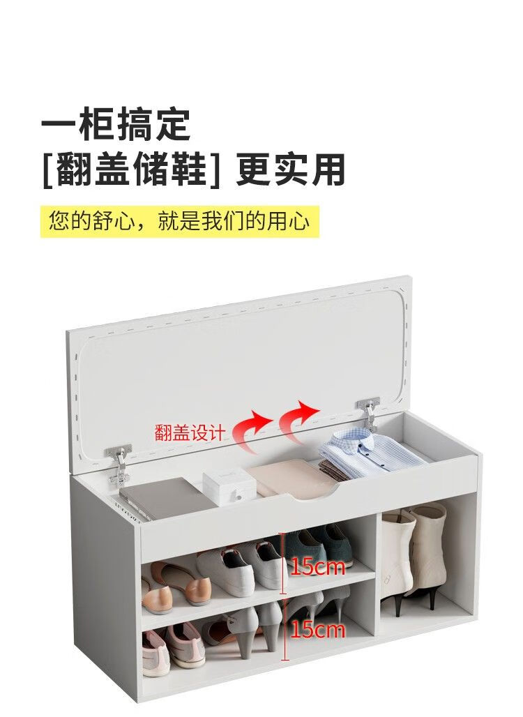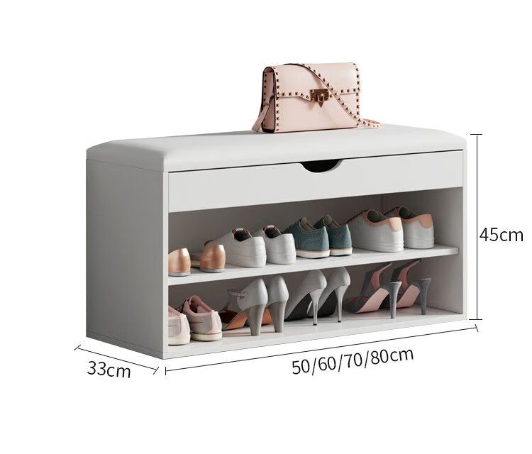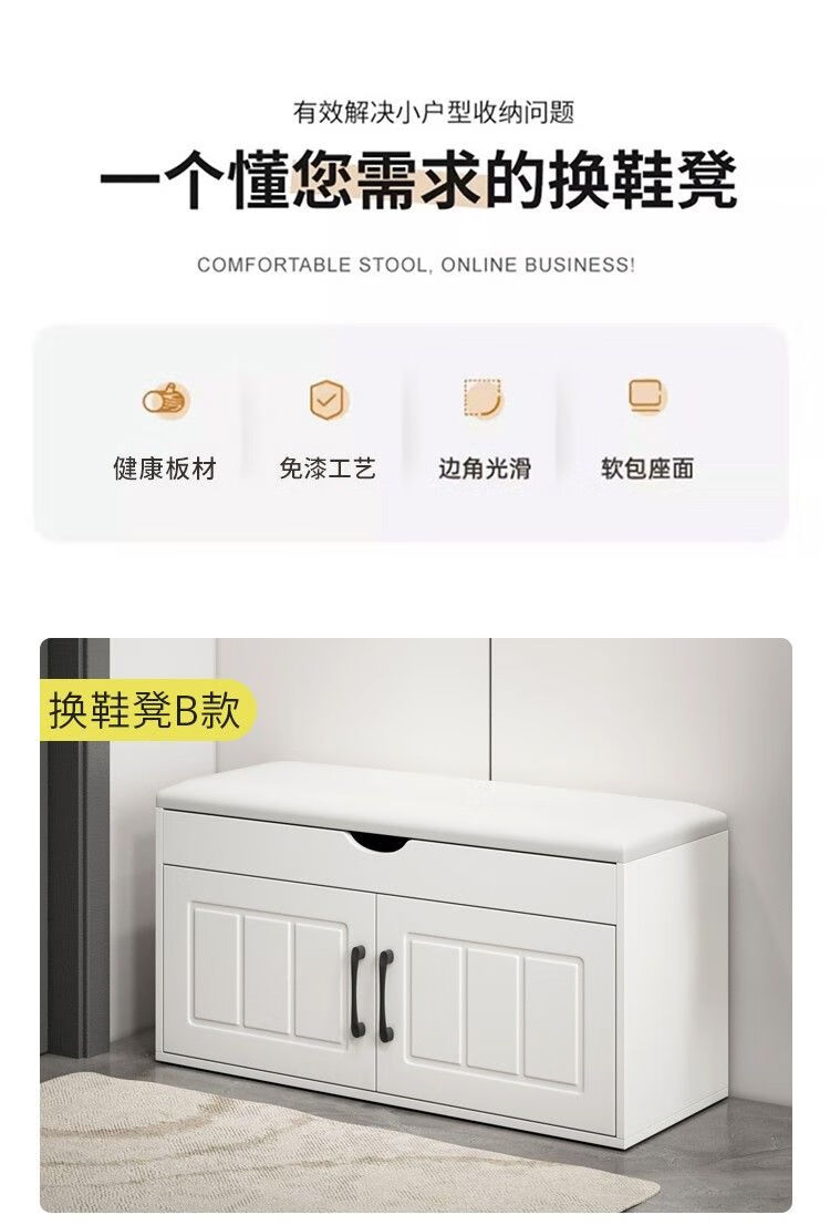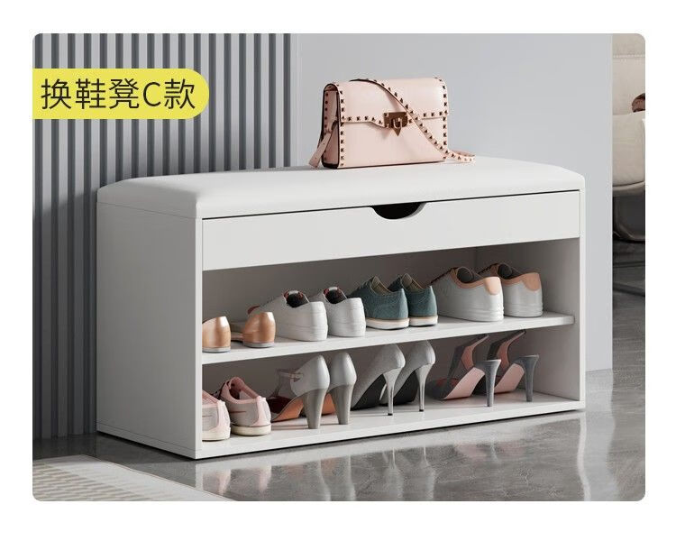 弘星隆换鞋凳家用门口可坐鞋柜坐凳一体入户现代鞋架式软包穿鞋凳进门凳 A款50长33宽45高(白色坐垫)