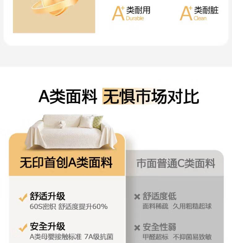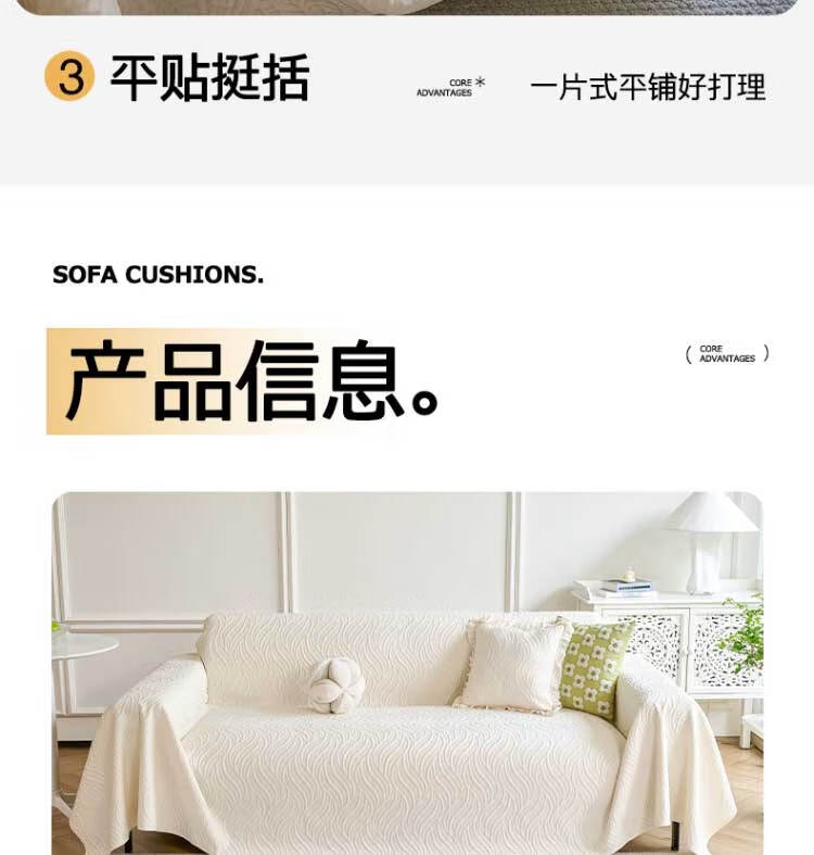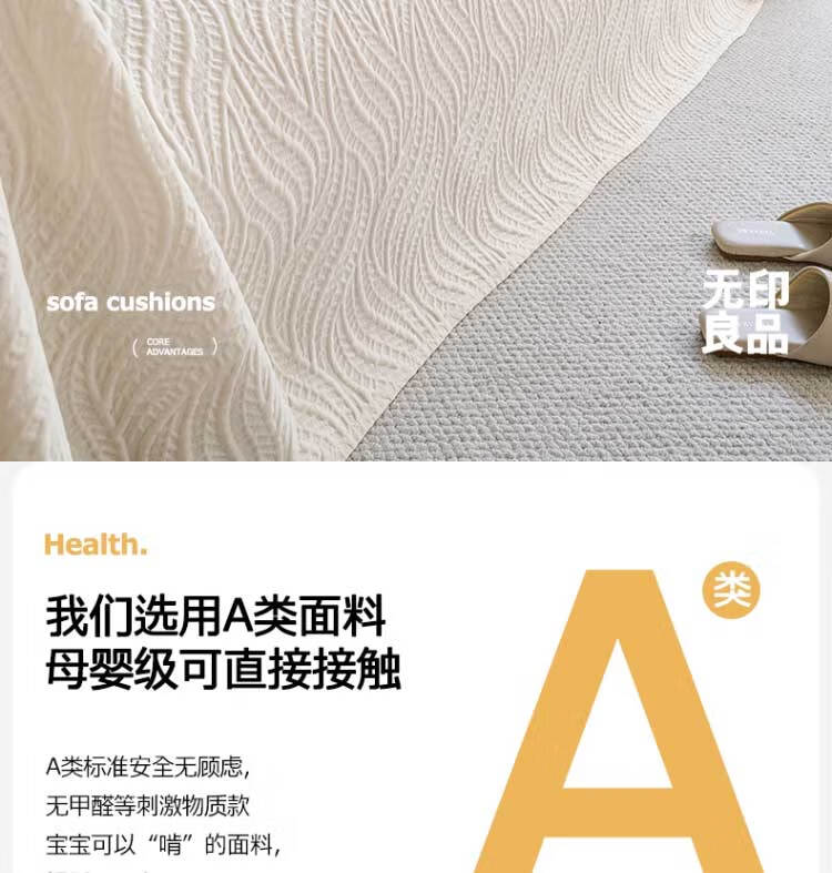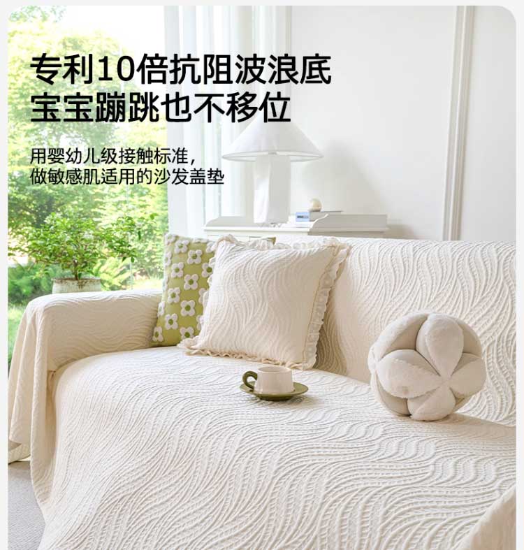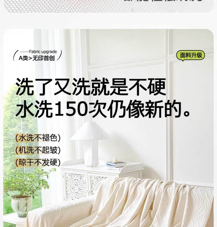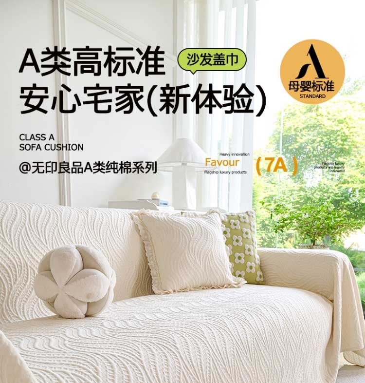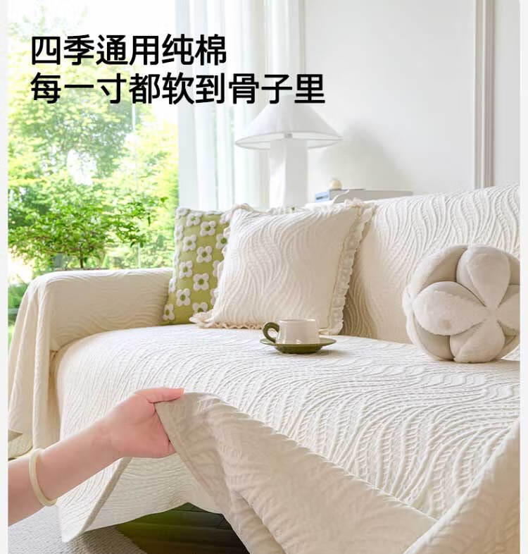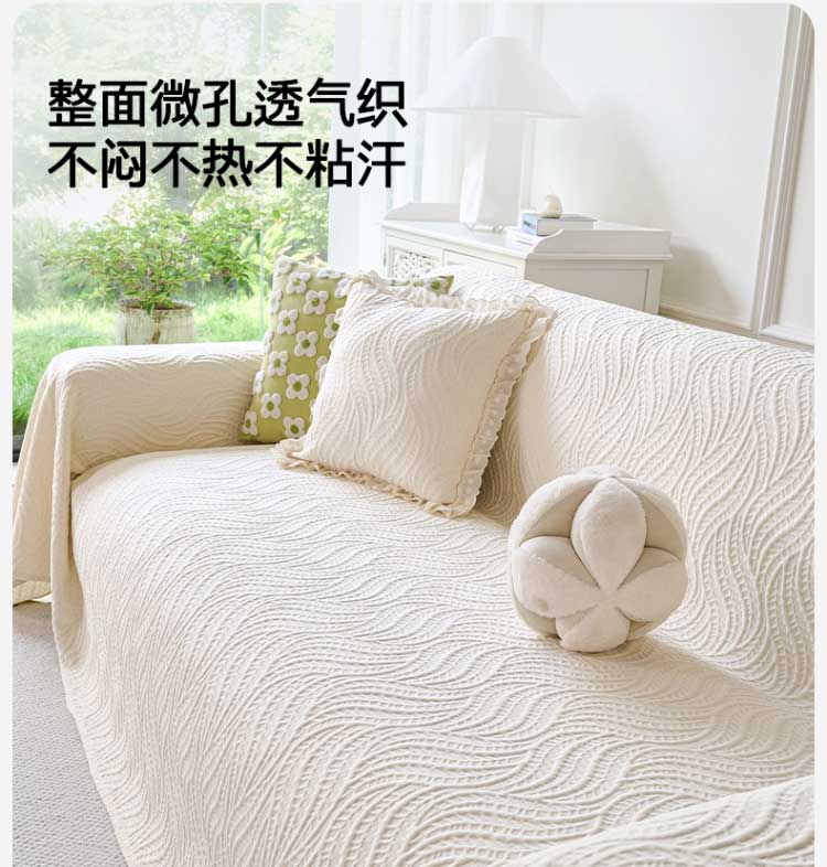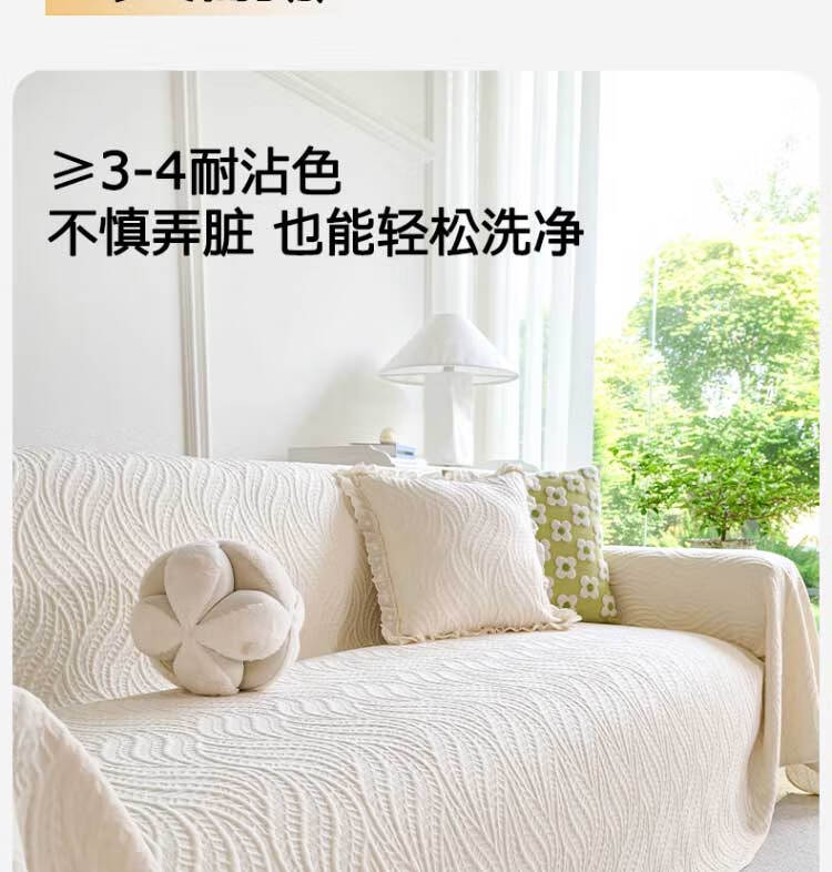 无印良品沙发盖布防猫抓沙发巾全盖防滑沙发套罩坐垫毯沙发布遮盖罩布 物语-奶油白【A类生态棉 0异味不致敏 可裸睡】 180*130cm 【适合小单人位】